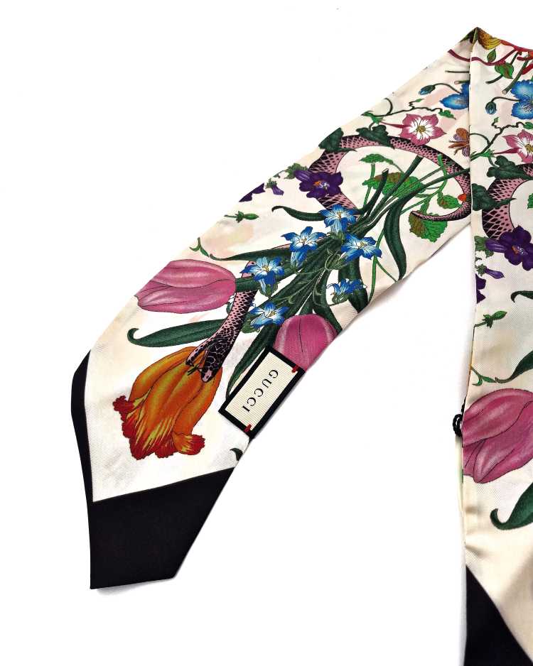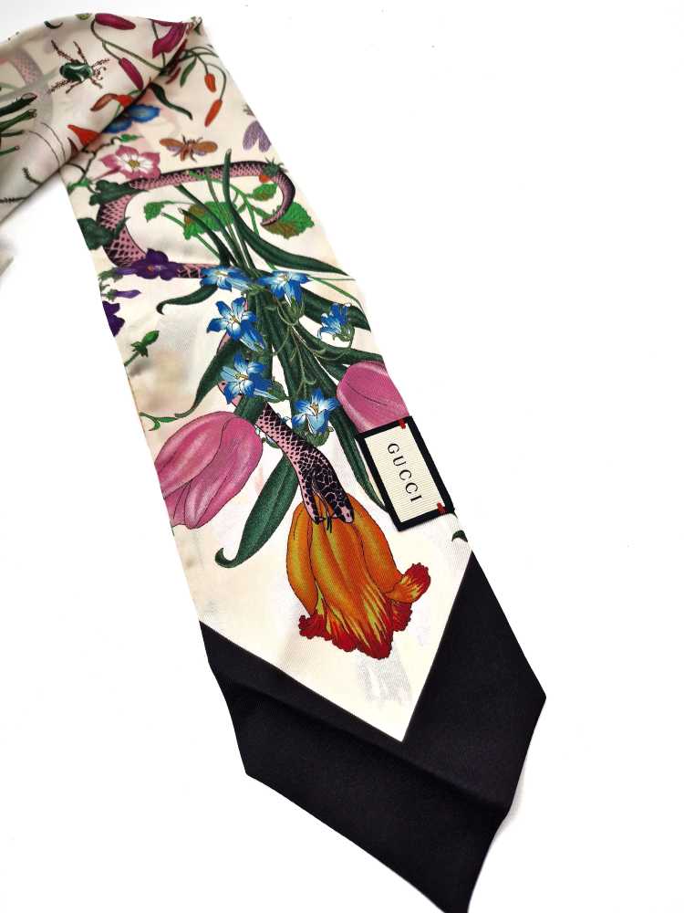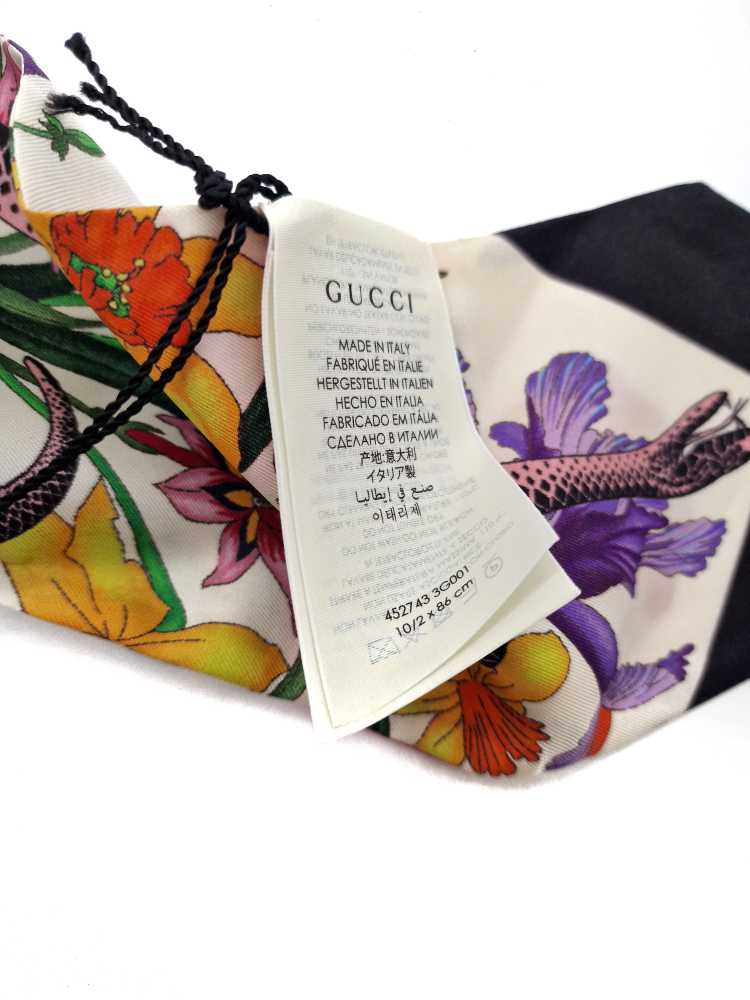 Bandeau Gucci In Seta Stampa Flora. 100% Seta . Misure L10,5 x A 86 cm. Articolo pari al nuovo completo di dust.