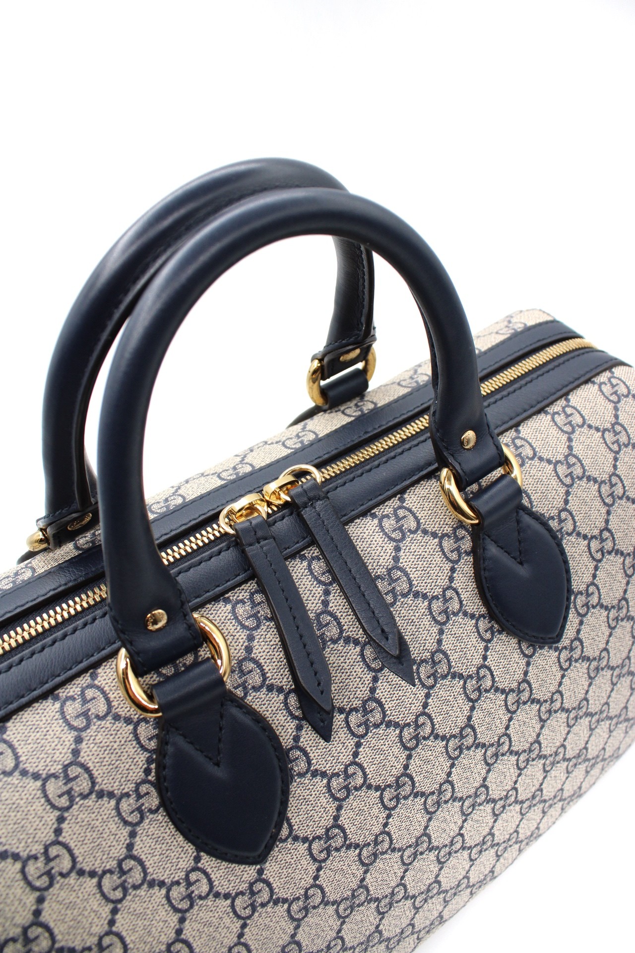 Bauletto Gucci in tela gg supreme ed inserti in pelle blu. Dotato di tracolla regolabile e amovibile per portarlo a mano oppure a spalla. Questa borsa dona praticità, si adatta ad outfit casual e giornalieri. Articolo in condizioni eccellenti corredato di dust bag e cartellini.