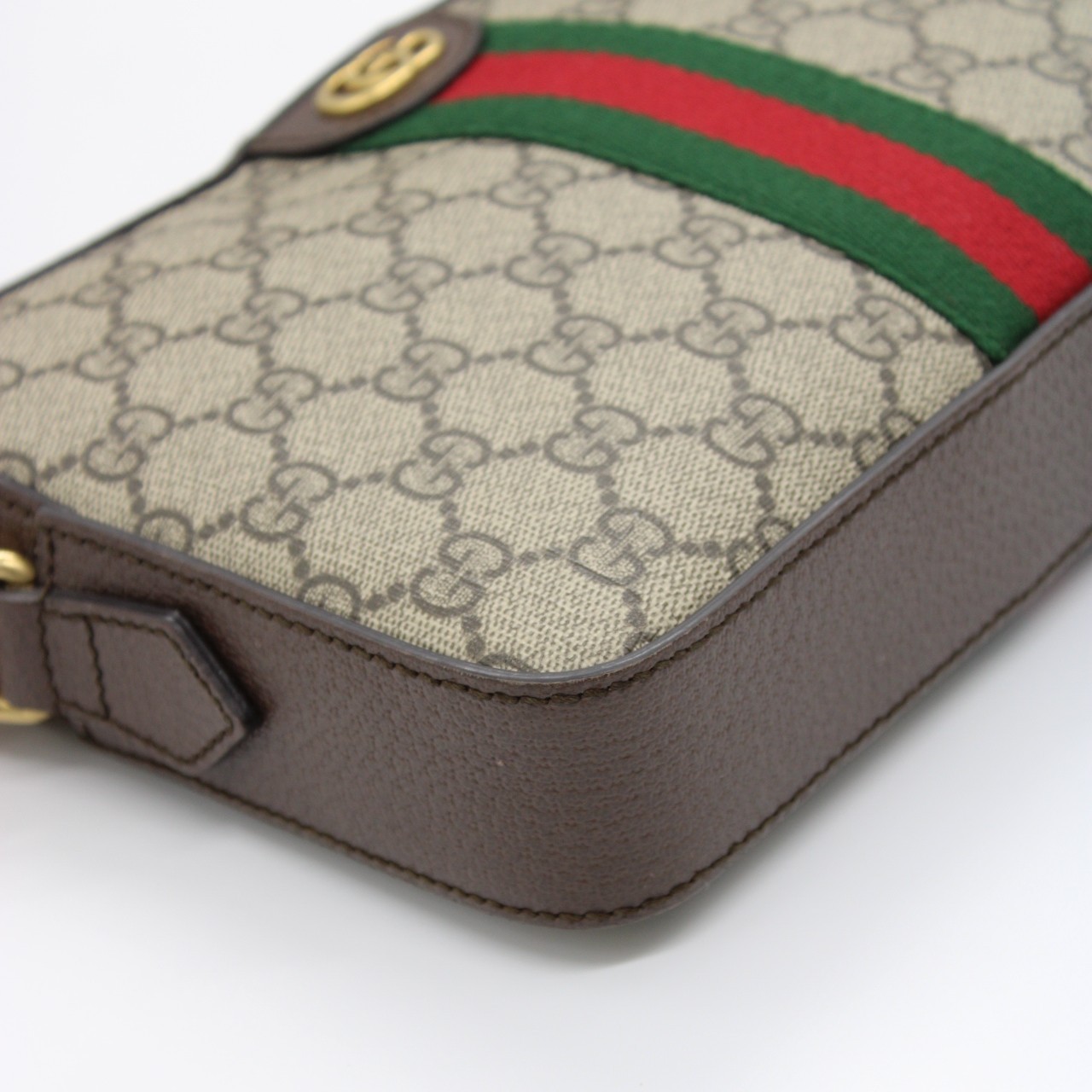 Borsa Gucci a spalla Ophidia GG in tessuto ed inserti in pelle con parti metalliche dorate. Può essere indossata a spalla e ad incrocio grazie alla sua tracolla a fascia blu e rossa regolabile e amovibile oppure a clutch. Si adatta ad outfit semplice ma anche ricercati, perfetta per lui e per lei. Articolo in condizioni eccellenti con dust e cartellini