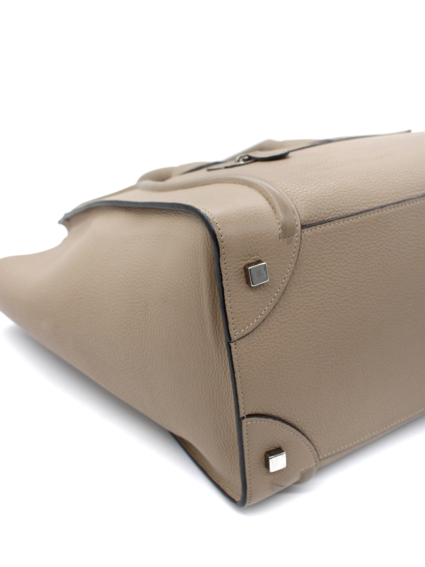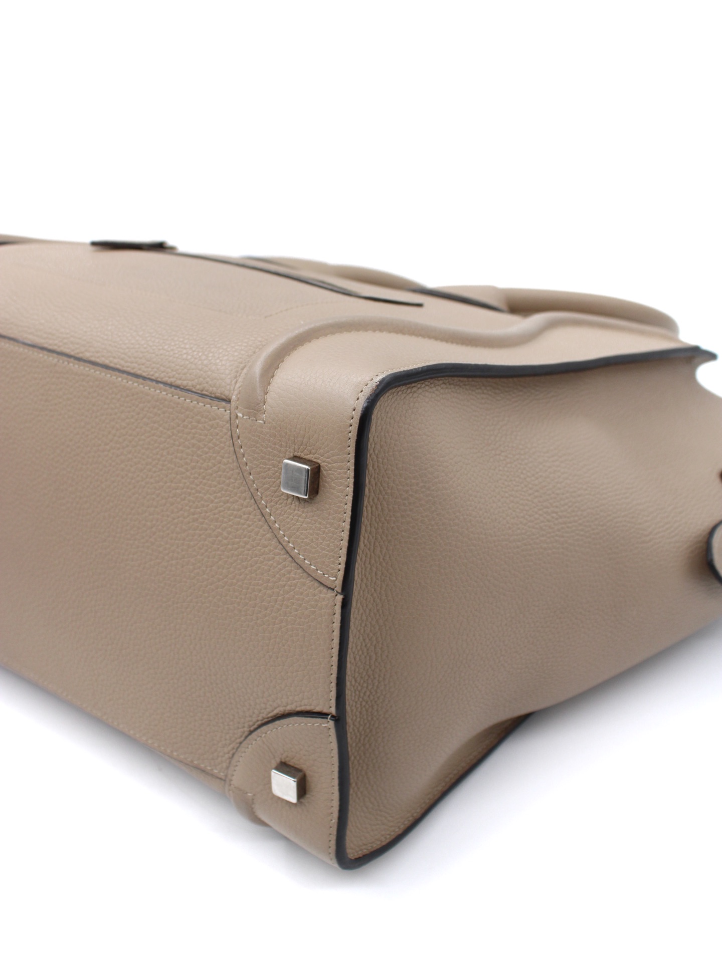 Borsa Celine Luggage in pelle beige e parti metalliche argentate. Da portare a mano questa borsa è perfetta abbinata ad outfit casual. Articolo in condizioni eccellenti corredato di dust bag e cartellini.