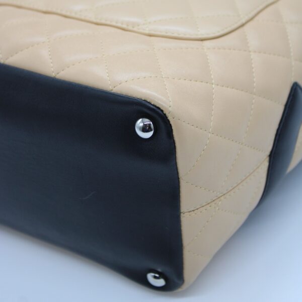 Borsa Chanel Cambon in pelle color beige e nera con parti metalliche argentate. Borsa che si abbina a look casuale giornalieri. Articolo in condizioni eccellenti corredato di dust bag e card.