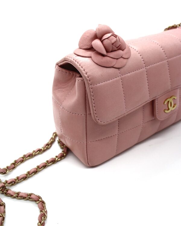 Borsa Chanel Pink Chocolate Bar Camelia da portare a spalla questa borsa è perfetta per occasioni speciali. Borsa in ottime condizioni corredata di card e scatola.