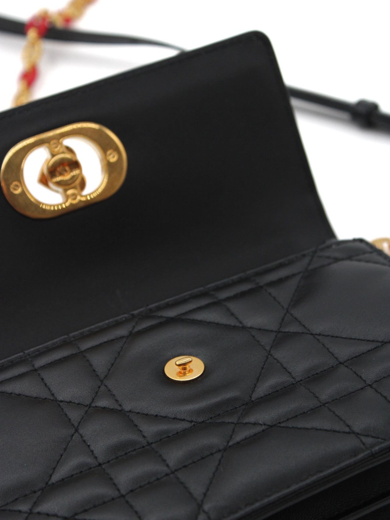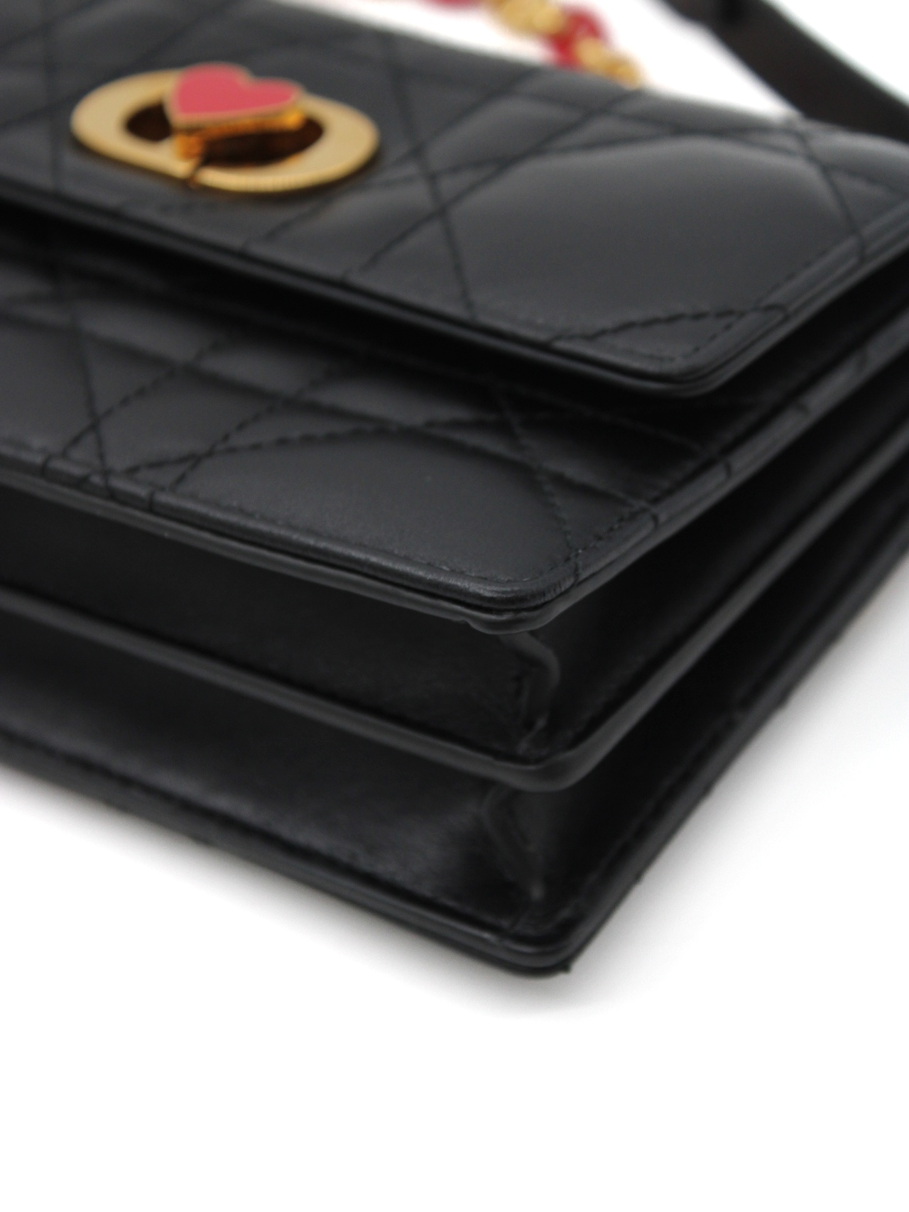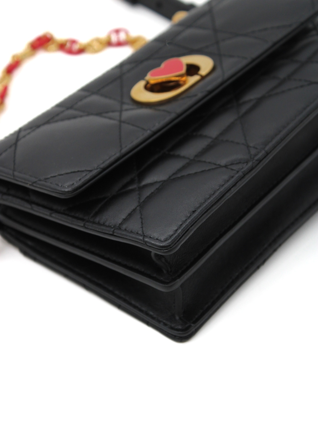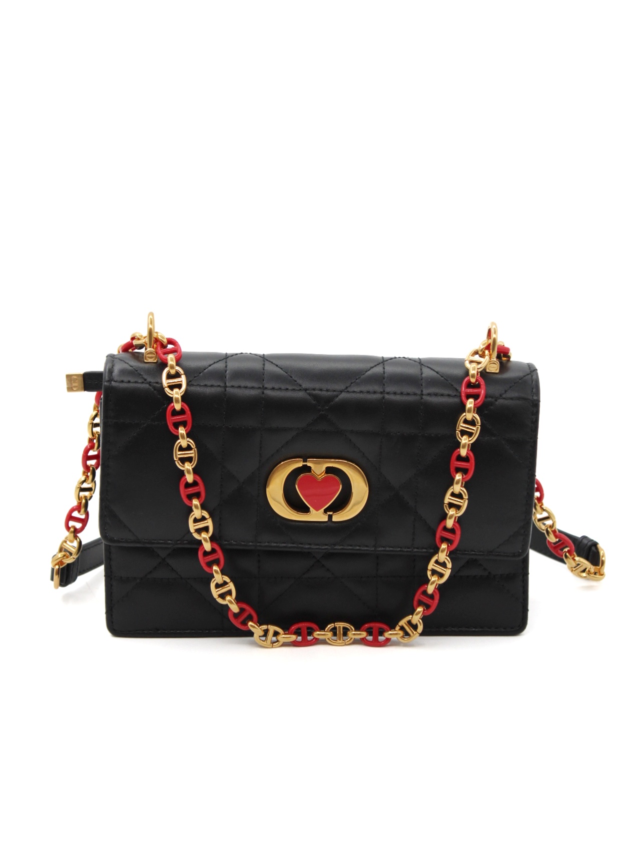 Borsa Dior Miss Caro Dioramour con parti metalliche dorate e rosse. Borsa perfetta per svariate occasioni. Articolo pari al nuovo con dust, cartellini e certificato di entrupy.