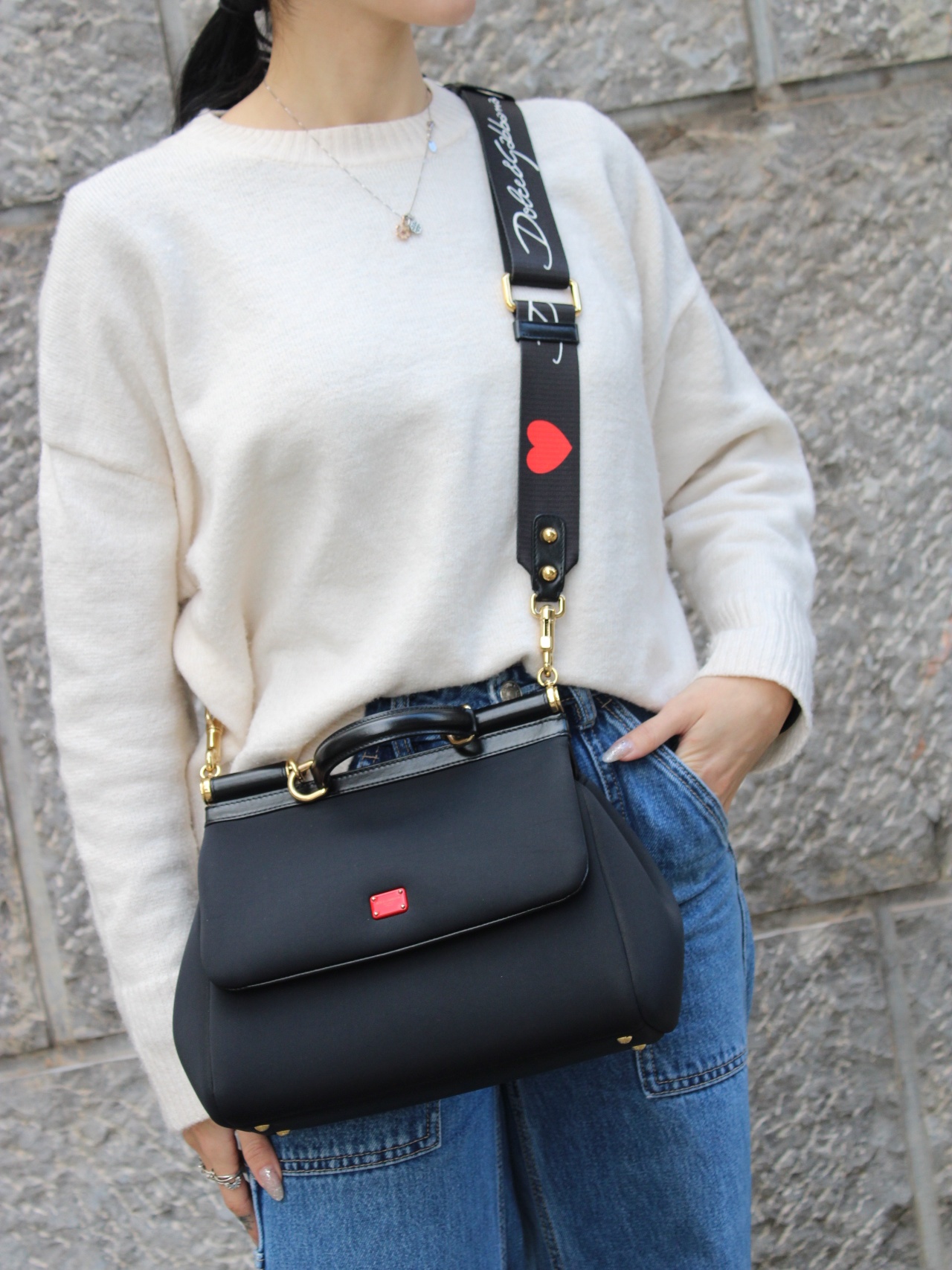 Borsa Dolce e Gabbana Sicily in Neoprene con parti metalliche dorate. Da portare a spalla questa borsa è perfetta con svariati tipi di outfit. Articolo in condizioni eccellenti completo di dust bag