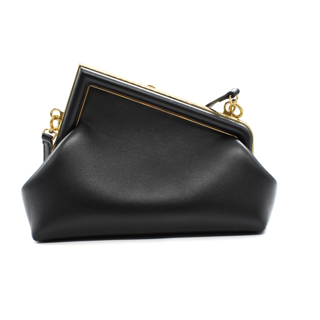 Borsa Fendi First small in pelle liscia nera e parti metalliche dorate. Da portare comodamente a clutch oppure a spalla grazie alla sua tracolla amovibile. Borsa capace di rendere speciale anche il più semplice degli outfit. Articolo in condizioni eccellenti corredato di dust bag e cartellini.