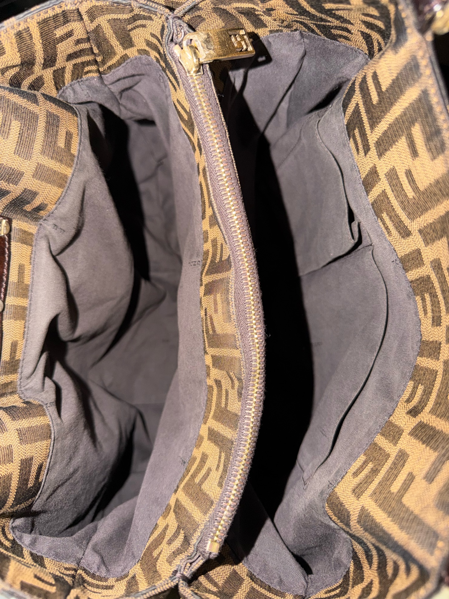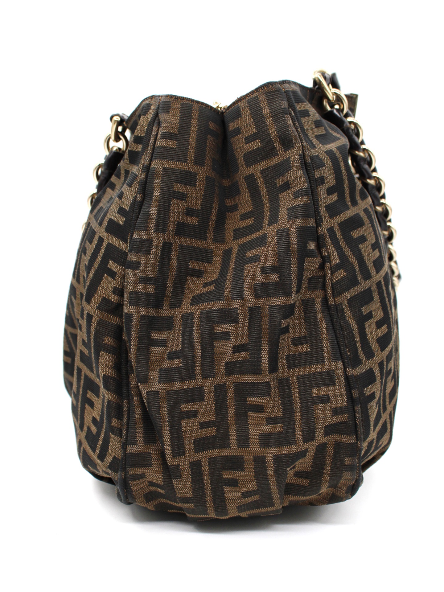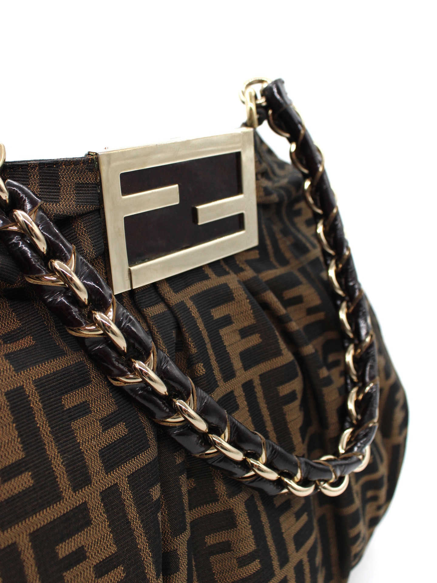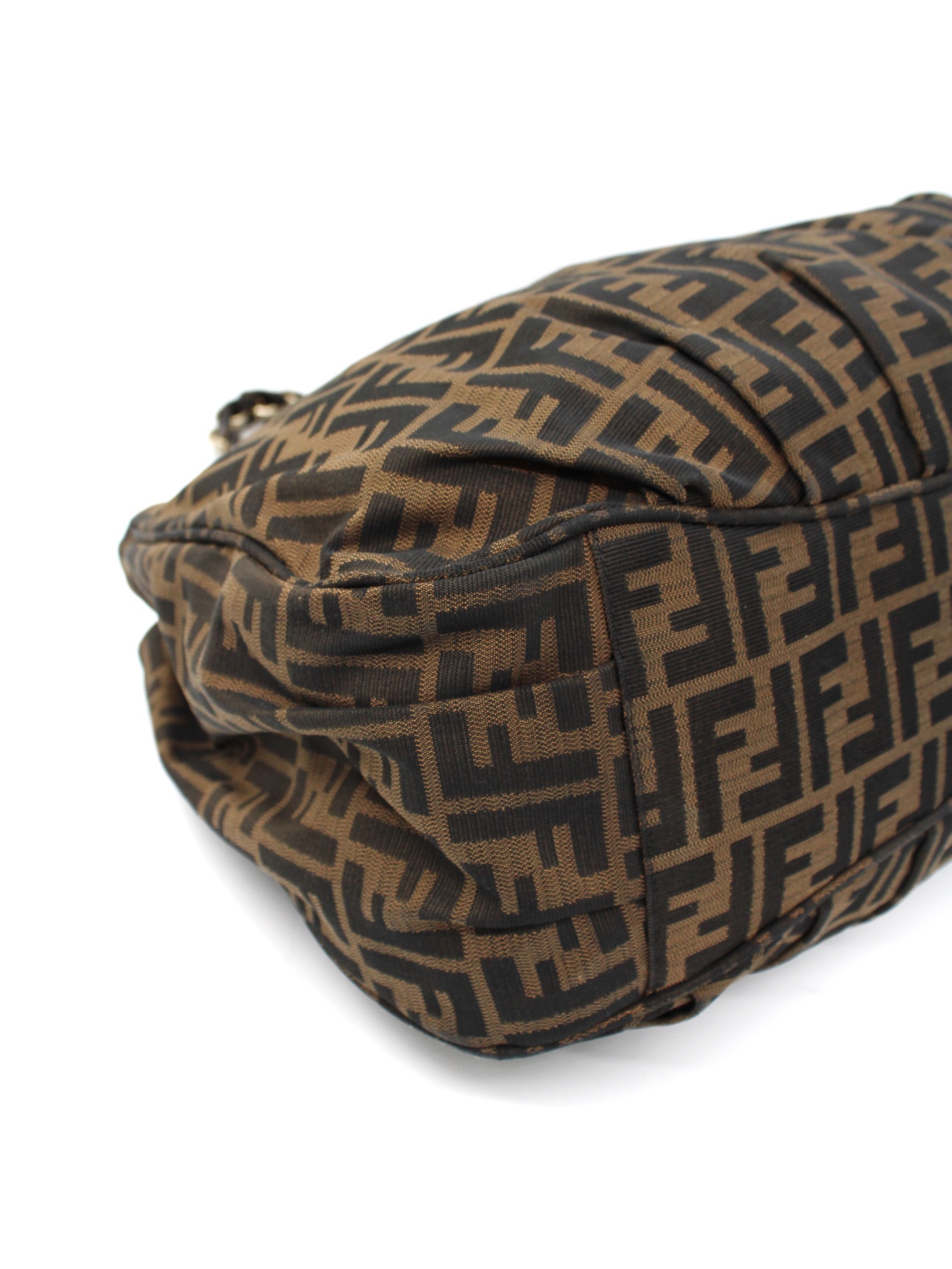 Borsa Fendi Mia in tela Zucca con parti metalliche dorate. Da portare a spalla questa borsa è perfetta abbinata ad outfit casual. Articolo in ottime condizioni corredato di dust bag.