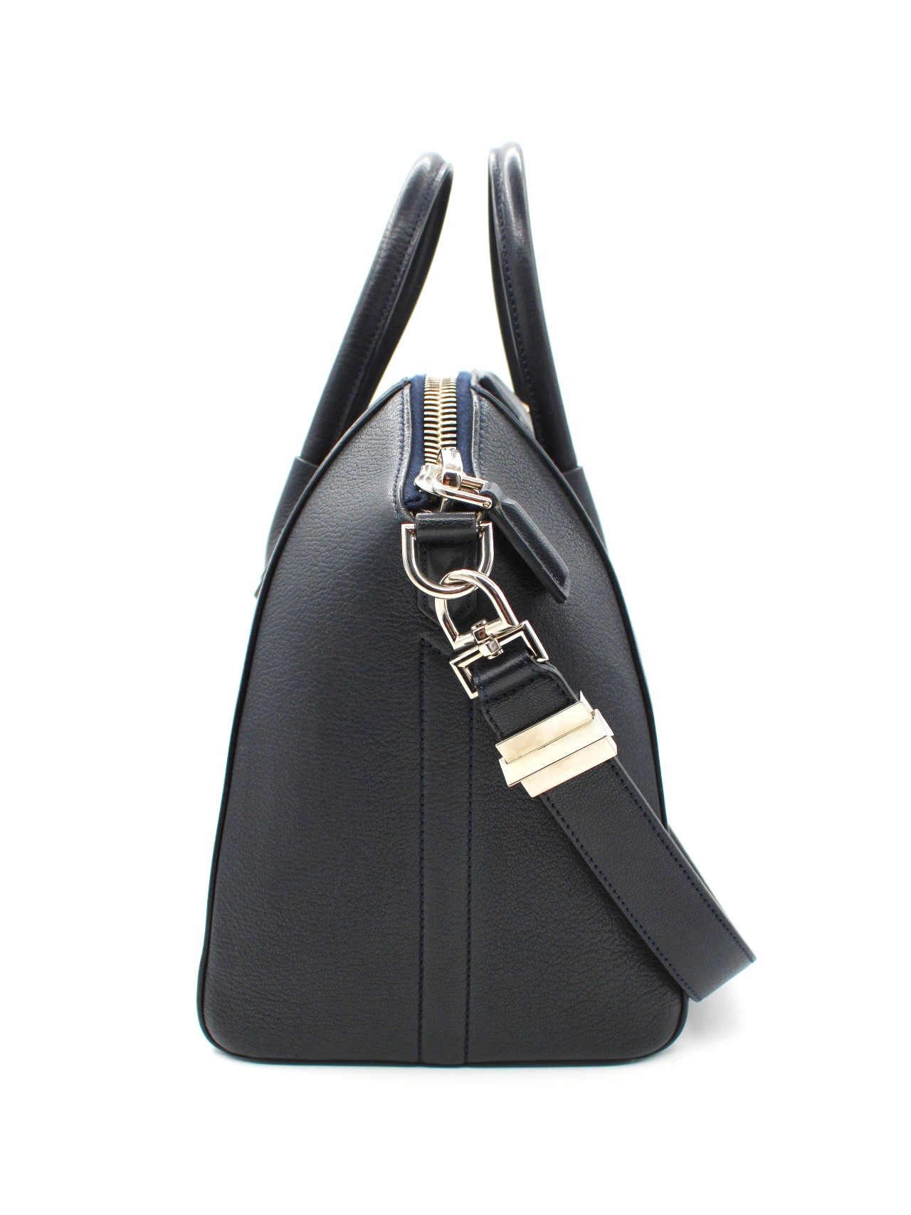 Borsa Givenchy Antigona in pelle blu notte e parti metalliche argentate. Da portare a mano oppure a spalla questa borsa è perfetta per tutti i giorni. Articolo in condizioni ottime con dust bag.
