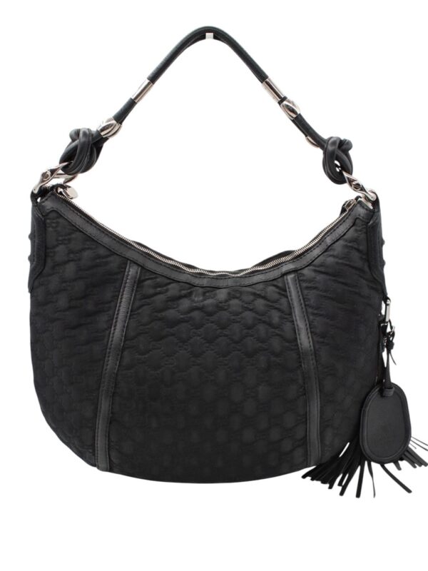 Borsa Gucci Bamboo in Neoprene Nero con dettagli metallici argentati. Borsa da portare a spalla, perfetta con outfit casual e giornalieri. Articolo in ottime condizioni corredato di dust bag Très Chic e cartellini.