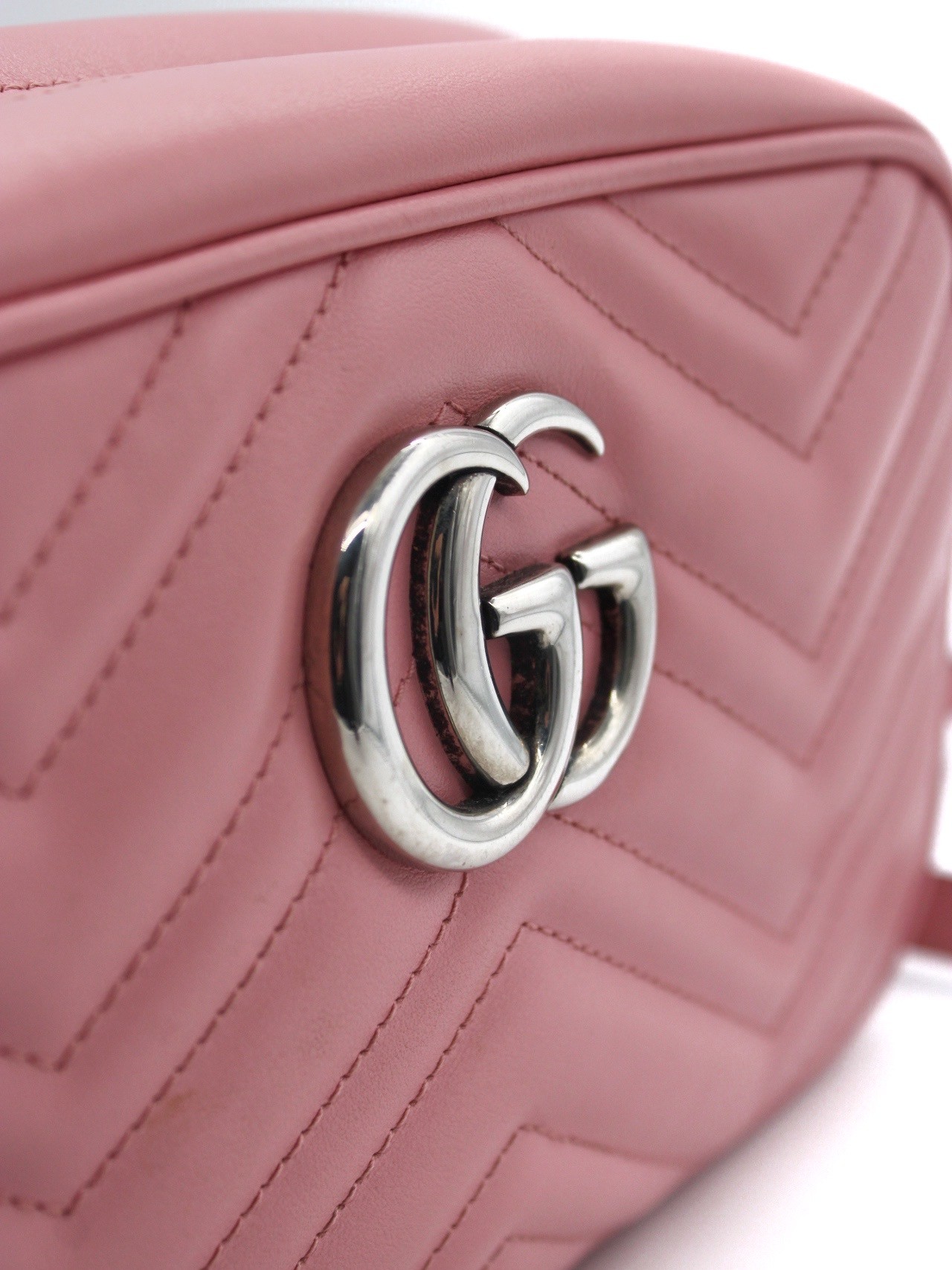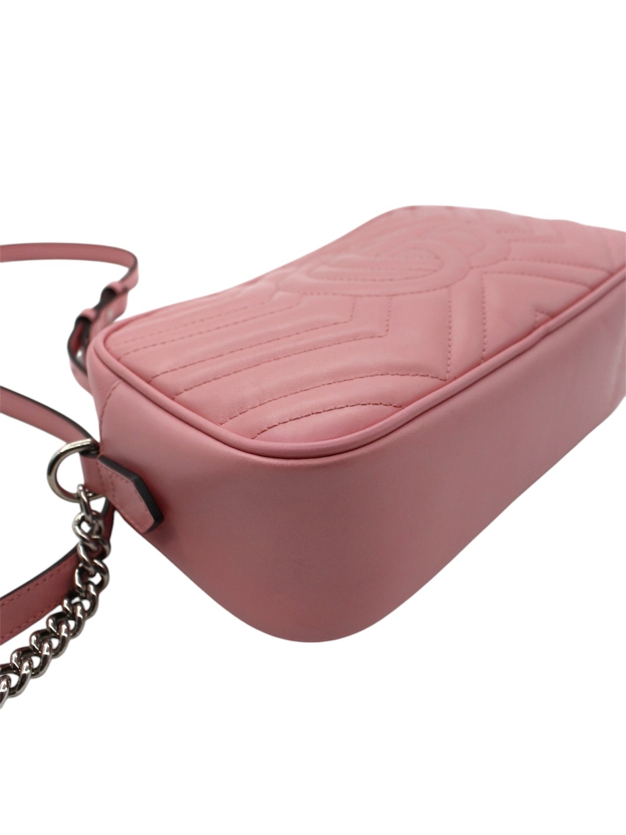 Borsa Gucci GG Marmont 24 Rosa con parti metalliche argentate. Dotata di tracolla regolabile questa borsa si adatta ad outfit casual e giornalieri. Articolo in condizioni eccellenti corredato di dust bag, cartellini e certificato di autenticità.