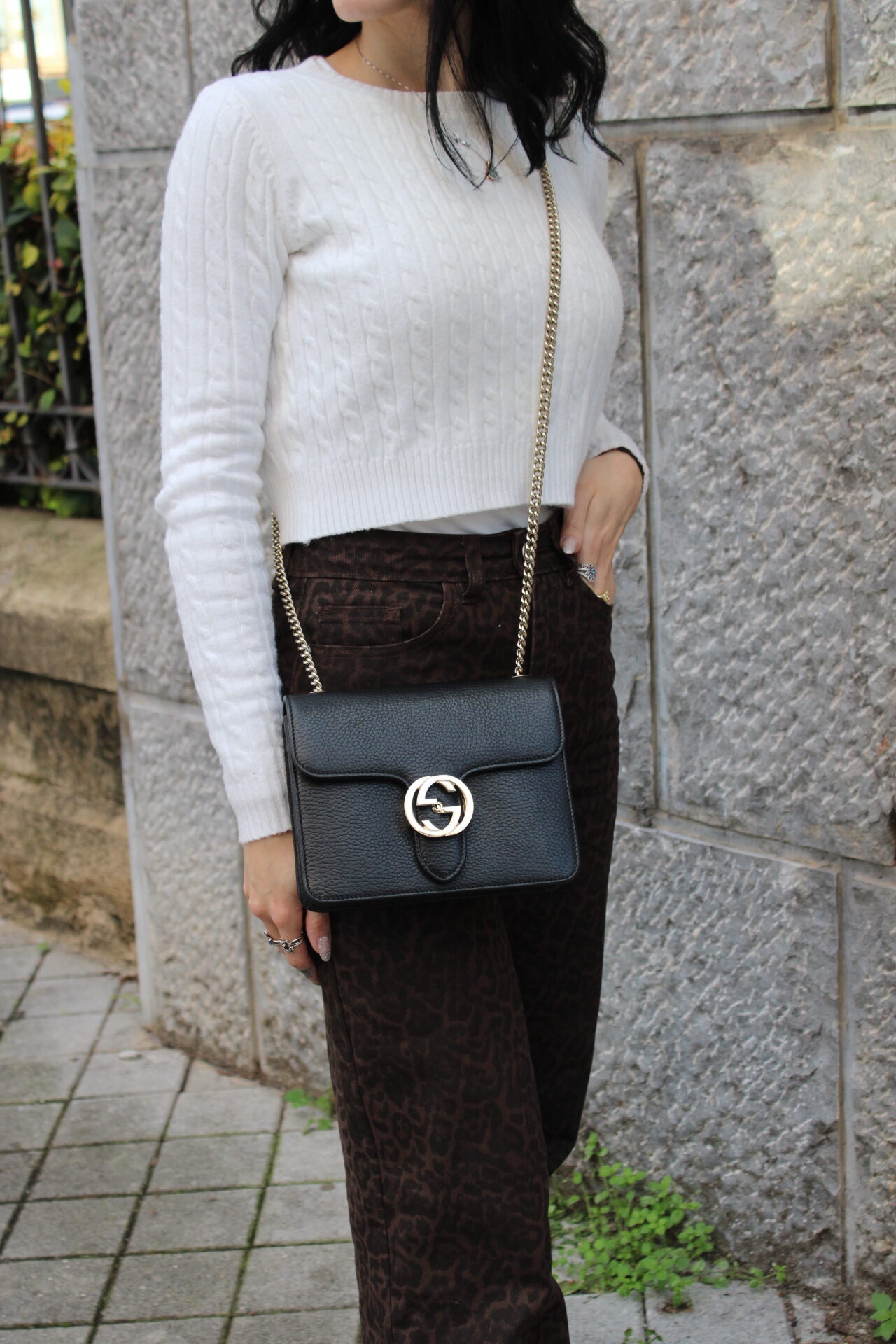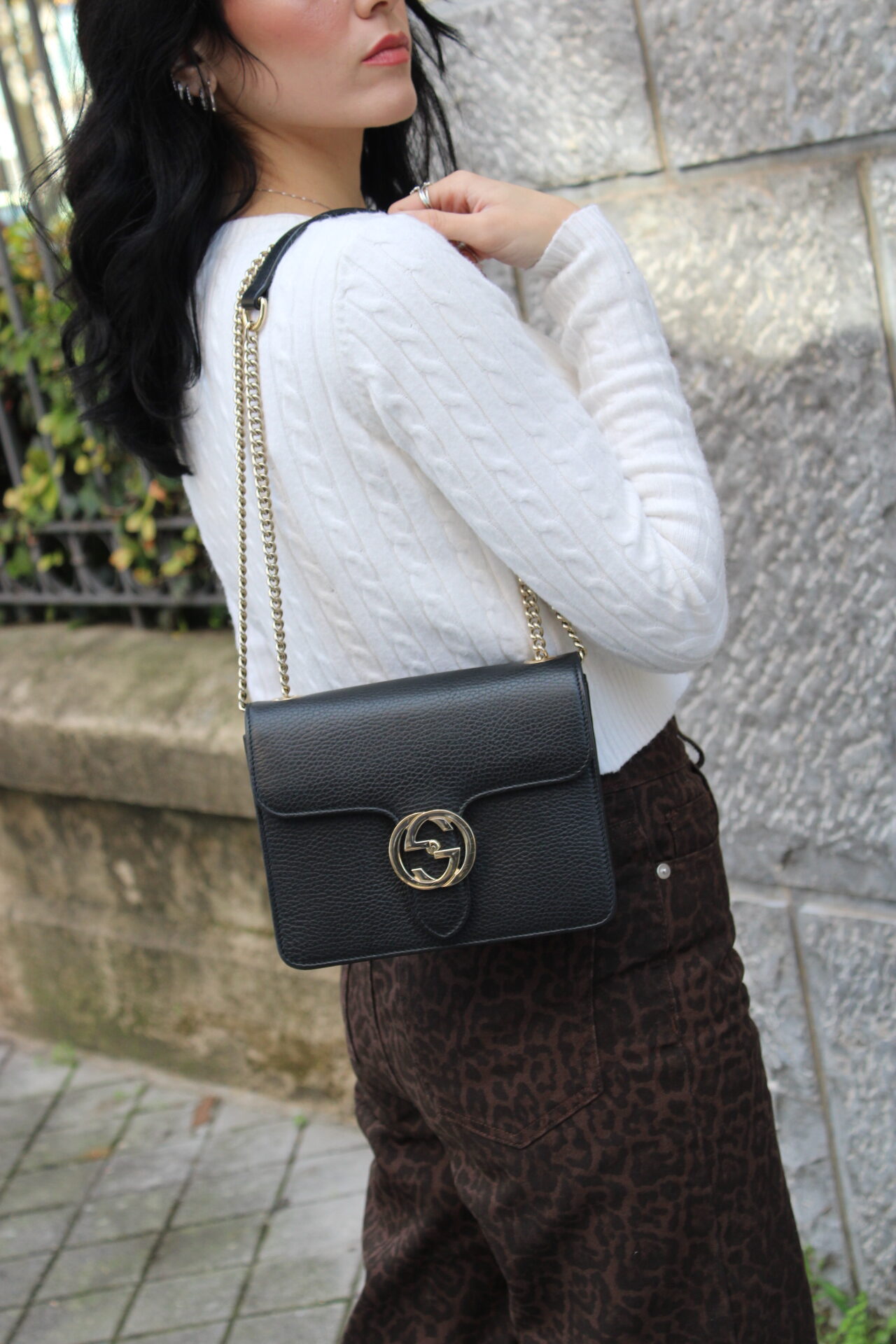 Borsa Gucci Interlocking con parti metalliche platino. Da portare a spalla oppure ad incrocio questa borsa è perfetta per svariate occasioni. Articolo in condizioni ottime con dust bag.