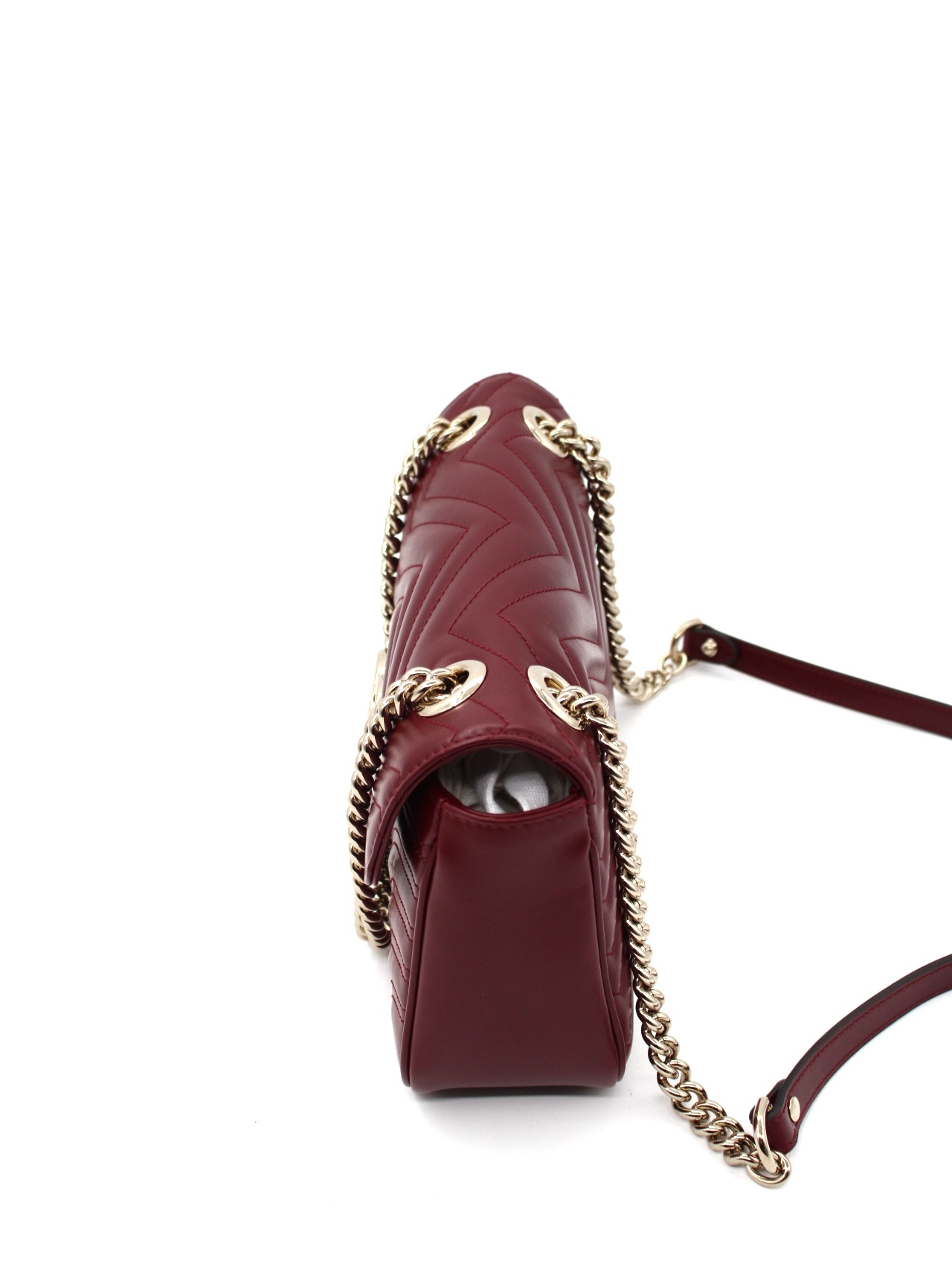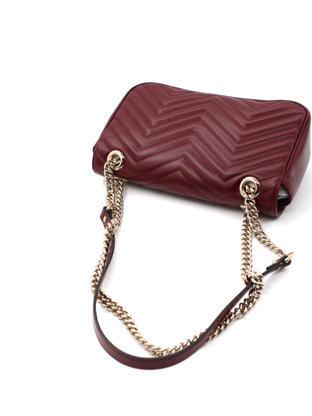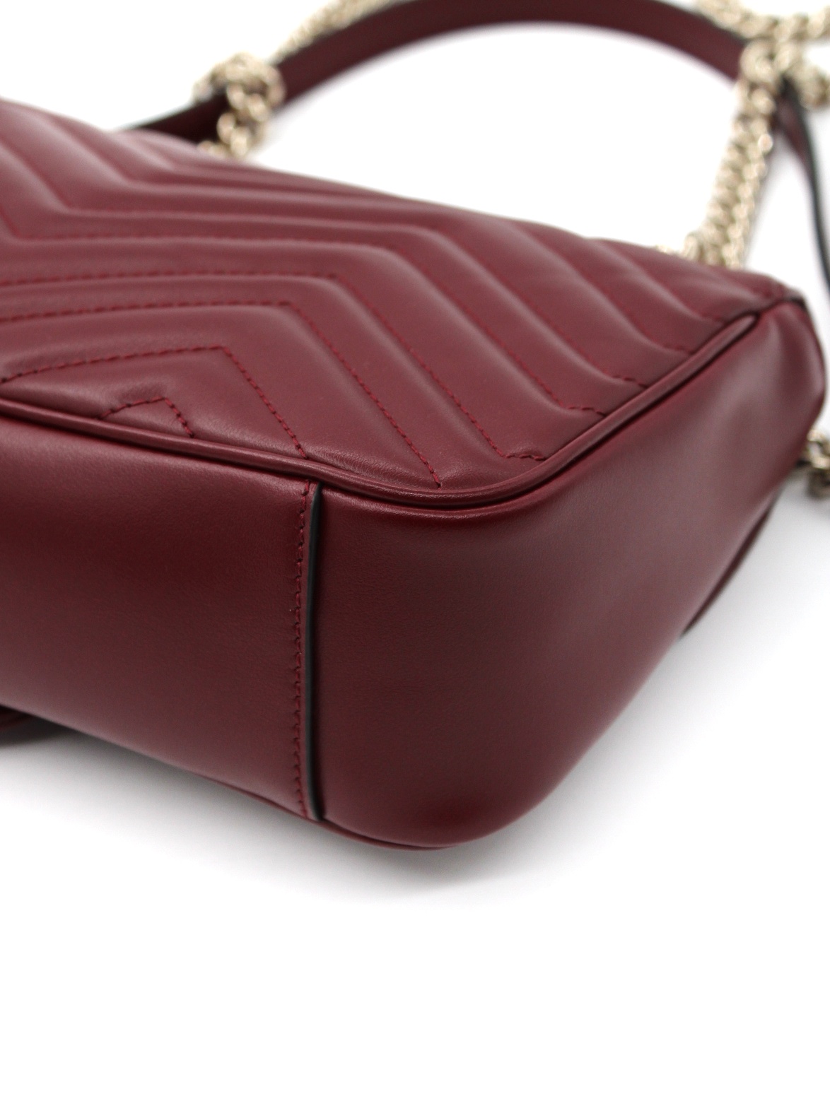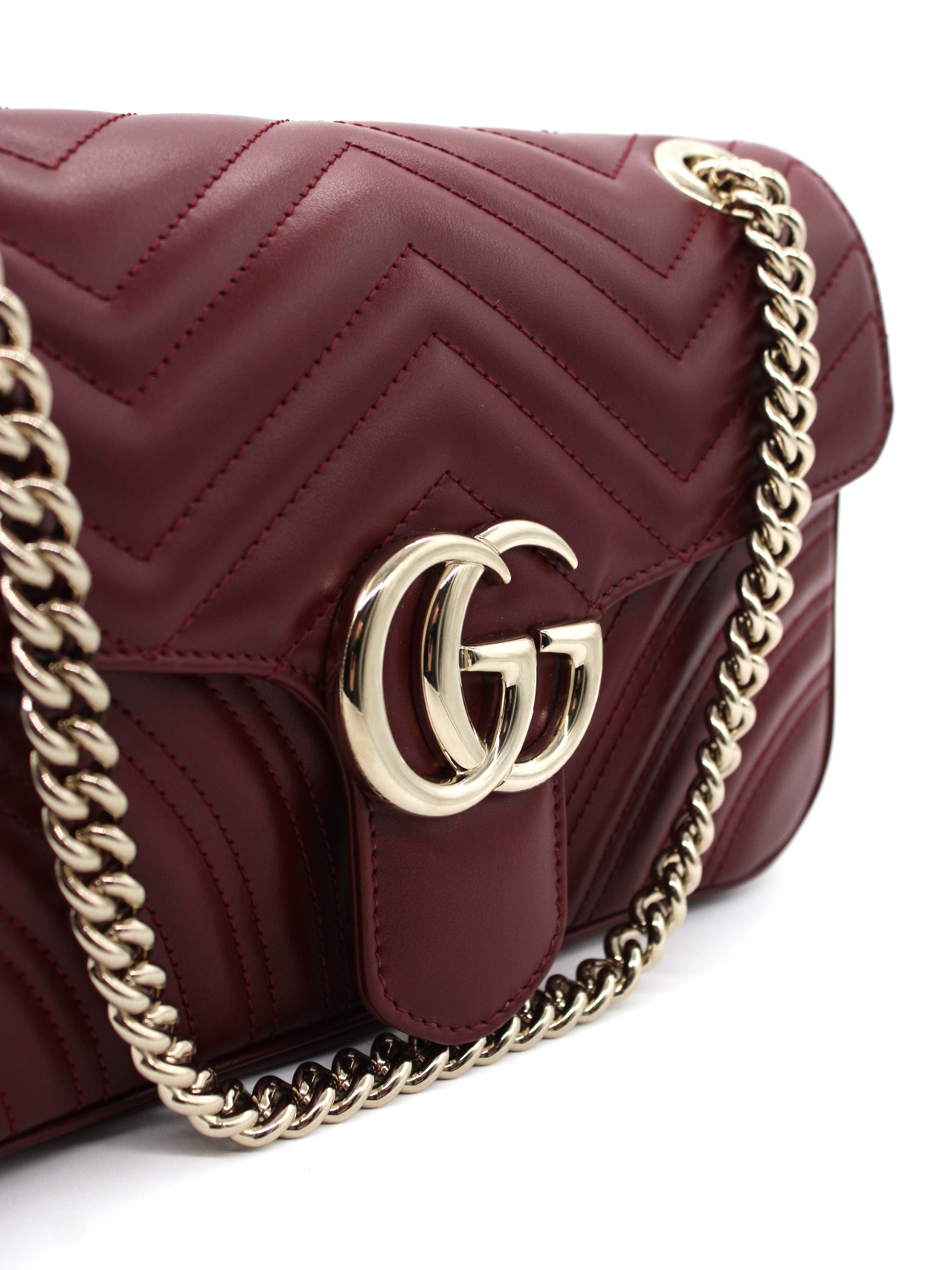 Borsa Gucci Marmont misura media in pelle bordeaux con parti metalliche platino. Da portare a spalla questa borsa è perfetta per svariate occasioni. Articolo pari al nuovo con scatola e certificato di Entrupy.