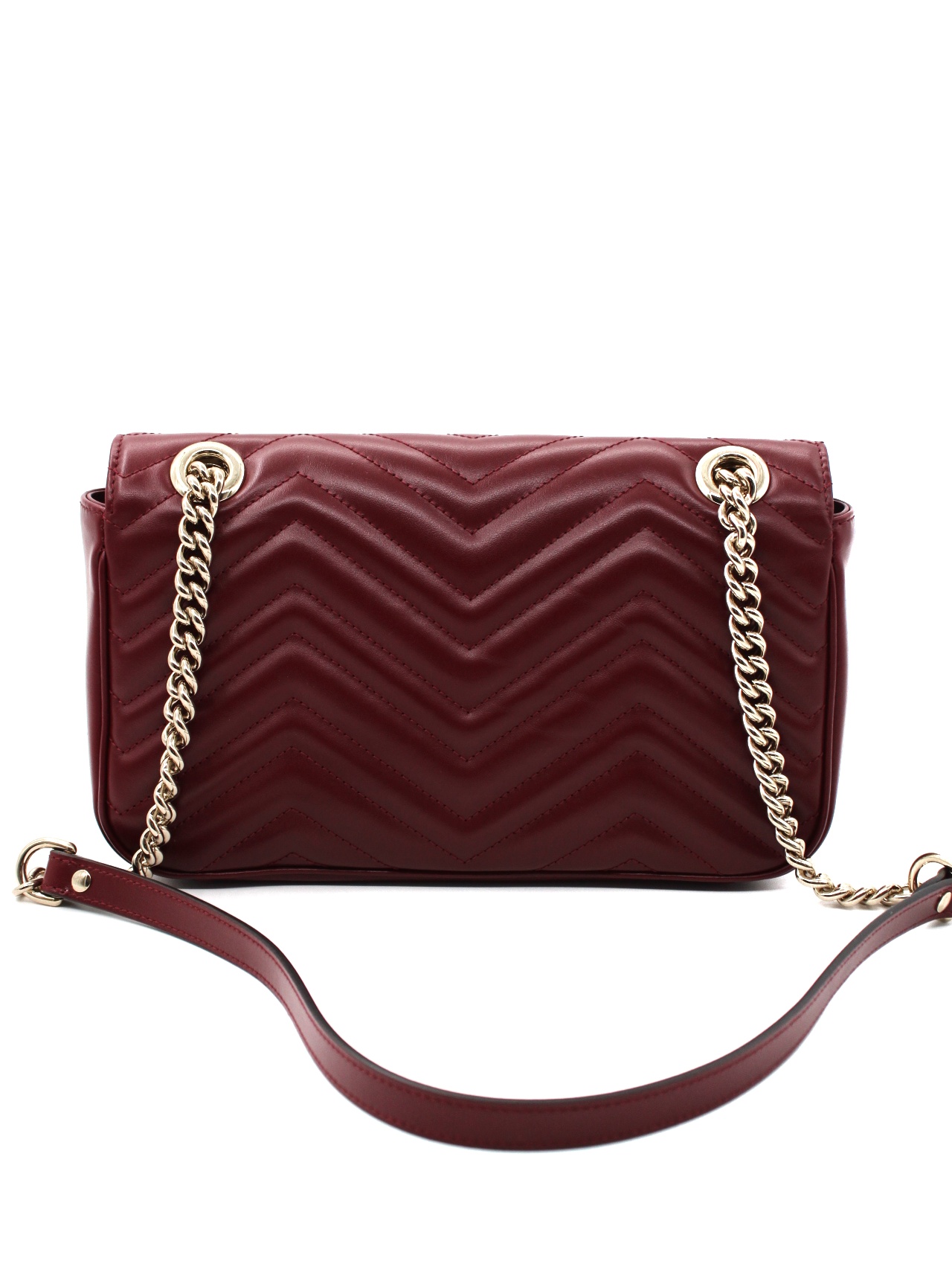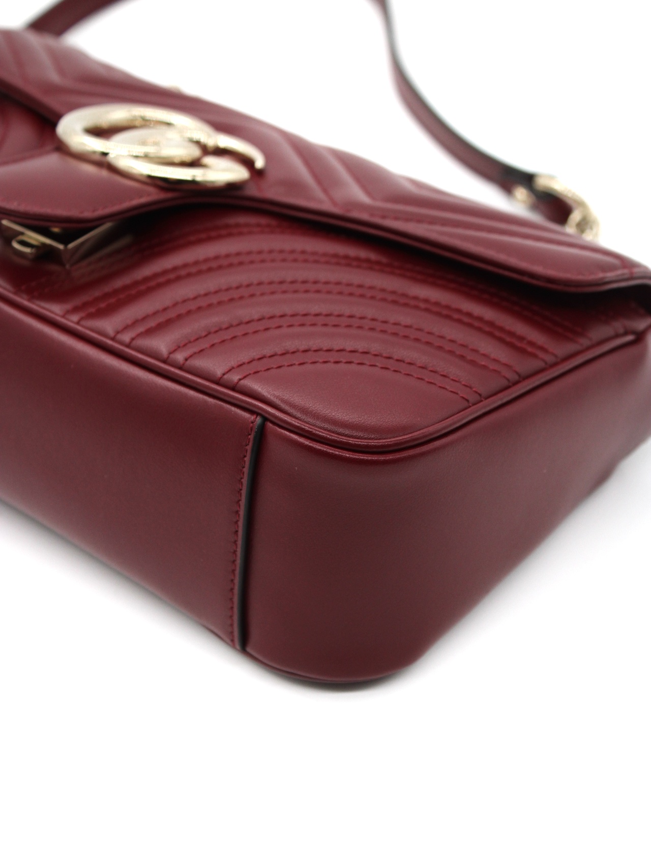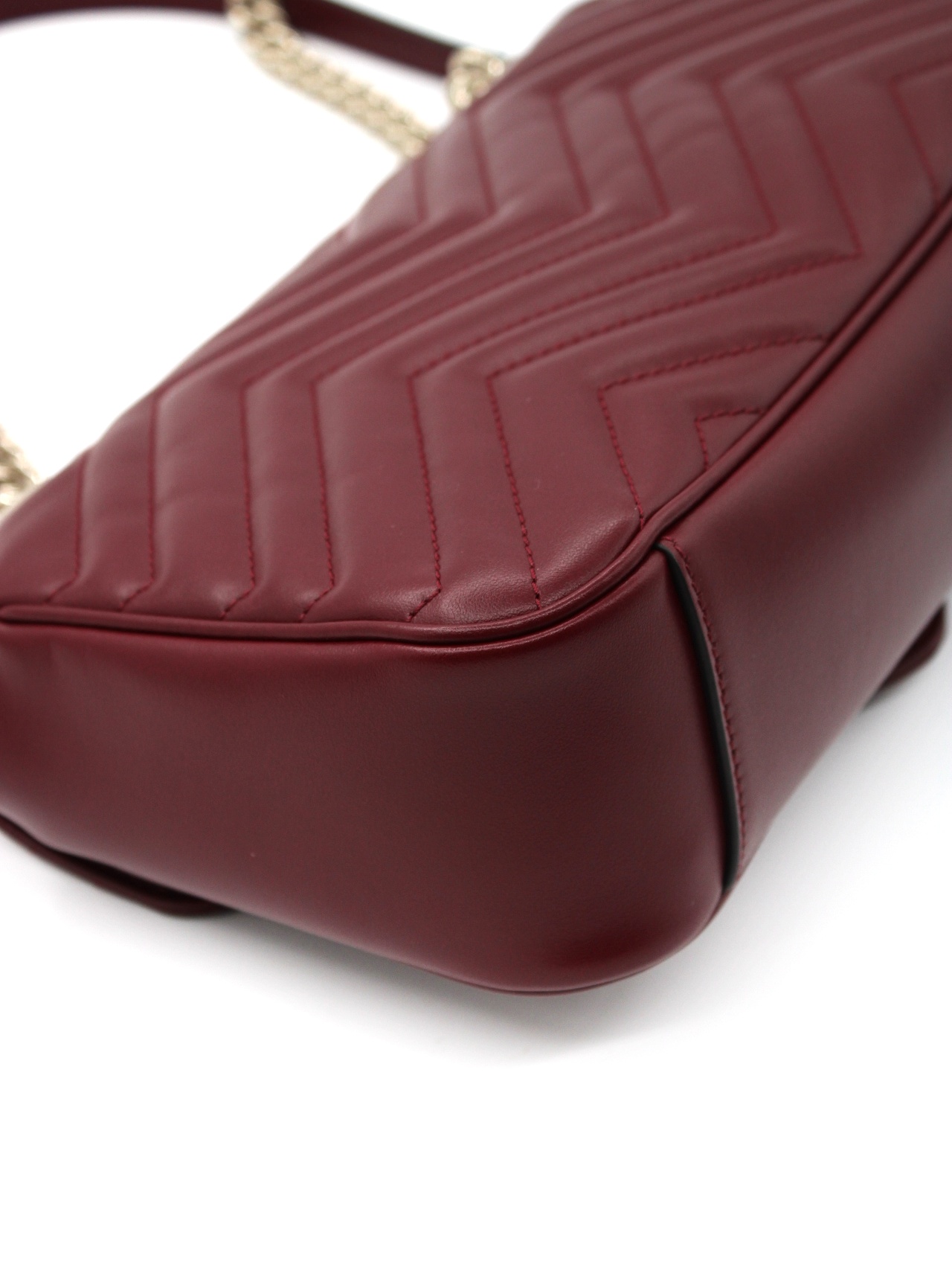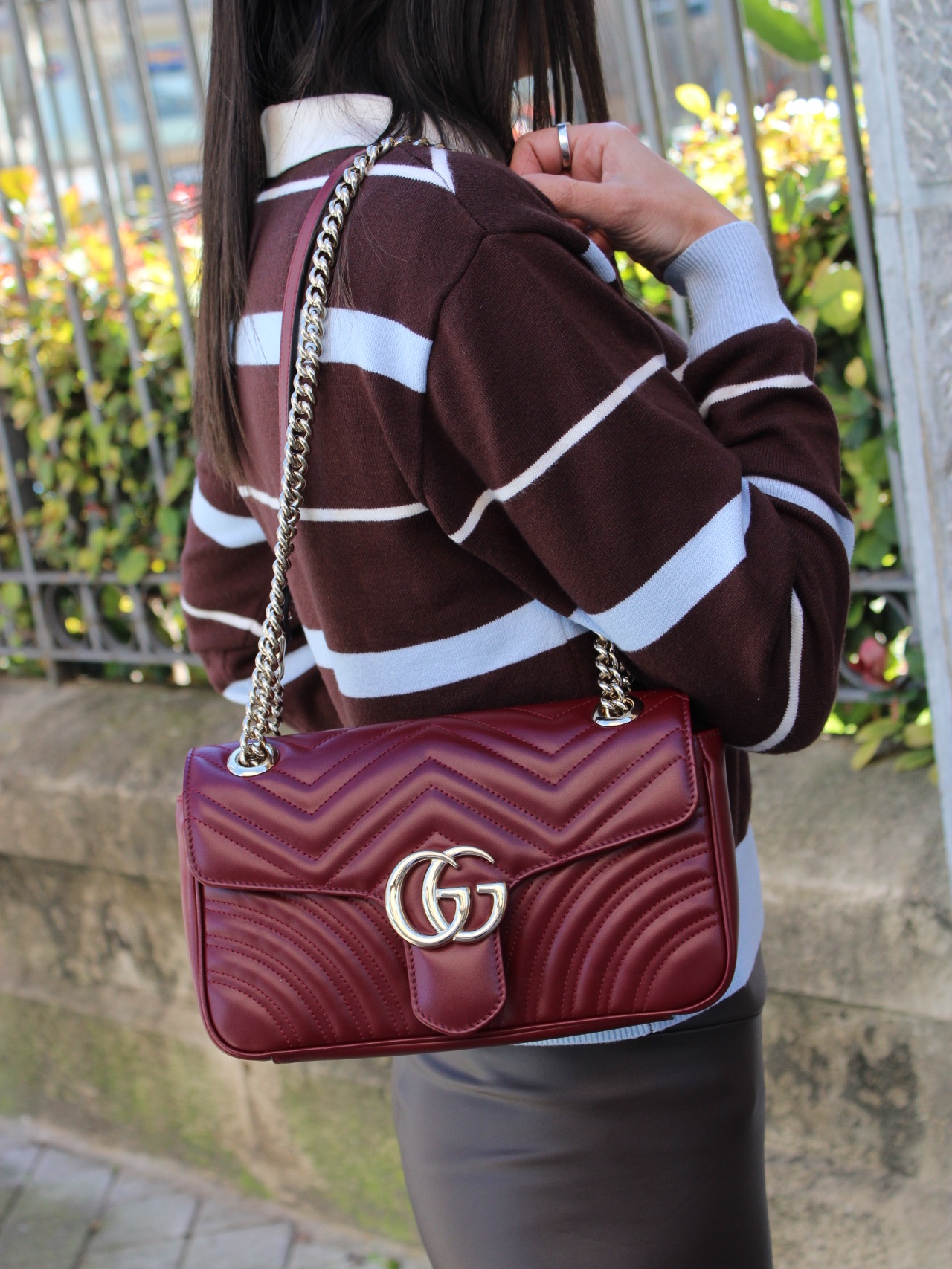 Borsa Gucci Marmont misura media in pelle bordeaux con parti metalliche platino. Da portare a spalla questa borsa è perfetta per svariate occasioni. Articolo pari al nuovo con scatola e certificato di Entrupy.