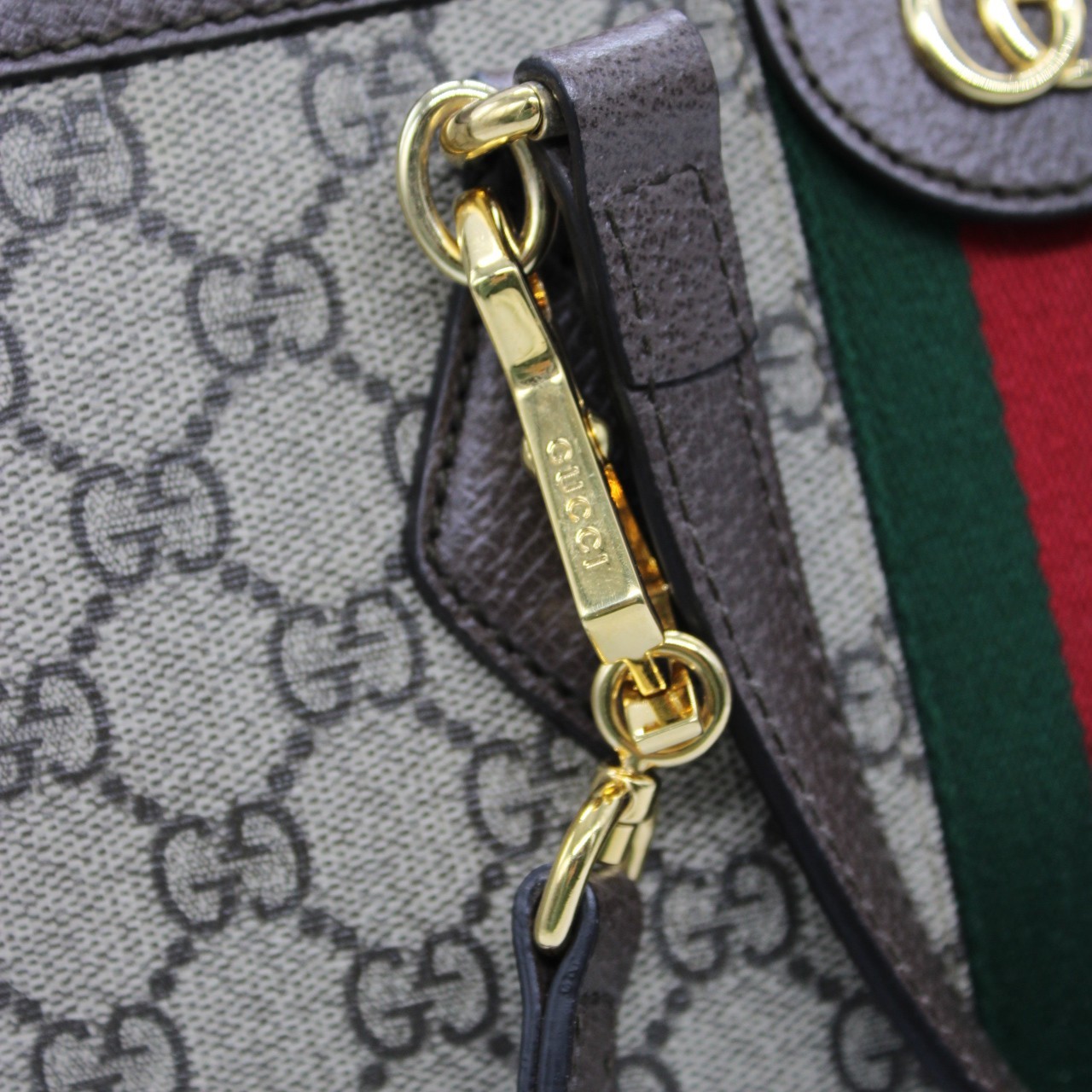 Borsa Gucci shopping Ophidia in tessuto ed inserti in pelle con parti metalliche dorate. Dotata di tracolla regolabile e amovibile per portarla a mano oppure a spalla. Borsa che si adatta anche a semplici outfit, pratica ed elegante. Articolo in condizioni eccellenti corredata di dust e cartellini