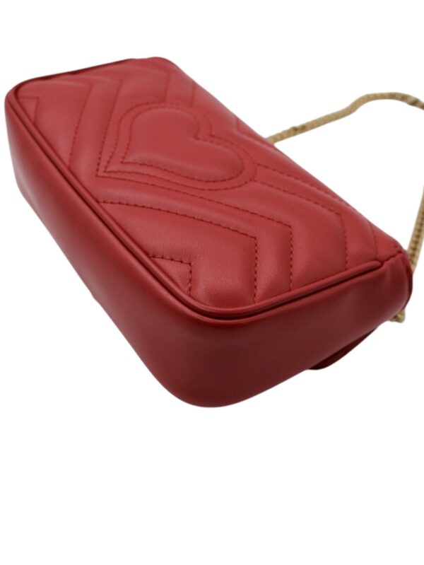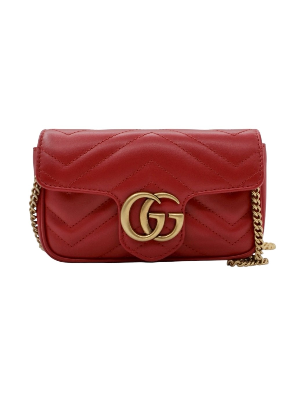 Borsa Gucci Super Mini GG Marmont Rossa con dettagli metallici dorati. Borsa da portare a spalla oppure incrocio a tracolla. Articolo in eccellenti condizioni dotato di scatola e cartellini.
