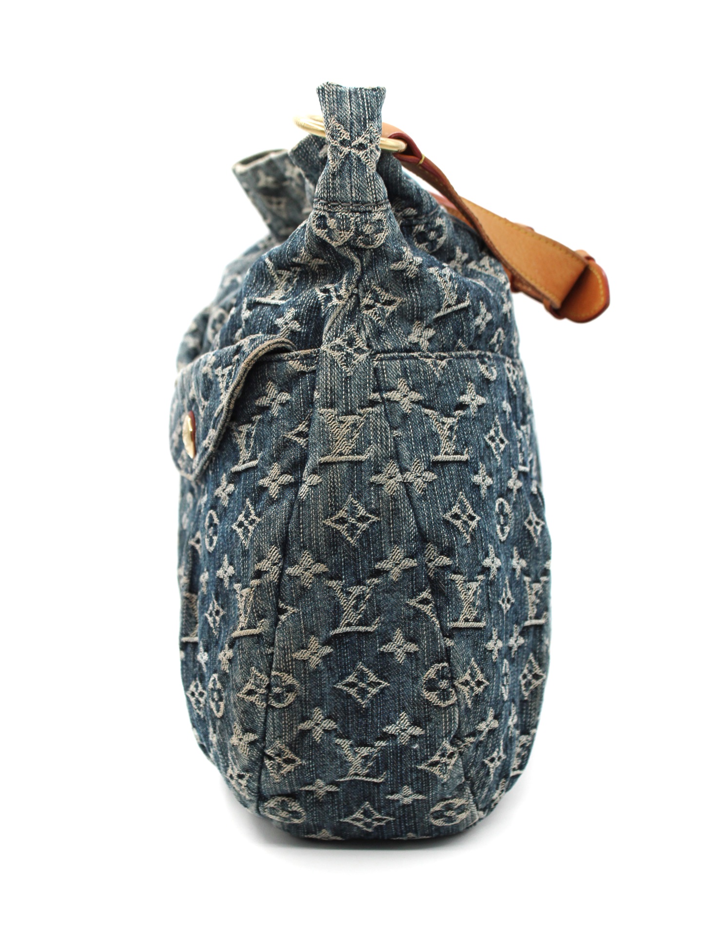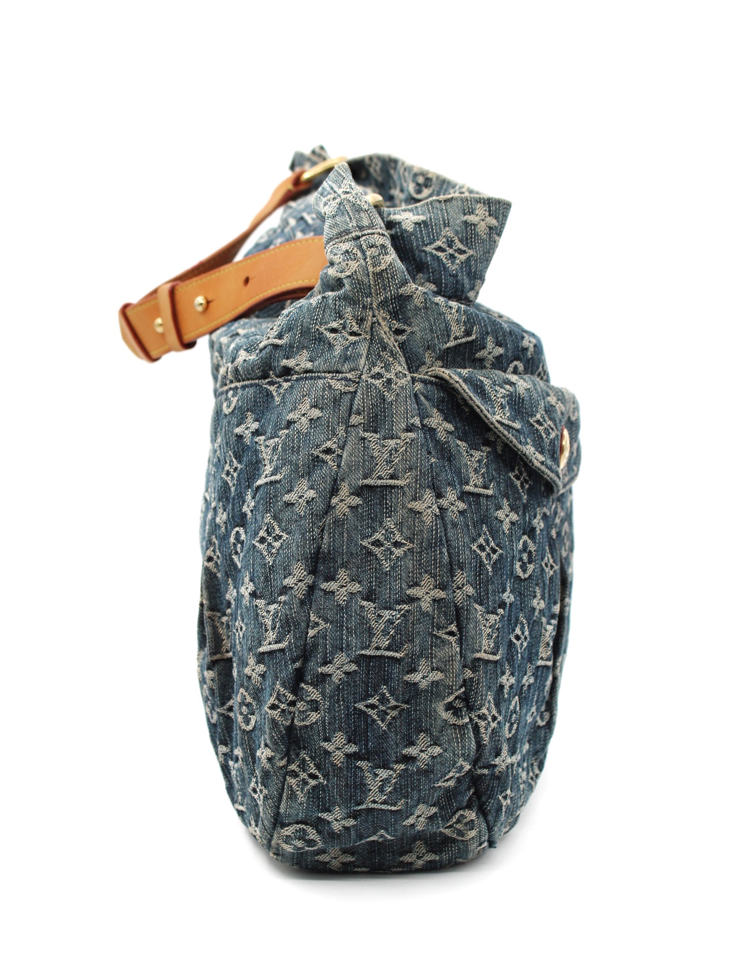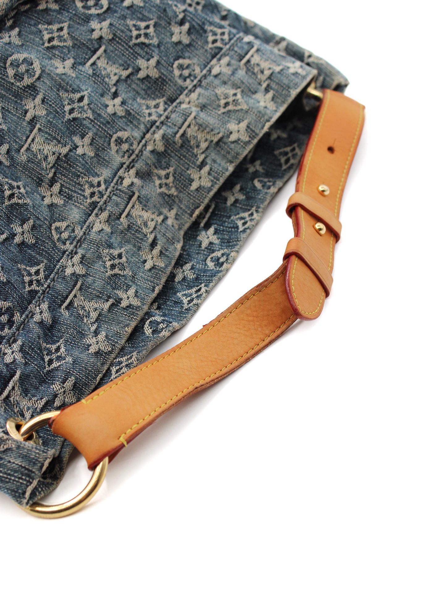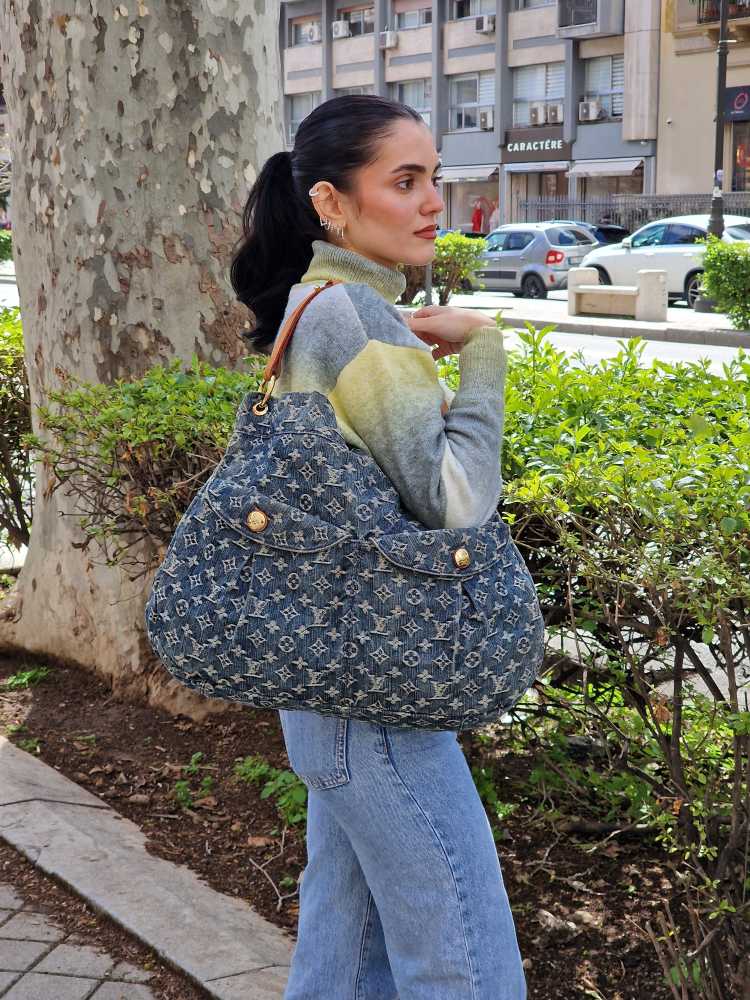 Borsa Louis Vuitton Denim Daily GM Blu e dettagli metallici dorati. Da portare a mano o a spalla, grazie al suo manico in vacchetta regolabile, questa borsa è perfetta abbinata ad outfit giornalieri. Articolo in ottime condizioni corredato di dust bag.
