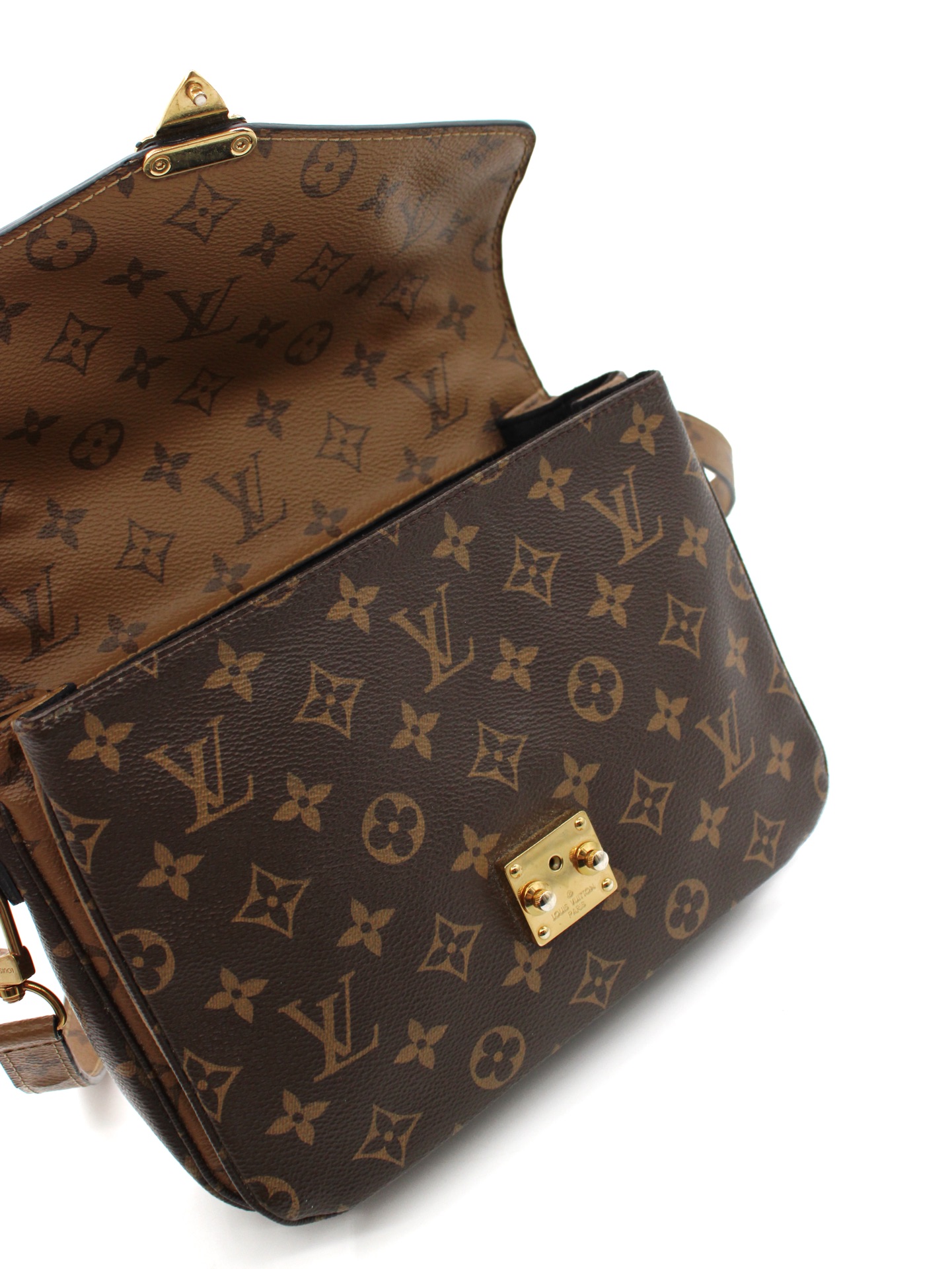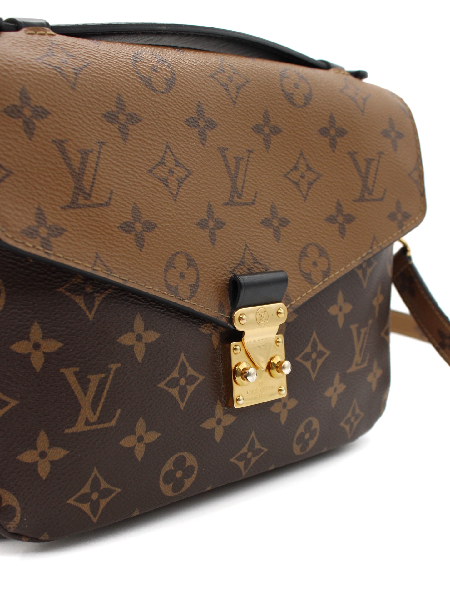 Borsa Louis Vuitton Métis Reverse con parti metalliche dorate. Da portare a spalla oppure ad incrocio questa borsa è perfetta per svariate occasioni con diversi tipi di outfit. Articolo in ottime condizioni corredata di dust bag Très Chic. NB Si evidenzia metalleria leggermente sbiadita nella fibbia davanti e nel cursore posteriore