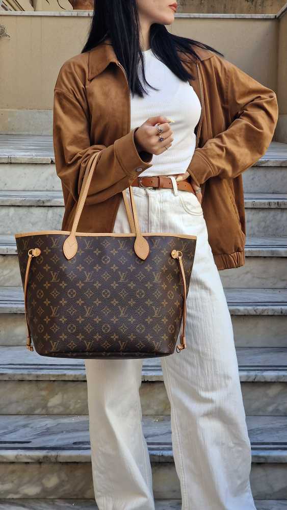 Borsa Louis Vuitton Neverfull MM in tela monogram e parti metalliche dorate. Da portare a spalla oppure a mano questa borsa si adatta a svariati outfit. Articolo in condizioni eccellenti con dust bag e fattura.