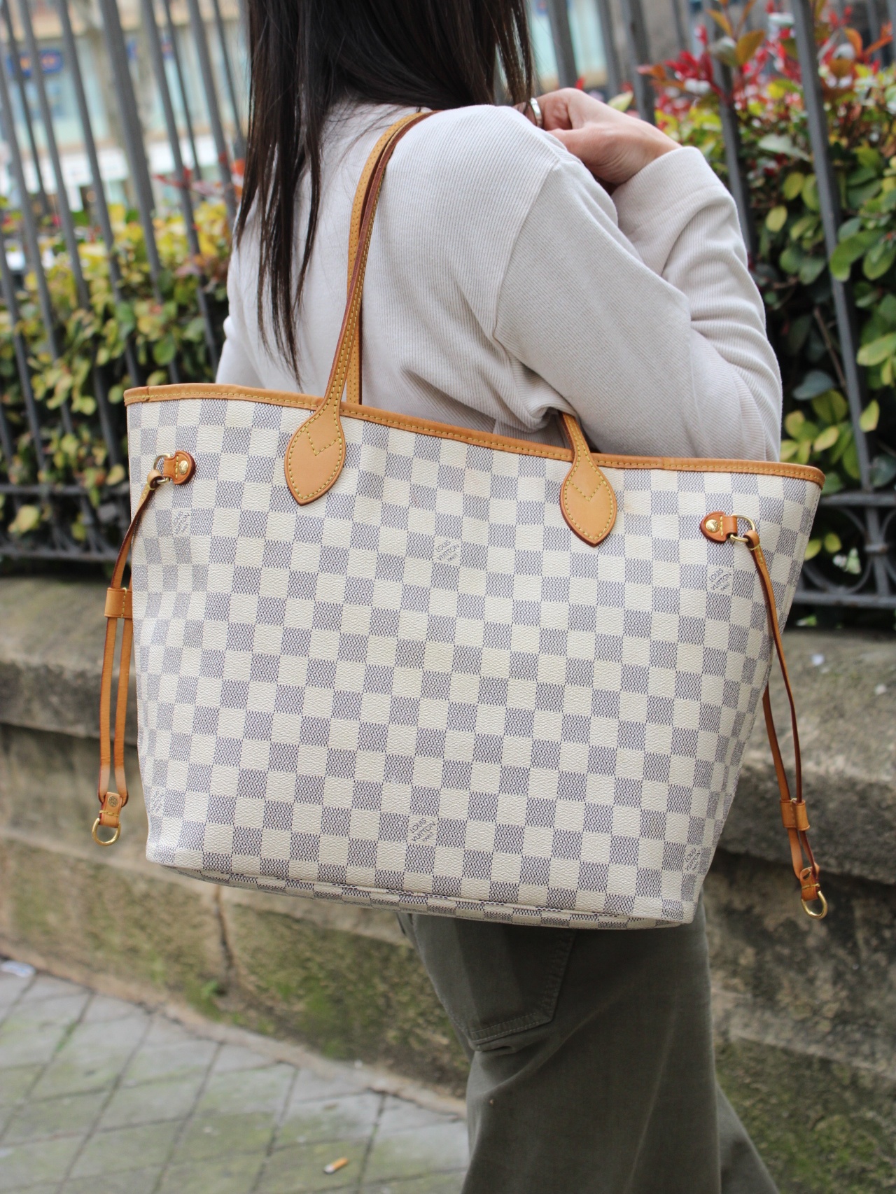 Borsa Louis Vuitton Neverfull damier azur con parti metalliche dorate. Da portare a spalla questa borsa è perfetta per tutti i giorni con svariati tipi di outfit. Articolo in ottime condizioni corredato da dust Très Chic