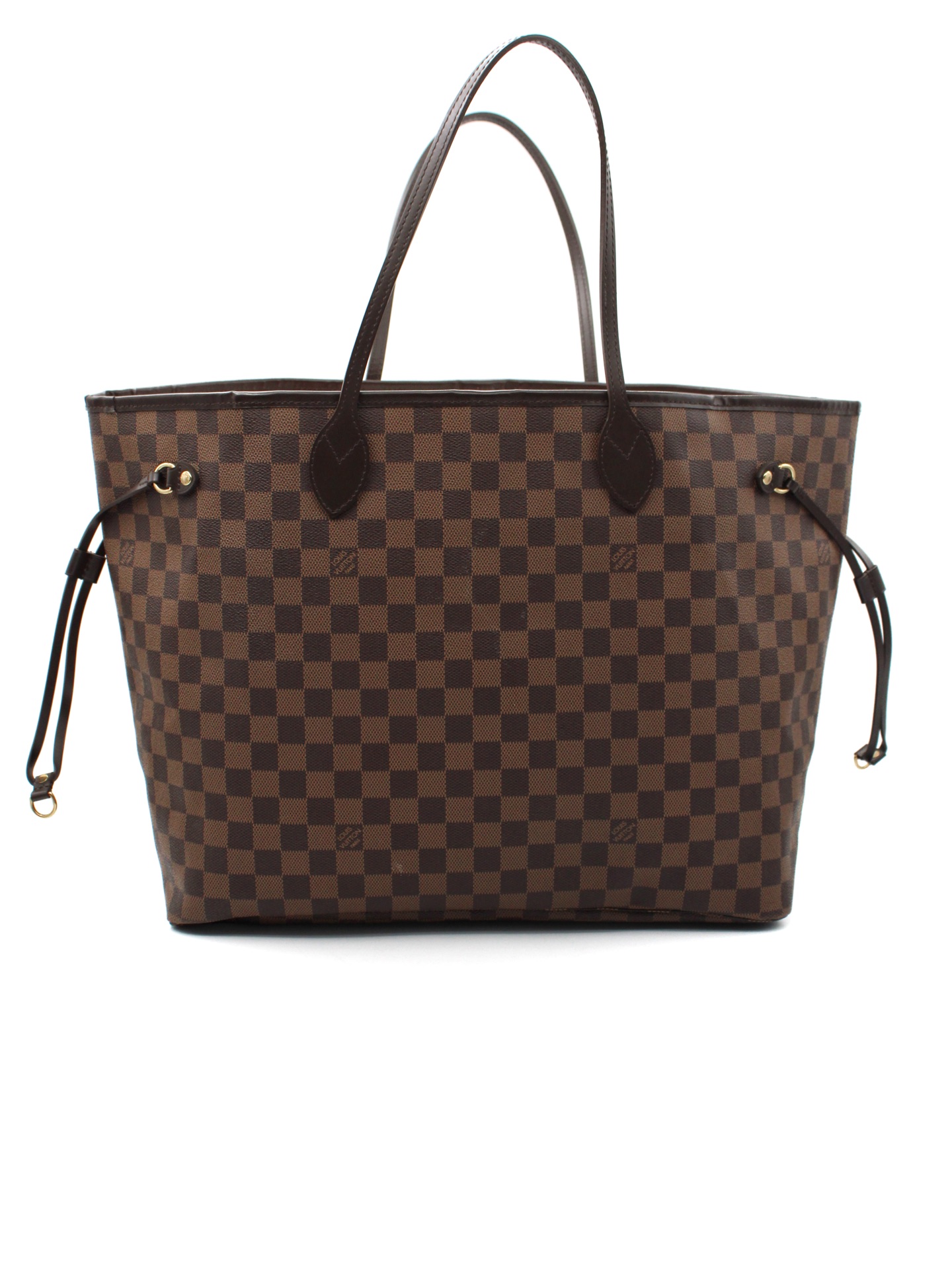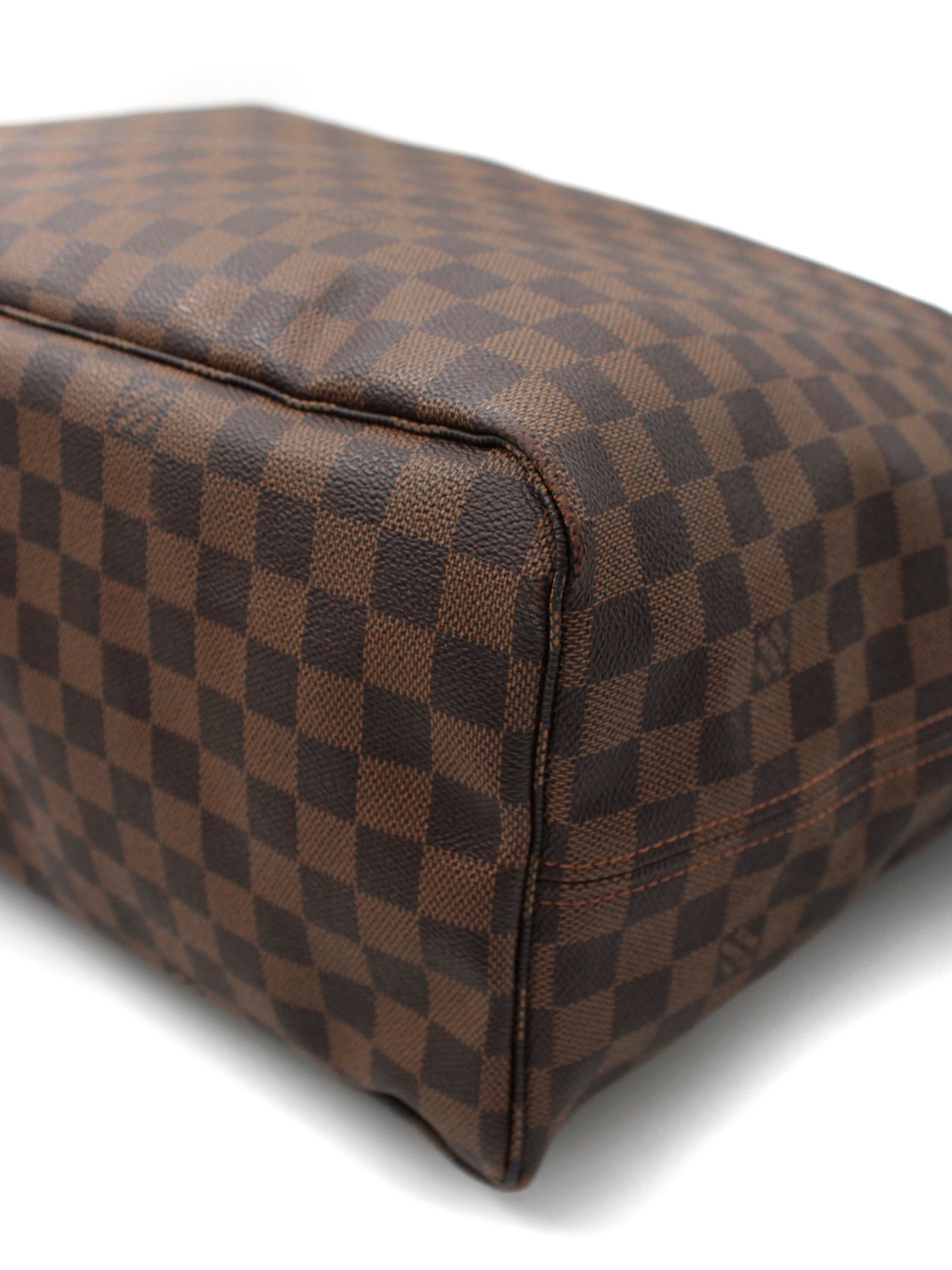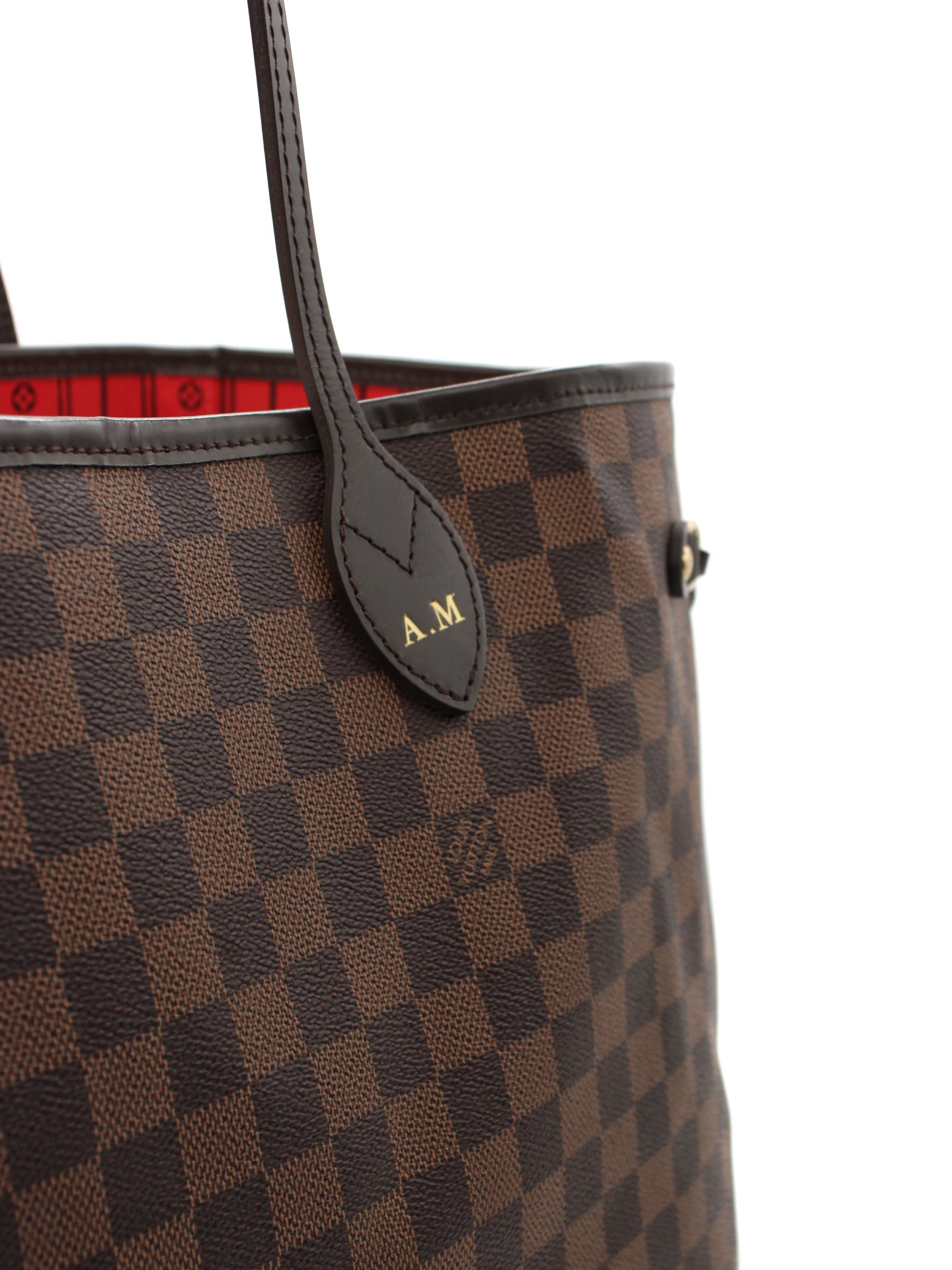 Borsa Louis Vuitton Neverfull GM Damier Ebene con parti metalliche dorate e iniziali A.M . Da portare a spalla oppure a mano questa borsa si adatta a svariati outfit. Articolo in condizioni eccellenti con dust bag.