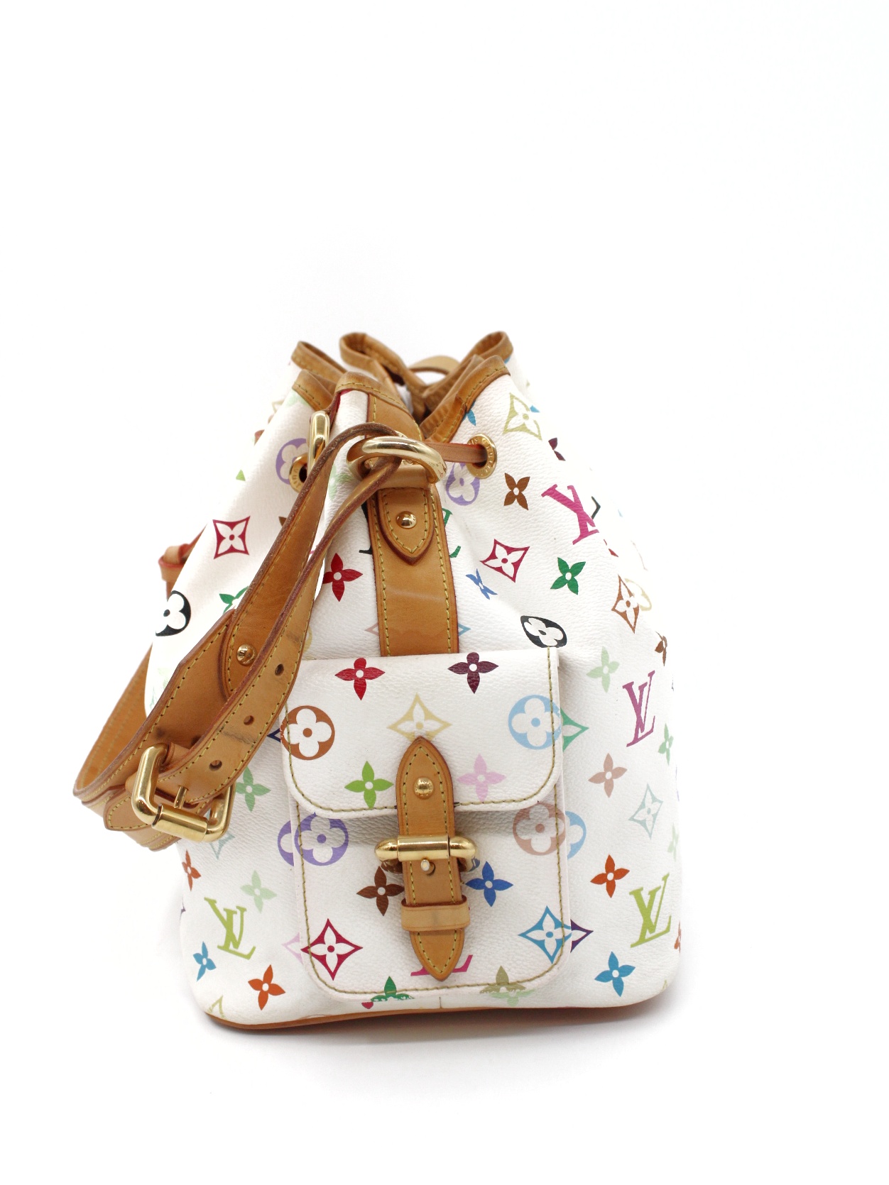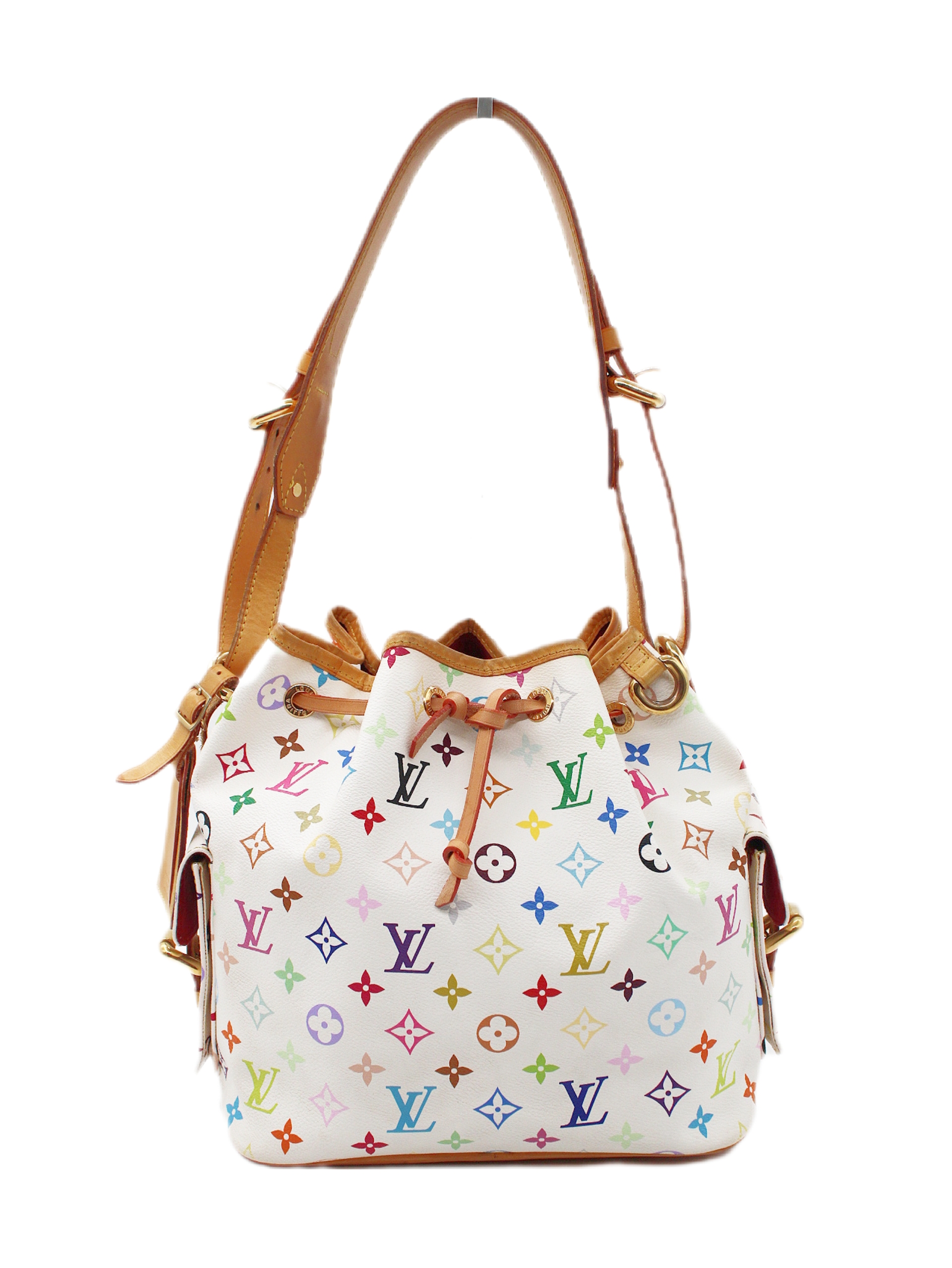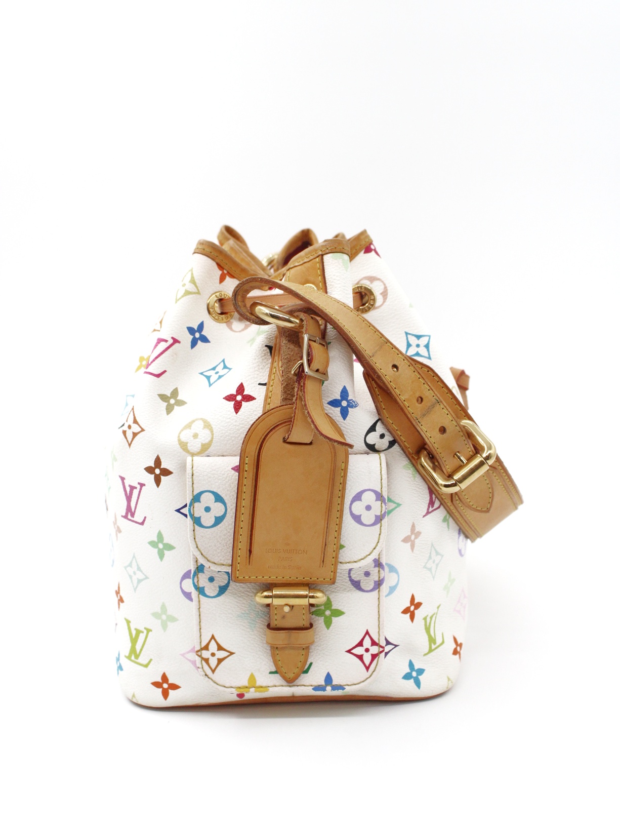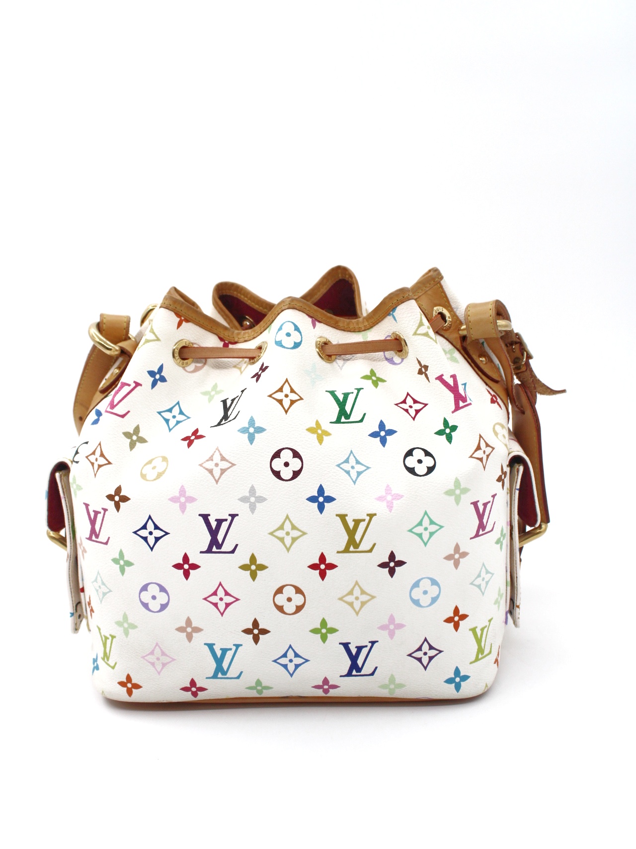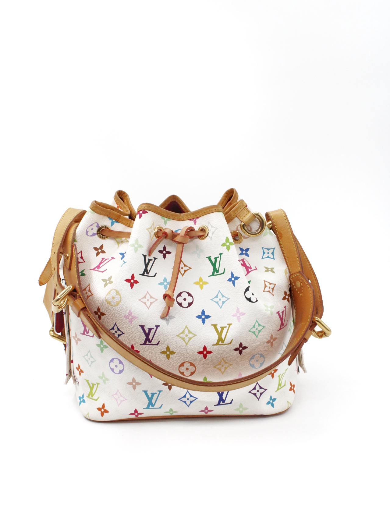 Borsa Louis Vuitton Petit Noe multicolor e parti metalliche dorate. Da portare a spalla questa borsa è perfetta per tutti i giorni con outfit casual. Articolo in ottime condizioni ( laccetto sostituito artigianalmente) . Corredata di dust bag.