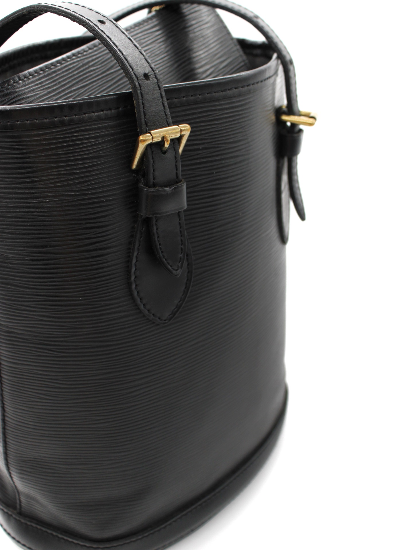 Borsa Louis Vuitton Secchiello in Pelle Epi Nera con parti metalliche dorate. Da portare a spalla grazie ai suoi manici regolabili, questa borsa è perfetta abbinata con svariati tipi di outfit. Articolo in ottime condizioni corredato di dust bag Très chic.