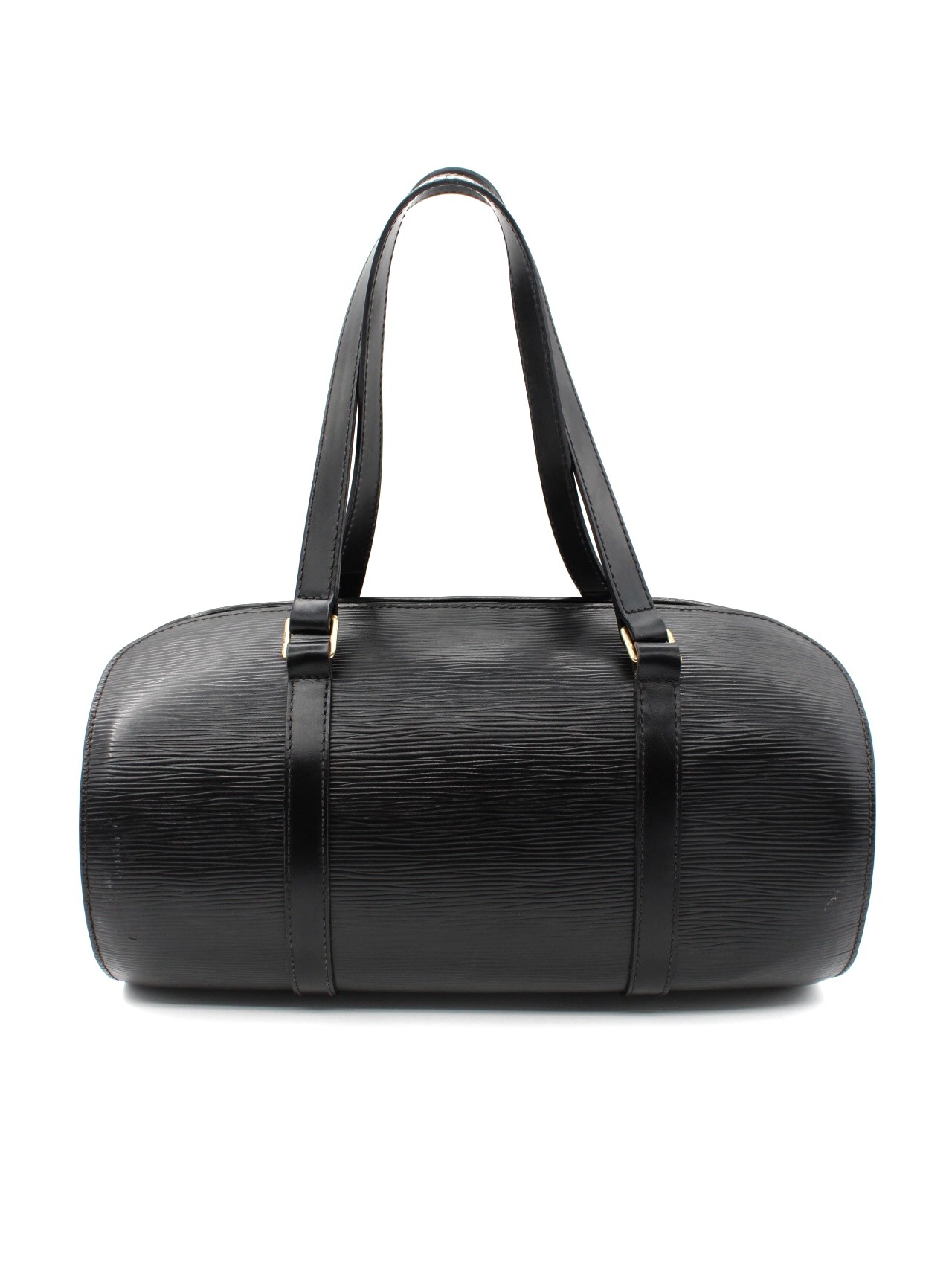 Borsa Louis Vuitton Soufflot in Pelle Nera Epi con dettagli metallici dorati. Borsa da portare a spalla, perfetta per tutti i giorni abbinandosi perfettamente ad outfit casual. Articolo in ottime condizioni corredato di dust bag Très Chic.
