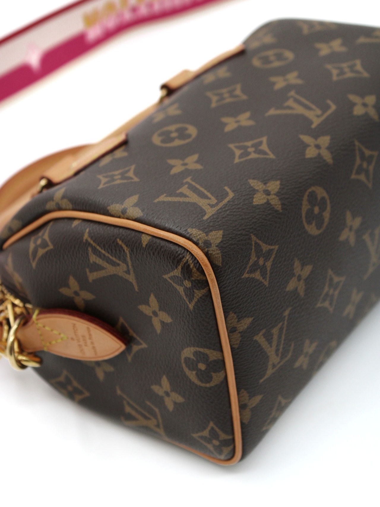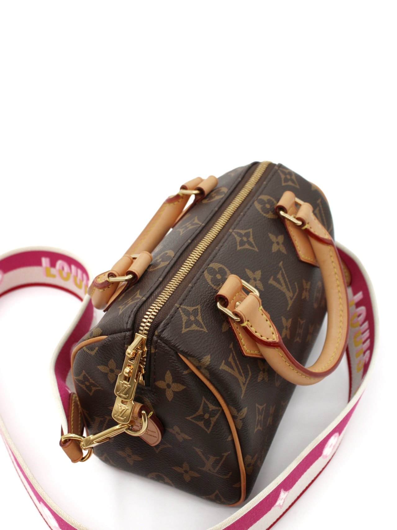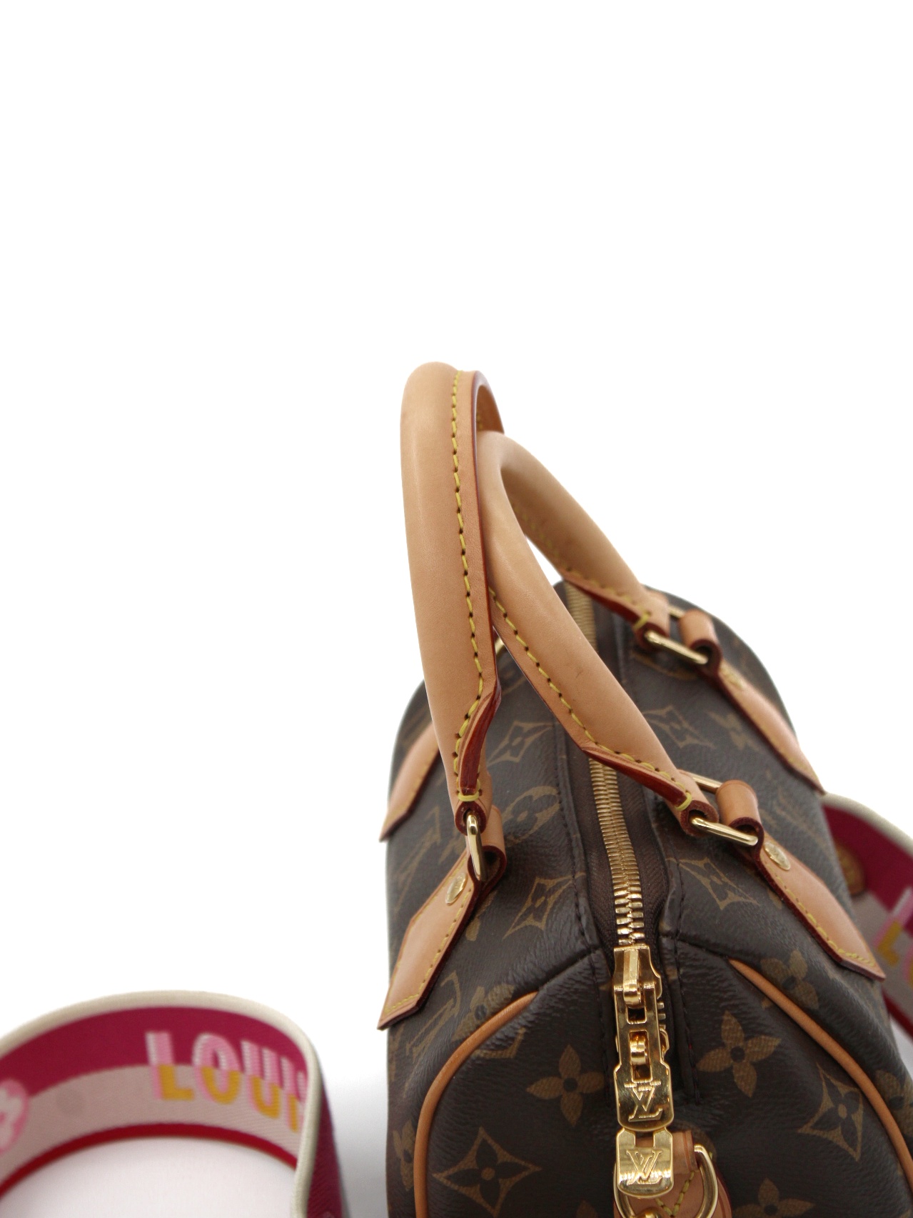 Borsa Louis Vuitton Speedy 20 monogram con parti metalliche dorate. Da portare a mano oppure a spalla questa borsa è perfetta per tutti i giorni con outfit casual. Articolo in condizioni eccellenti completo di dust bag e fattura di acquisto.