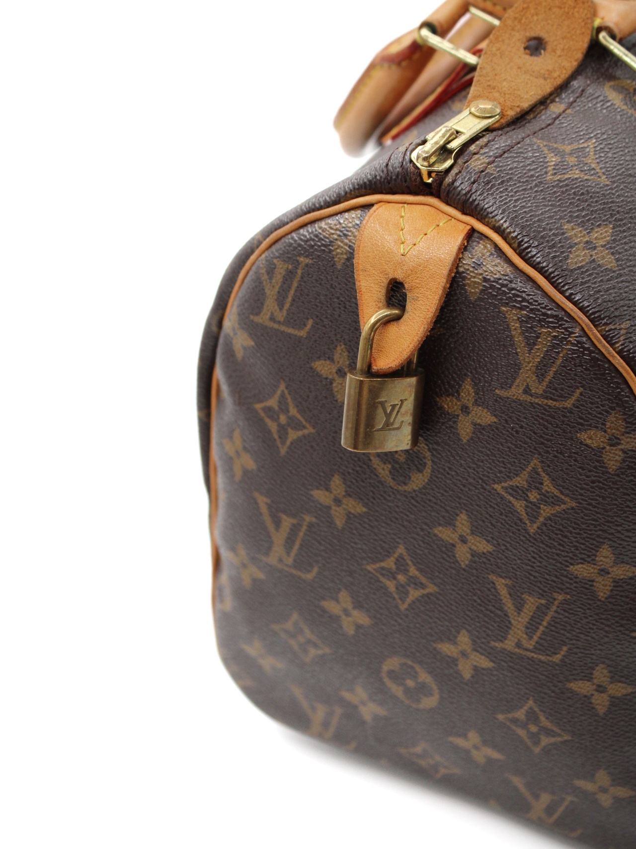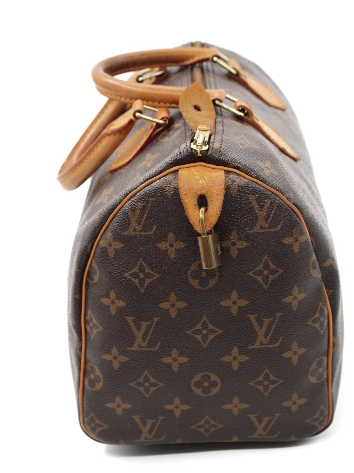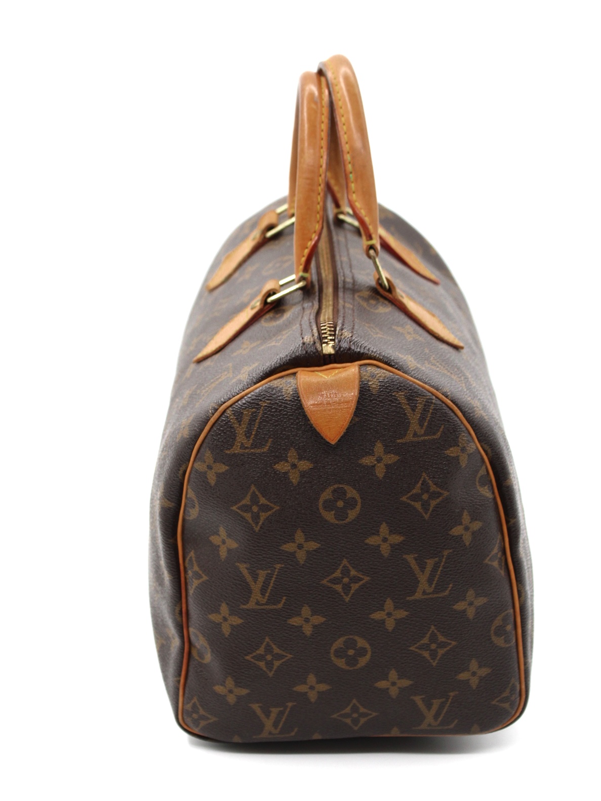 Borsa Louis Vuitton speedy 30 monogram con parti metalliche dorate. Da portare a mano questa borsa è perfetta per tutti i giorni con outfit casual. Articolo in ottime condizioni con dust bag. Si evidenzia un attacco in vacchetta sostituito in boutique con relativa fattura.