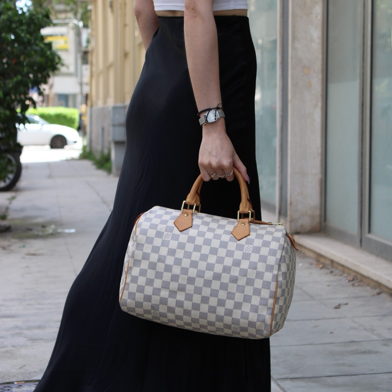 Borsa Louis Vuitton speedy 30 in tela canvas ed inserti in vacchetta. Da portare a mano, questa borsa dona eleganza anche al più semplice degli outfit. Articolo in ottime condizioni corredato di dust bag.