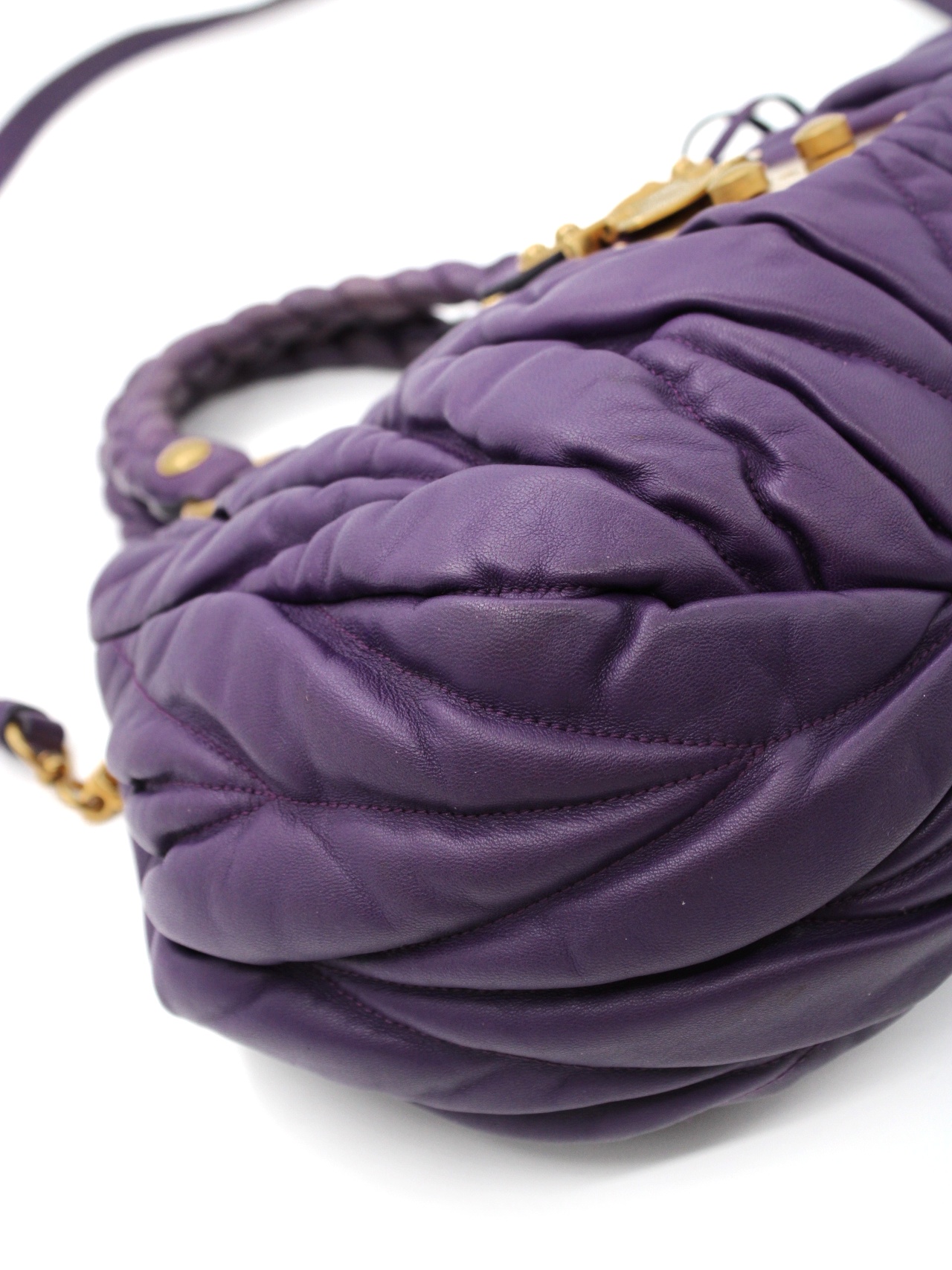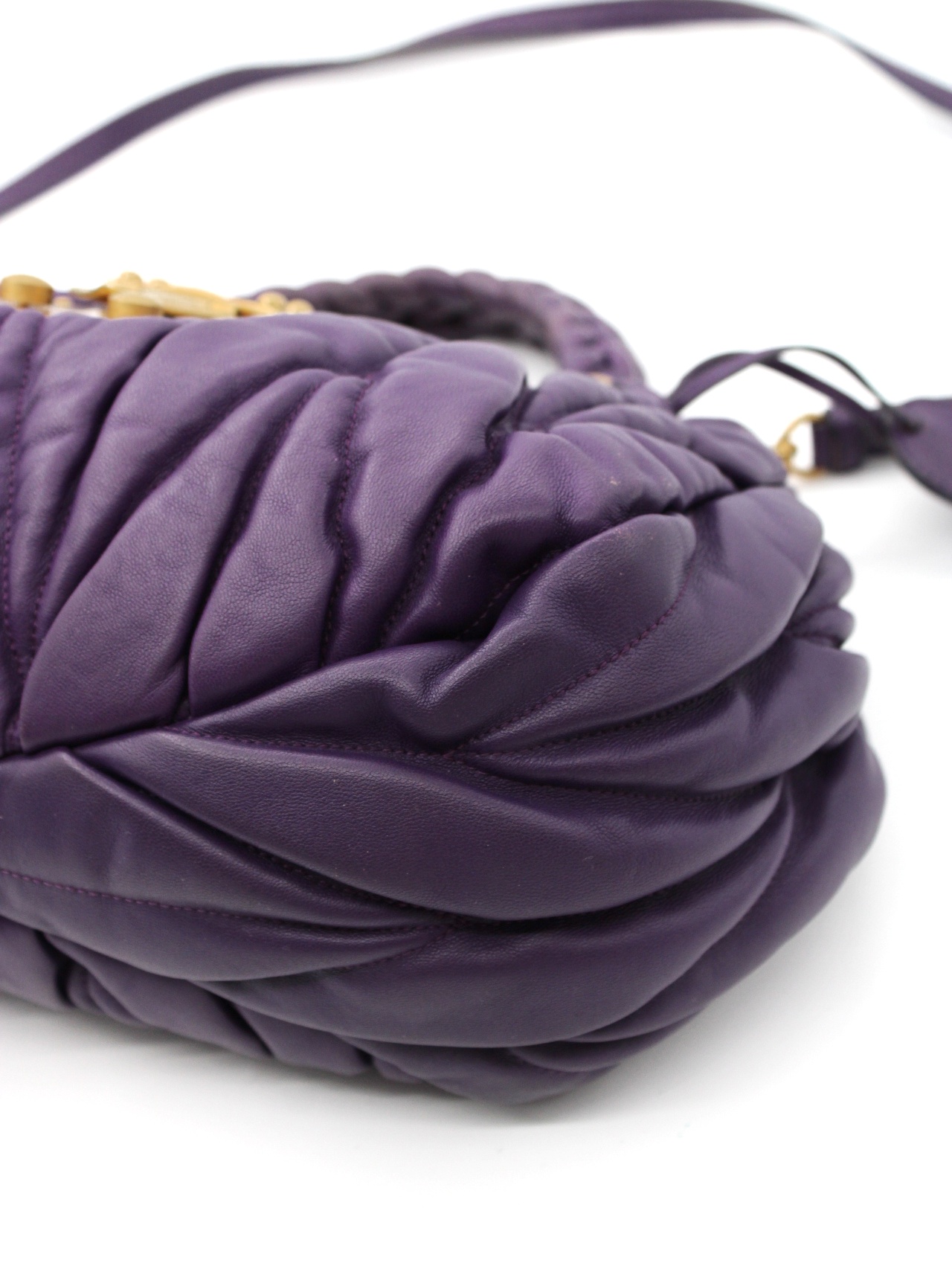 Borsa Miu Miu in pelle Matelassé con parti metalliche dorate. Da portare a mano oppure a spalla grazie alla sua tracolla amovibile. Borsa perfetta per tutti i giorni con outfit casual. Articolo in condizioni ottime con dust bag très chic vintage.