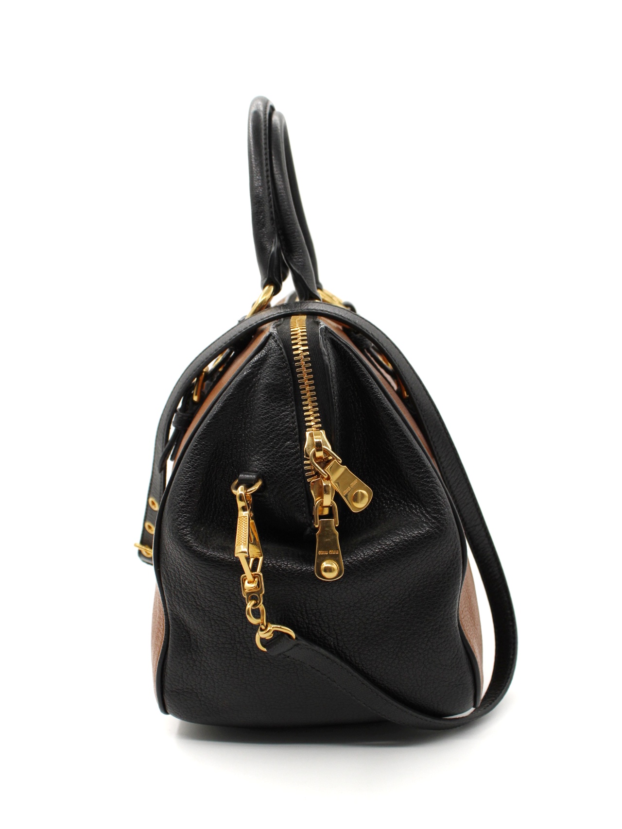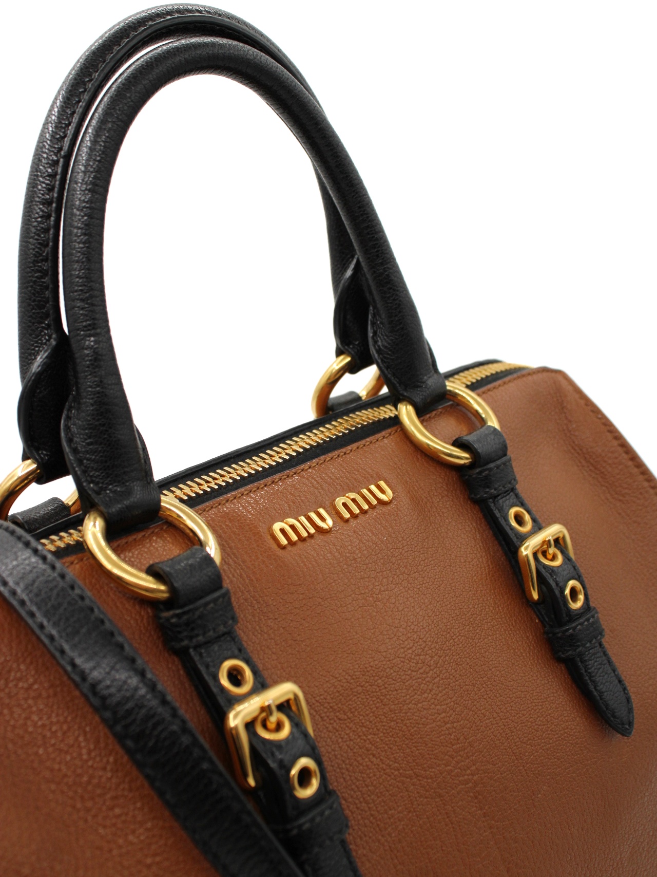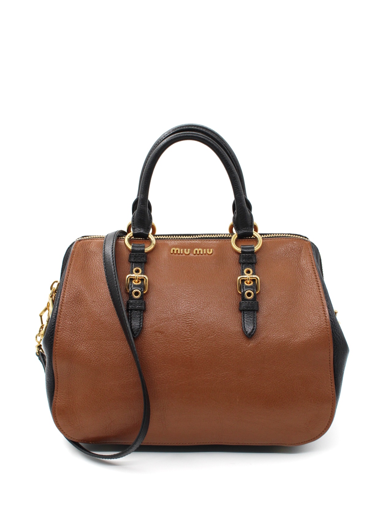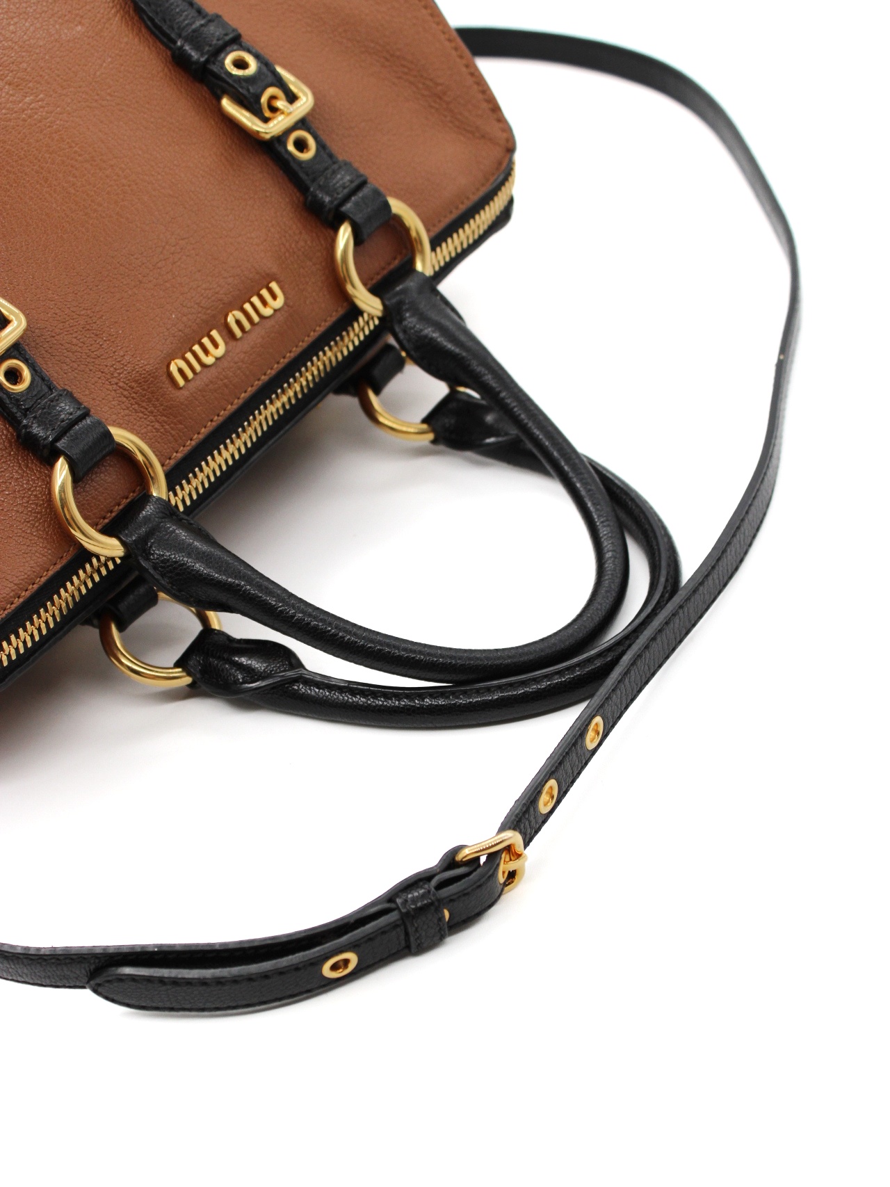 Borsa Miu Miu Madras con parti metalliche dorate. Da portare a mano oppure a spalla grazie alla sua tracolla regolabile e amovibile questa borsa è perfetta per tutti i giorni. Articolo in ottime condizioni completo di dust bag.