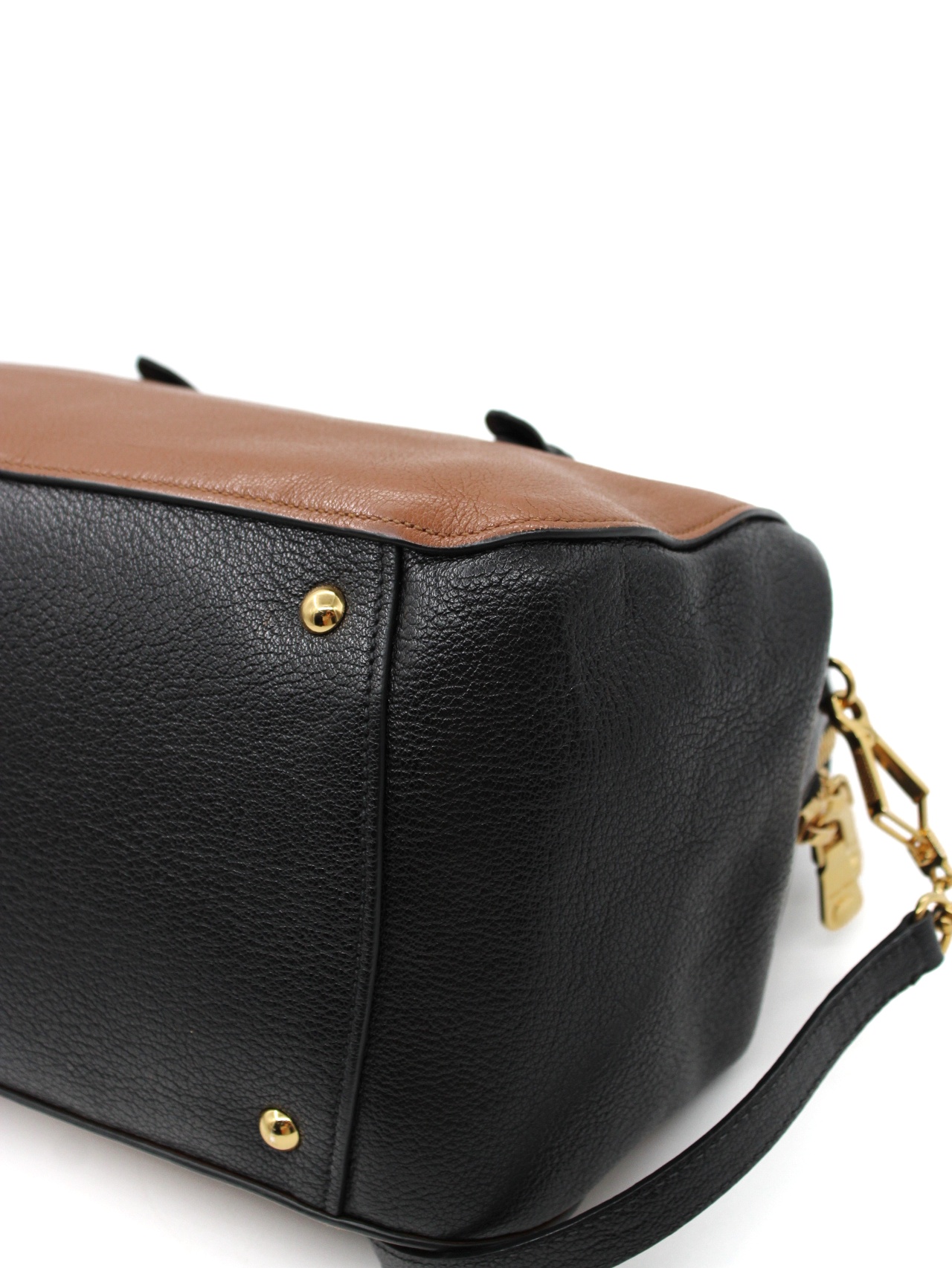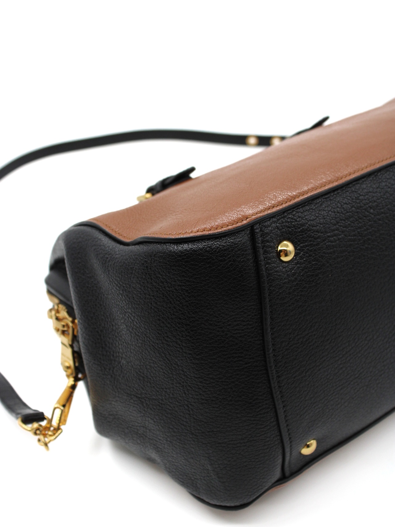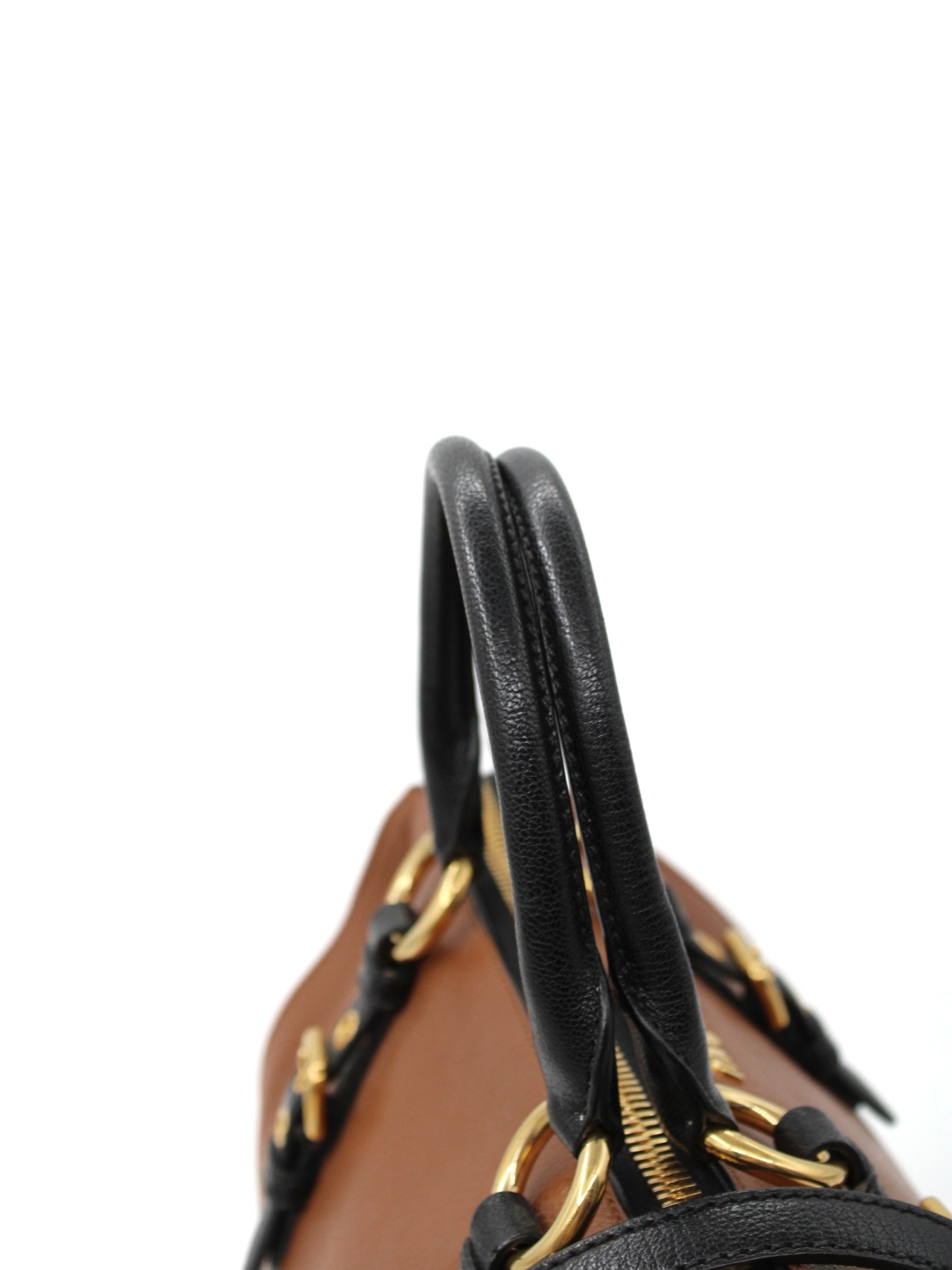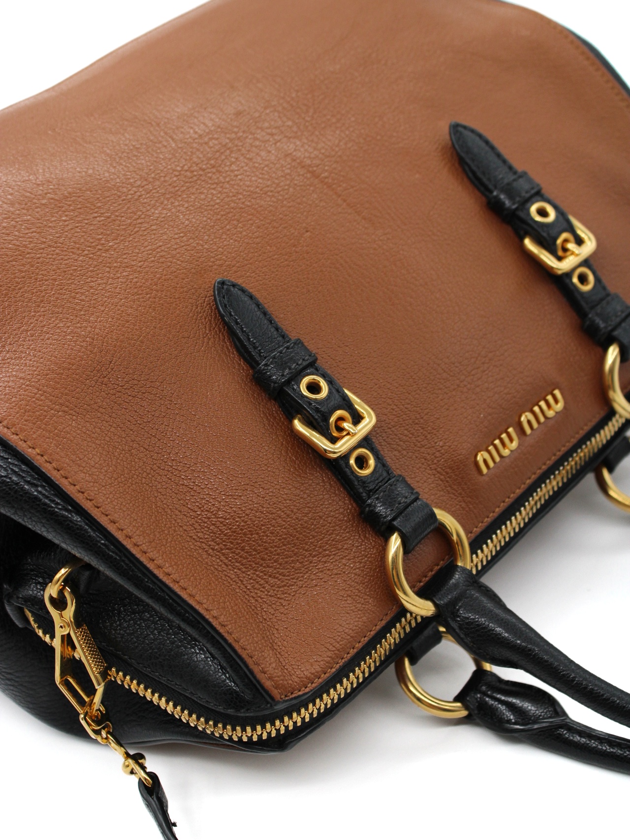 Borsa Miu Miu Madras con parti metalliche dorate. Da portare a mano oppure a spalla grazie alla sua tracolla regolabile e amovibile questa borsa è perfetta per tutti i giorni. Articolo in ottime condizioni completo di dust bag.
