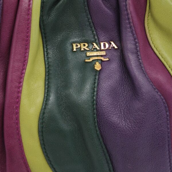 Borsa Prada in nappa multicolore con parti metalliche dorate. Da portare a spalla oppure a mano grazie alla sua tracolla regolabile e amovibile. Borsa capace di dare un tocco vivo al proprio outfit. Articolo in condizioni ottime corredato con dust bag.