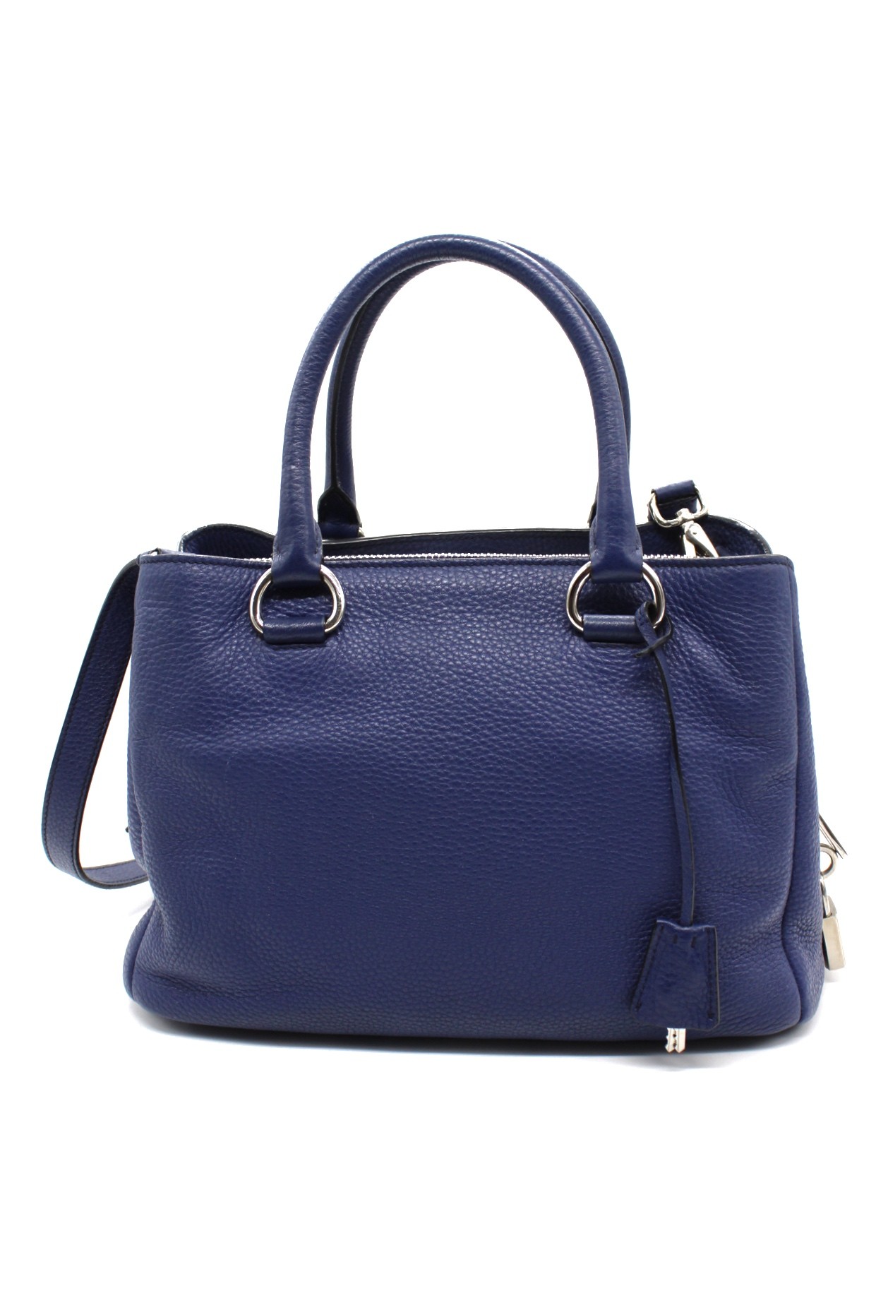 Borsa Prada in Pelle Martellata Blu con parti metalliche argentate. Da portare a mano oppure a spalla grazie alla sua tracolla regolabile e amovibile. Borsa perfetta per tutti i giorni. Articolo in ottime condizioni corredato di dust bag.