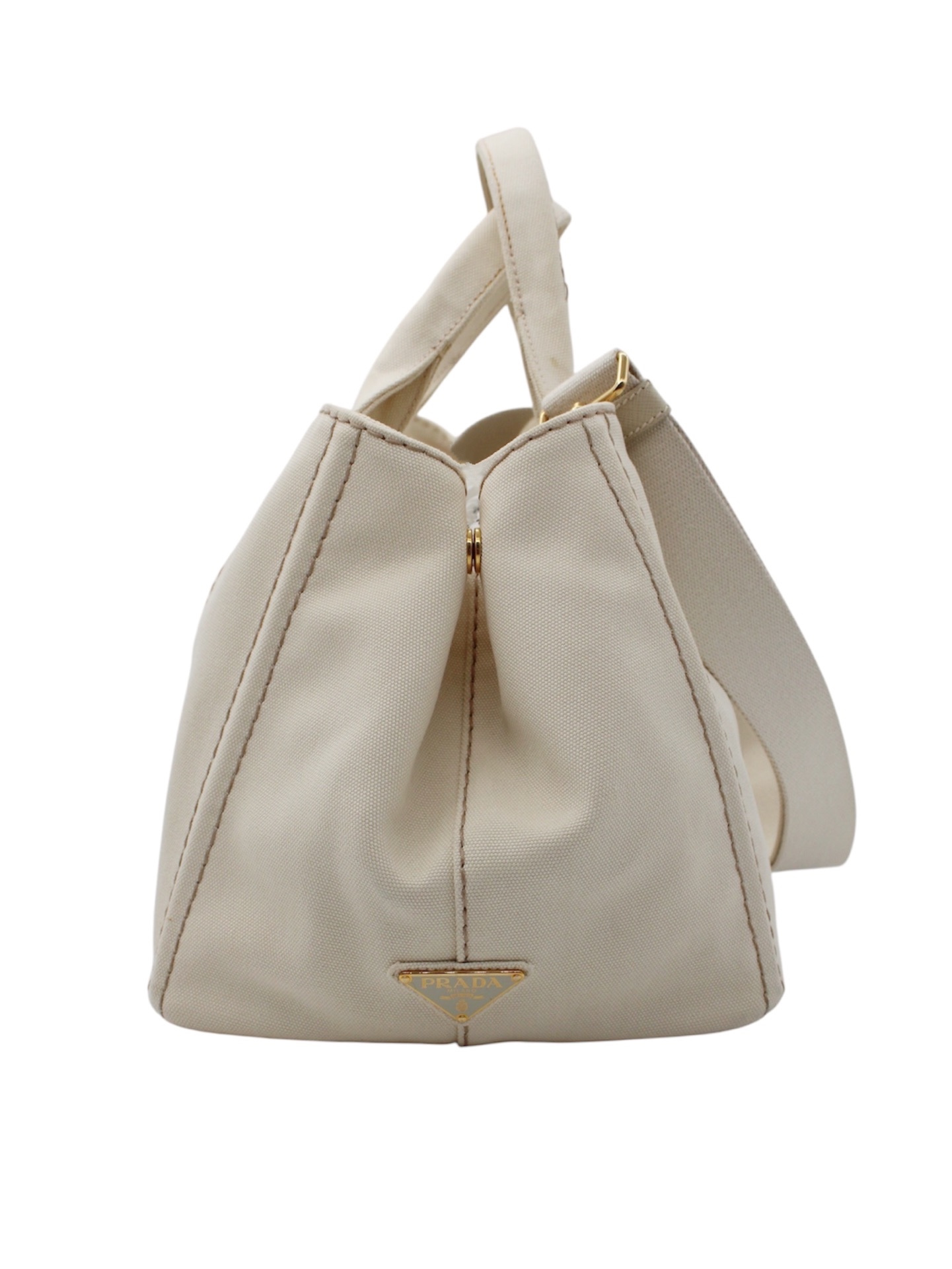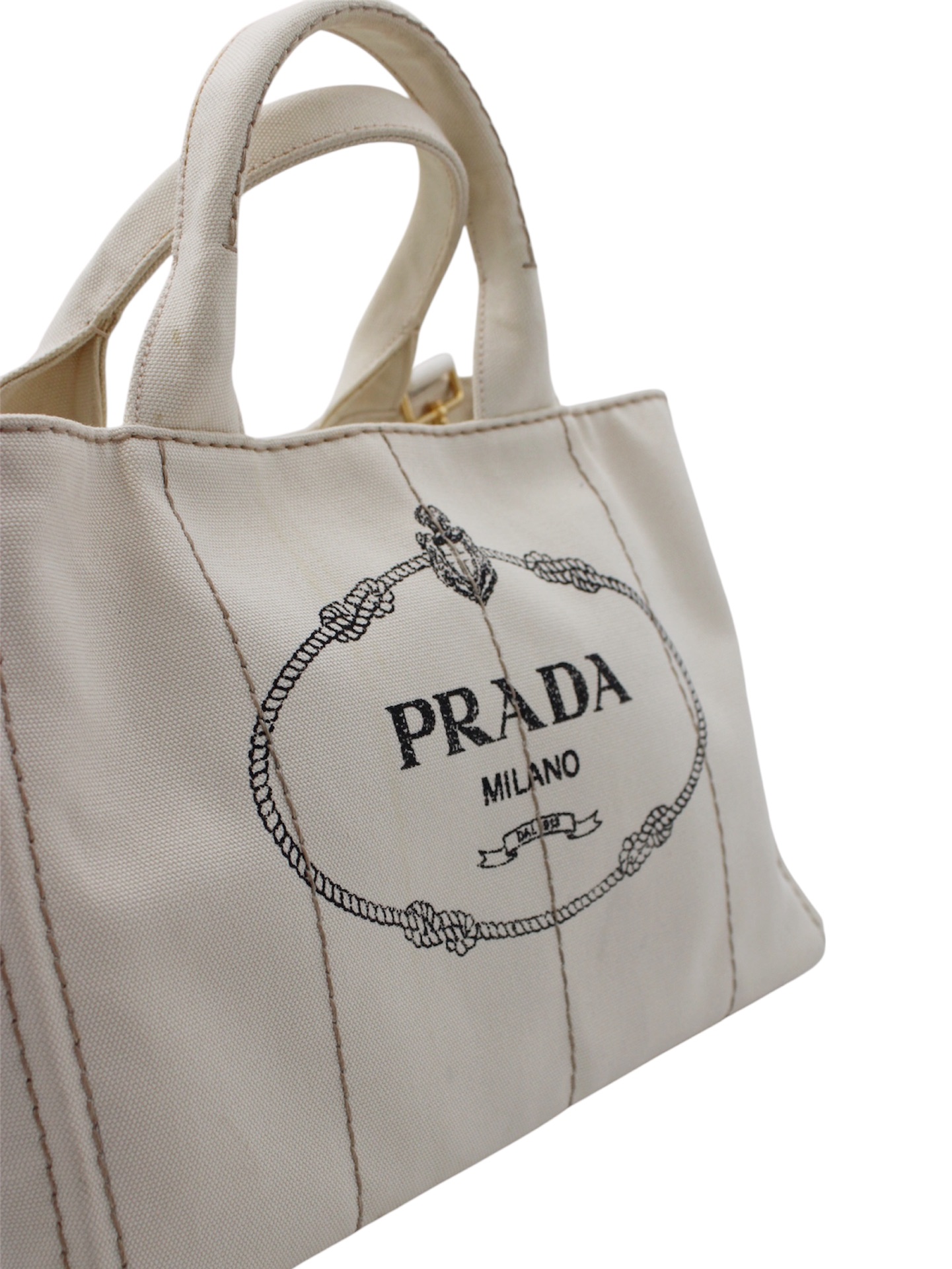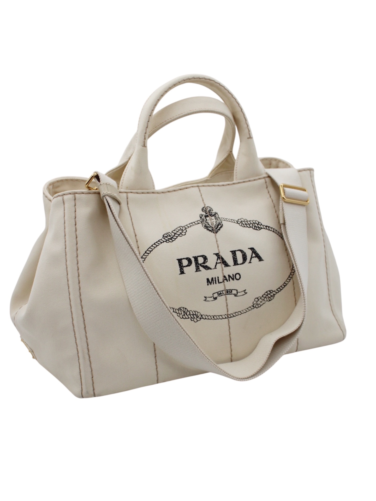 Borsa Prada Jardinière in Tessuto Panna con parti metalliche dorate. Da portare a mano, a spalla o ad incrocio grazie alla sua tracolla regolabile, questa porta è perfetta abbinata ad outfit casual. Articolo in ottime condizioni corredato di dust bag.
