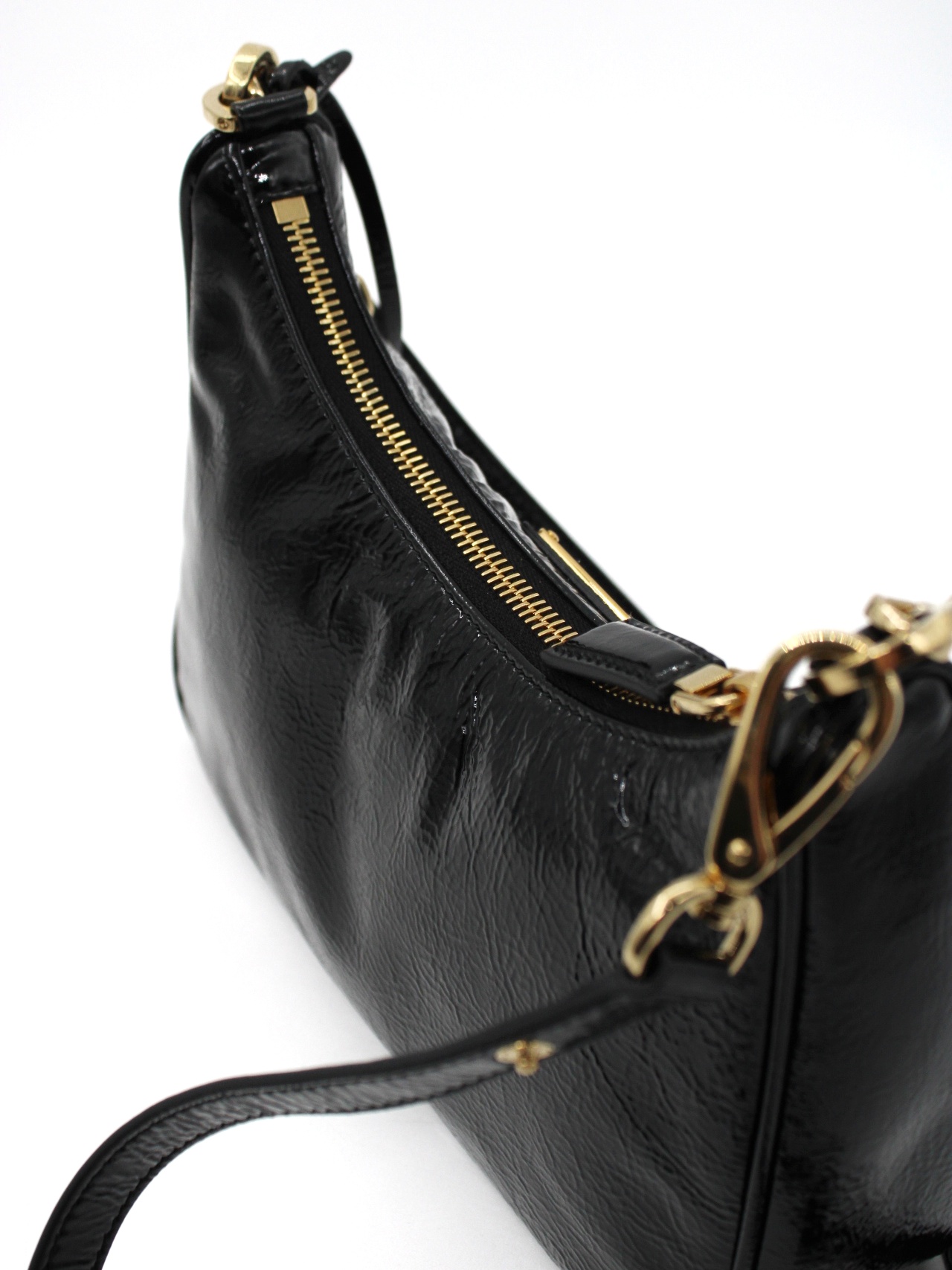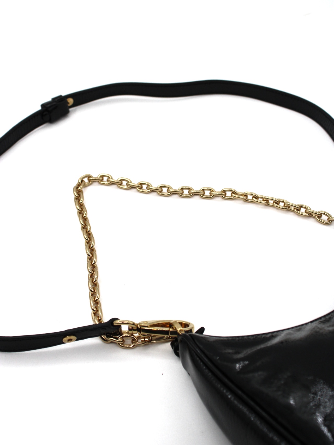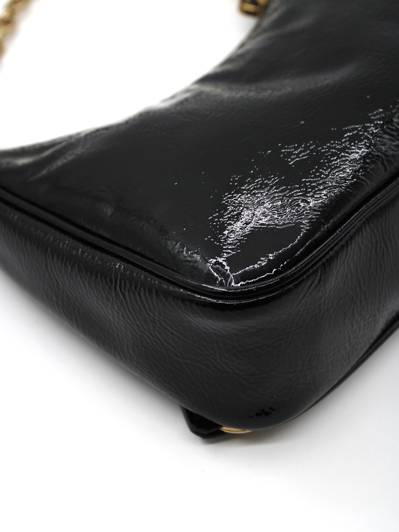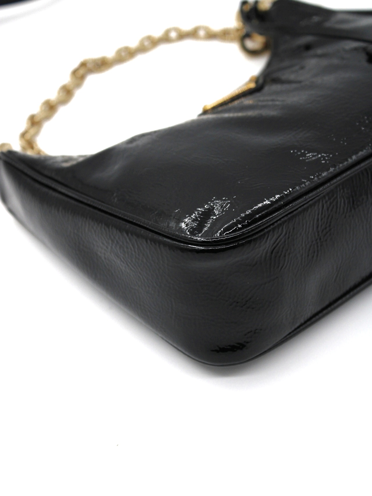 Borsa Prada Re-Edition in vernice naplak nero con parti metalliche dorate. Da portare a spalla questa borsa è perfetta per svariate occasioni con outfit ricercati. Articolo in condizioni eccellenti completo di dust bag