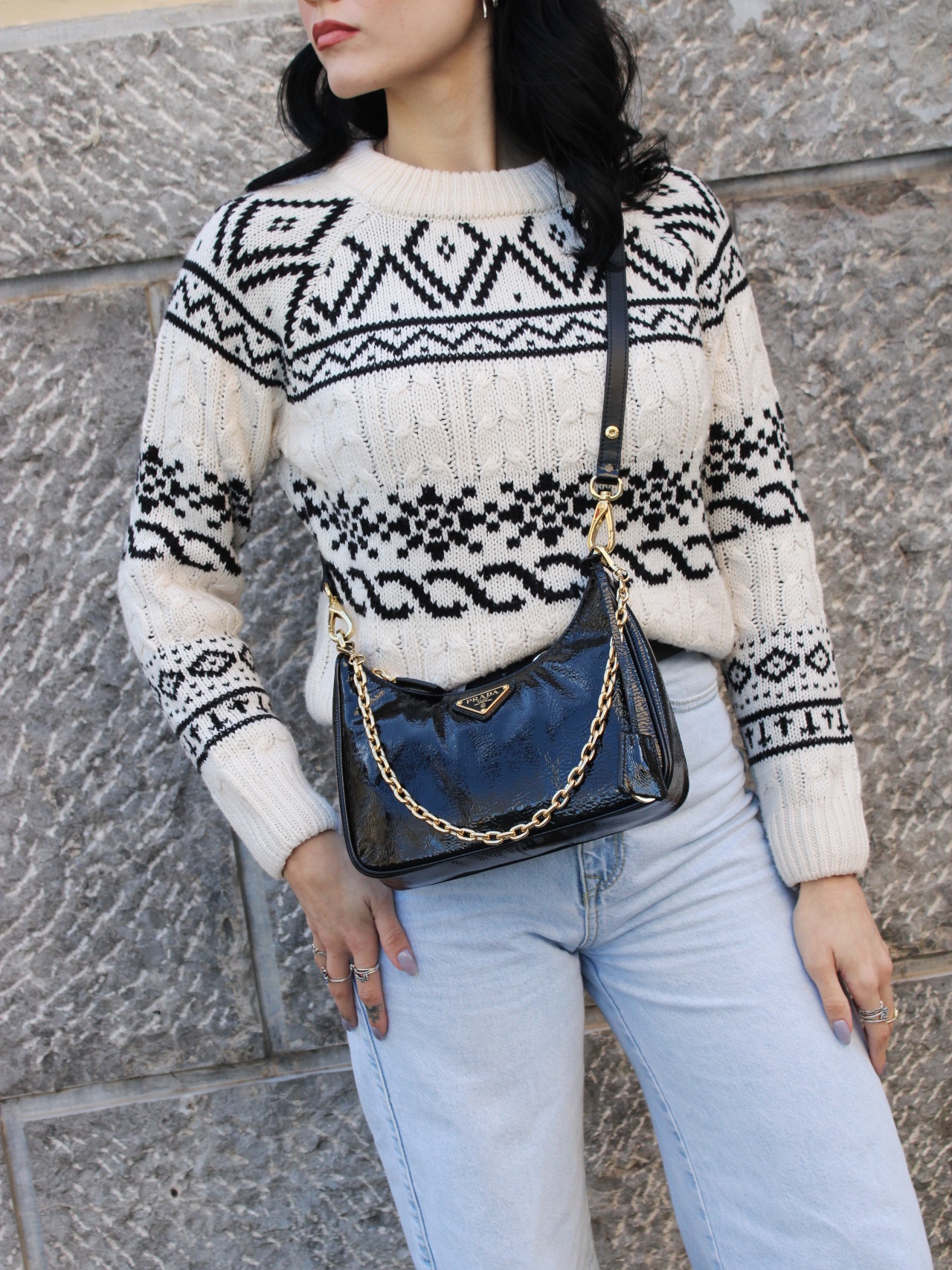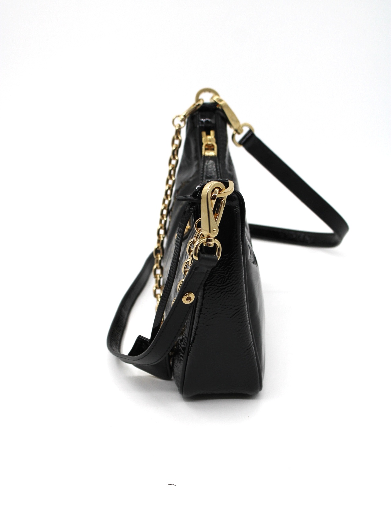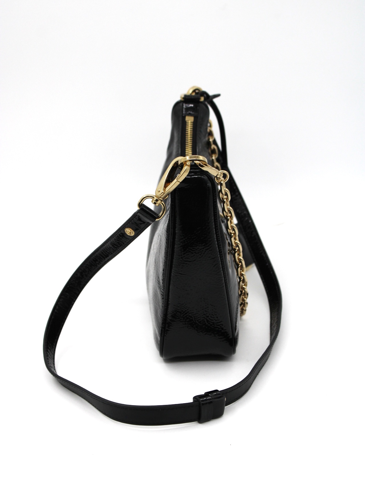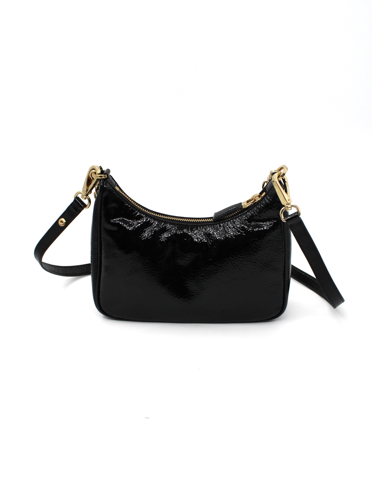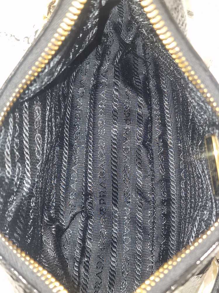 Borsa Prada Re-Edition in vernice naplak nero con parti metalliche dorate. Da portare a spalla questa borsa è perfetta per svariate occasioni con outfit ricercati. Articolo in condizioni eccellenti completo di dust bag