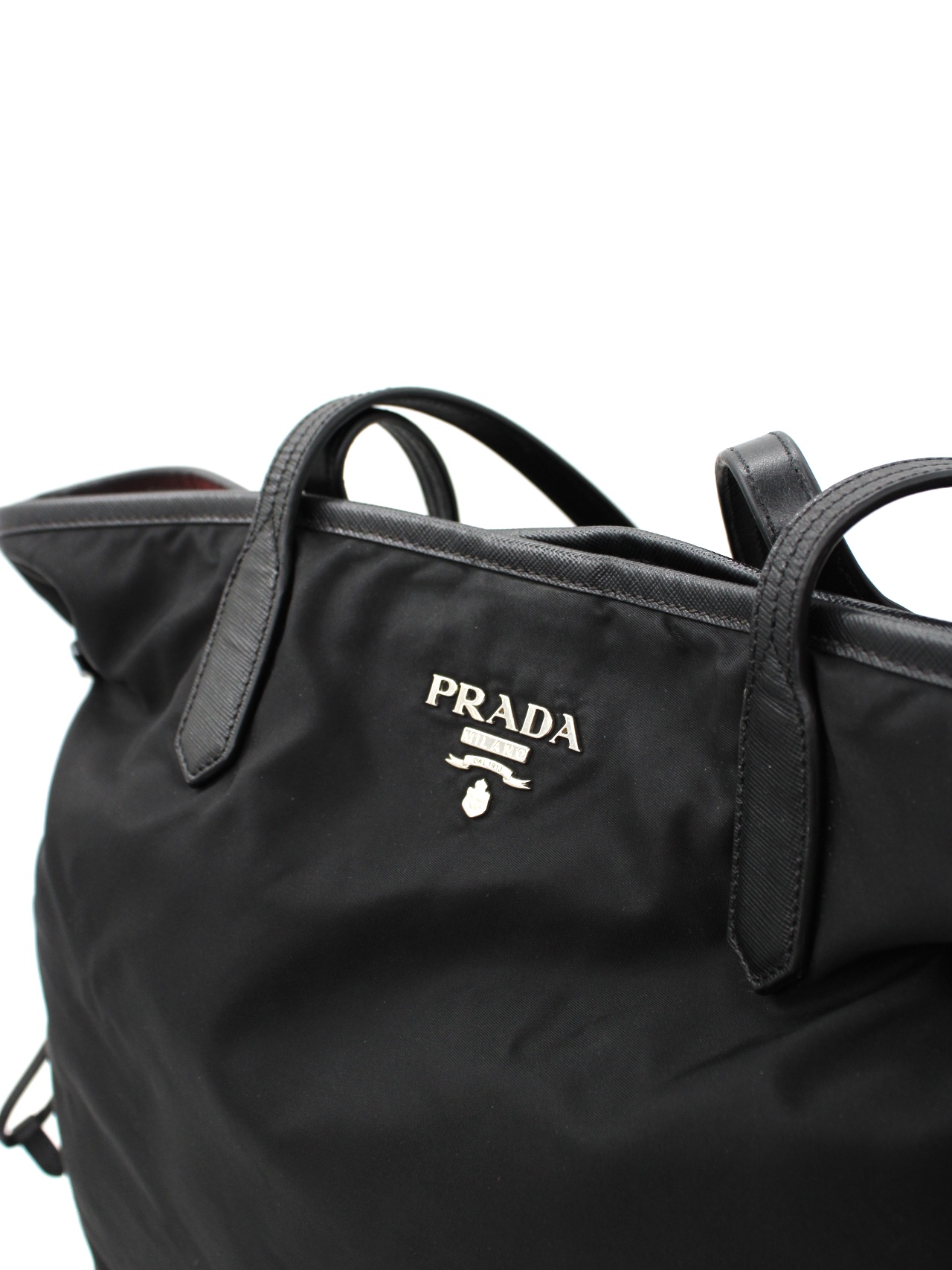 Borsa Prada Tote in tela vela con parti metalliche argentate. Da portare a spalla questa borsa è perfetta per tutti i giorni con svariati tipi di outfit. Articolo in ottime condizioni completo di dust Très Chic.