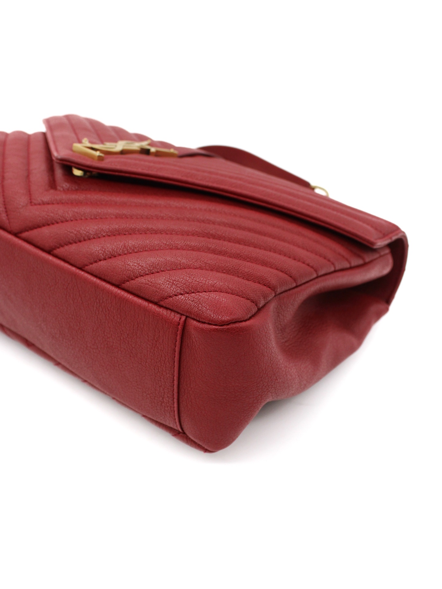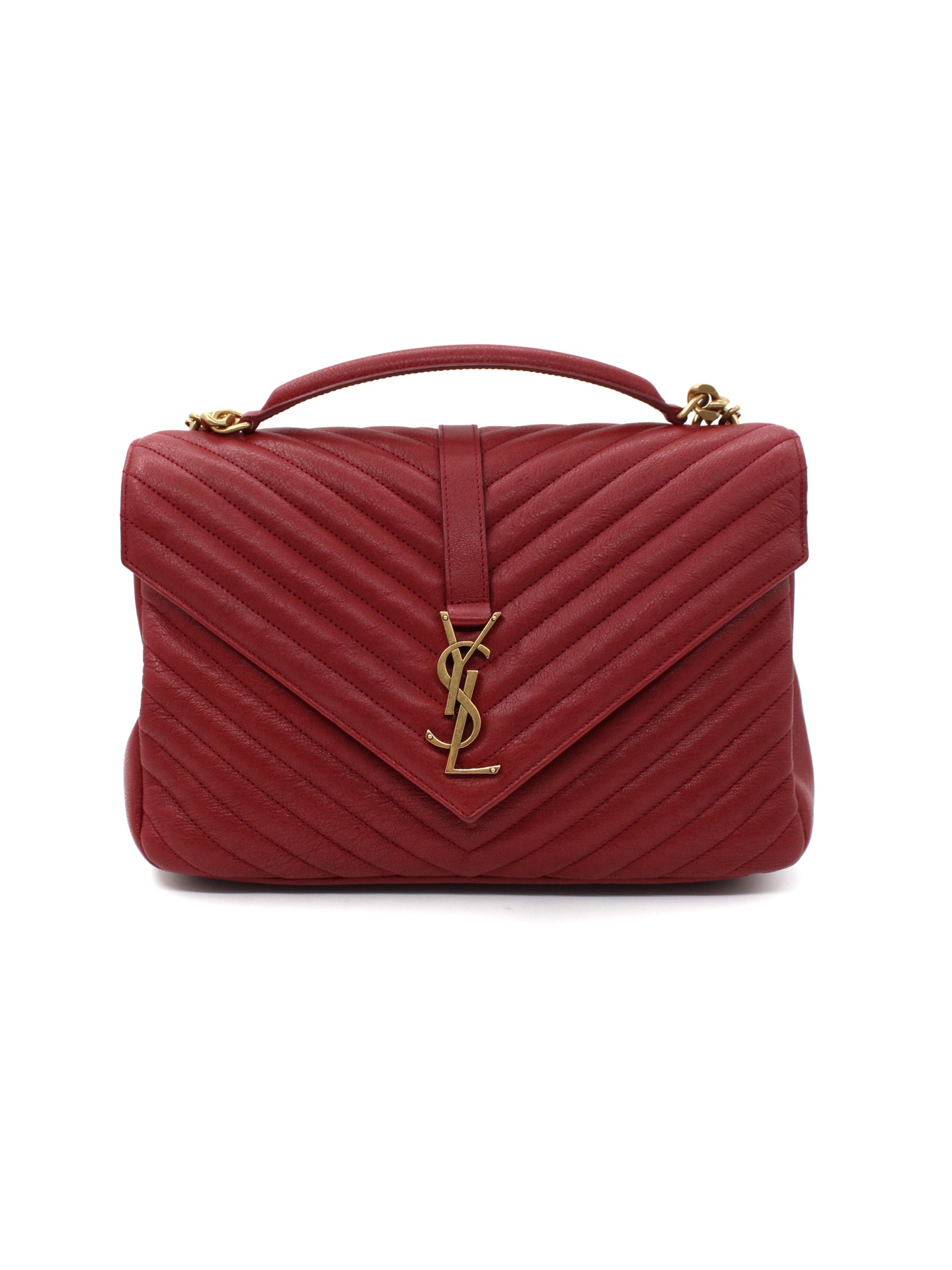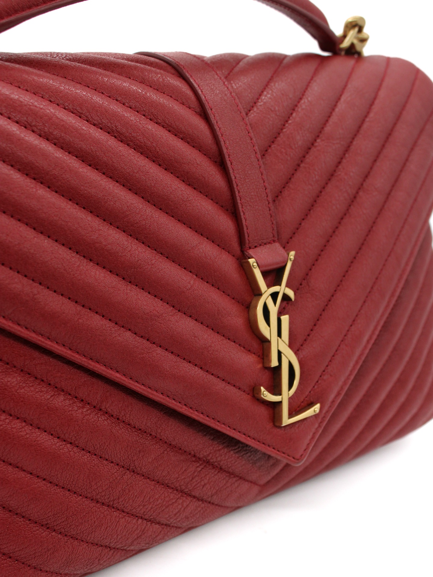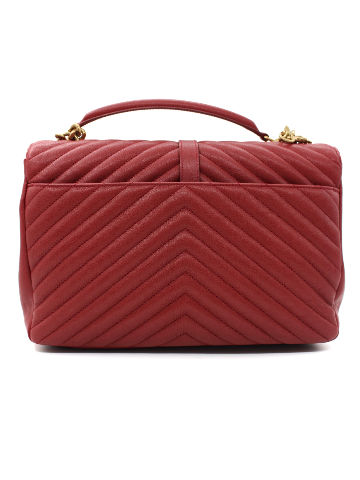 Borsa Saint Laurent College Large in Pelle Matelassé bordeaux con parti metalliche dorate. Da portare a mano o a spalla questa borsa è perfetta abbinata ad outfit grintosi. Articolo in eccellenti condizioni corredato di dust bag.