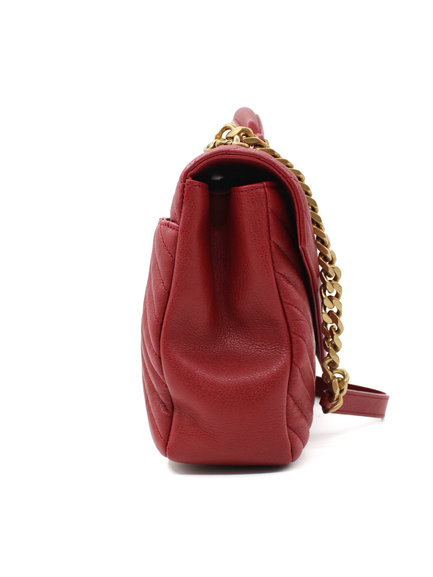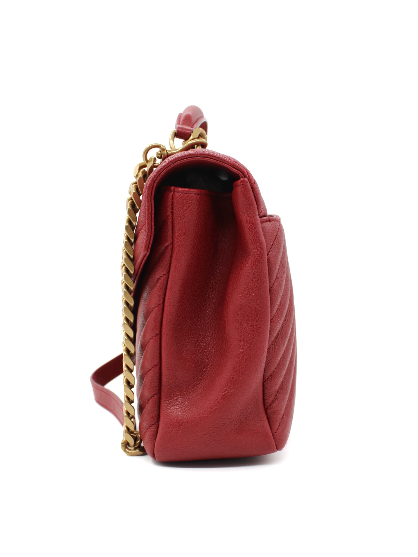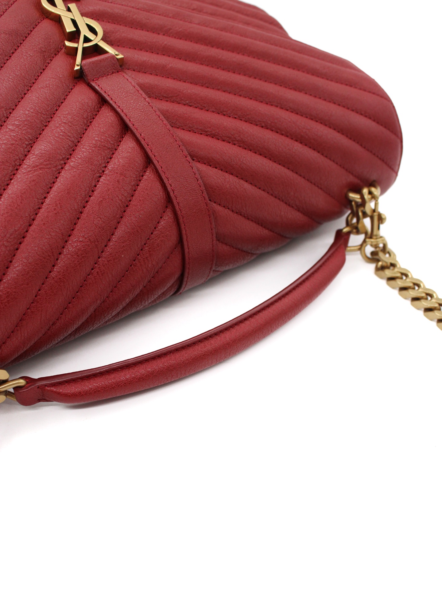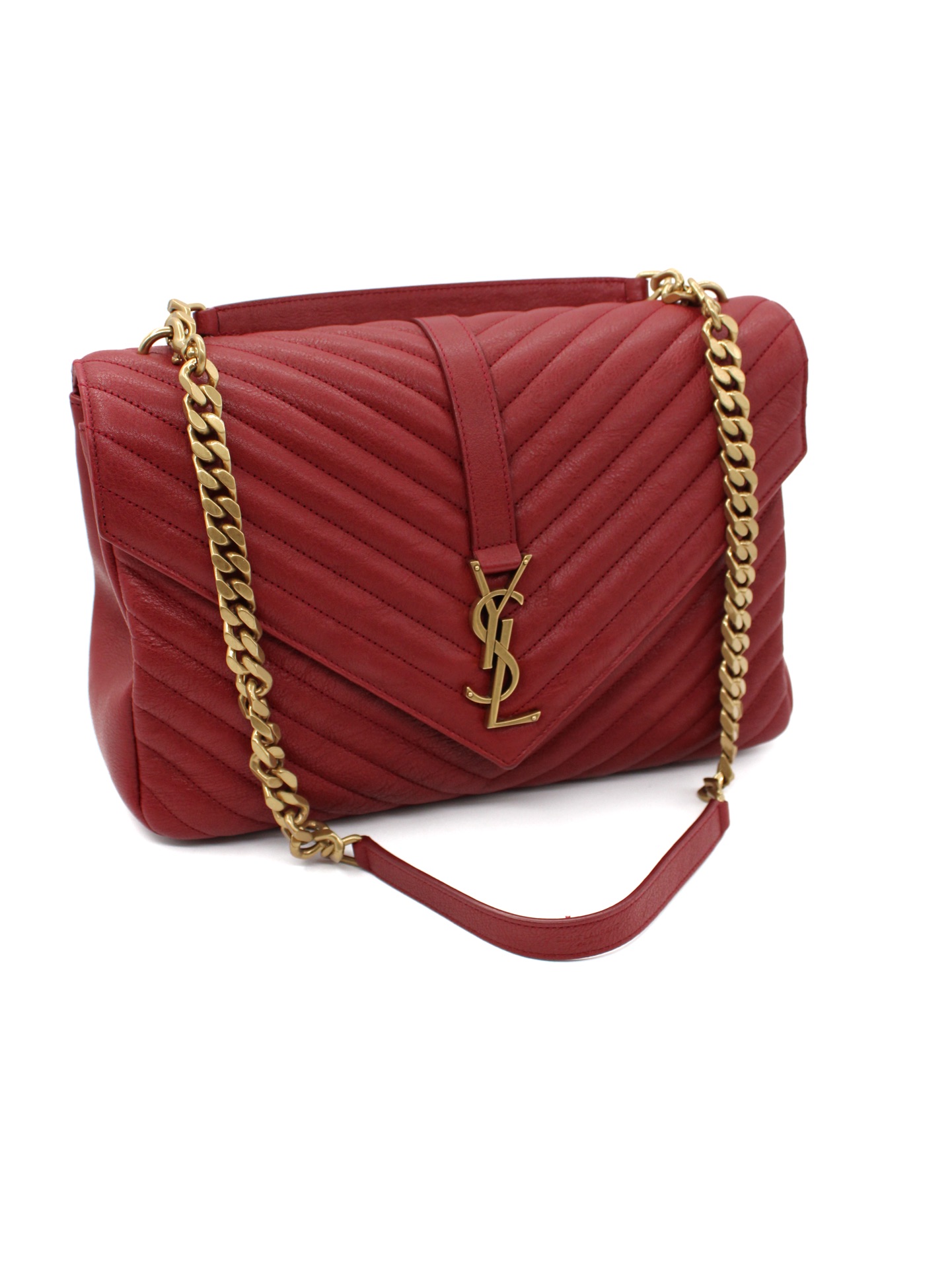 Borsa Saint Laurent College Large in Pelle Matelassé bordeaux con parti metalliche dorate. Da portare a mano o a spalla questa borsa è perfetta abbinata ad outfit grintosi. Articolo in eccellenti condizioni corredato di dust bag.