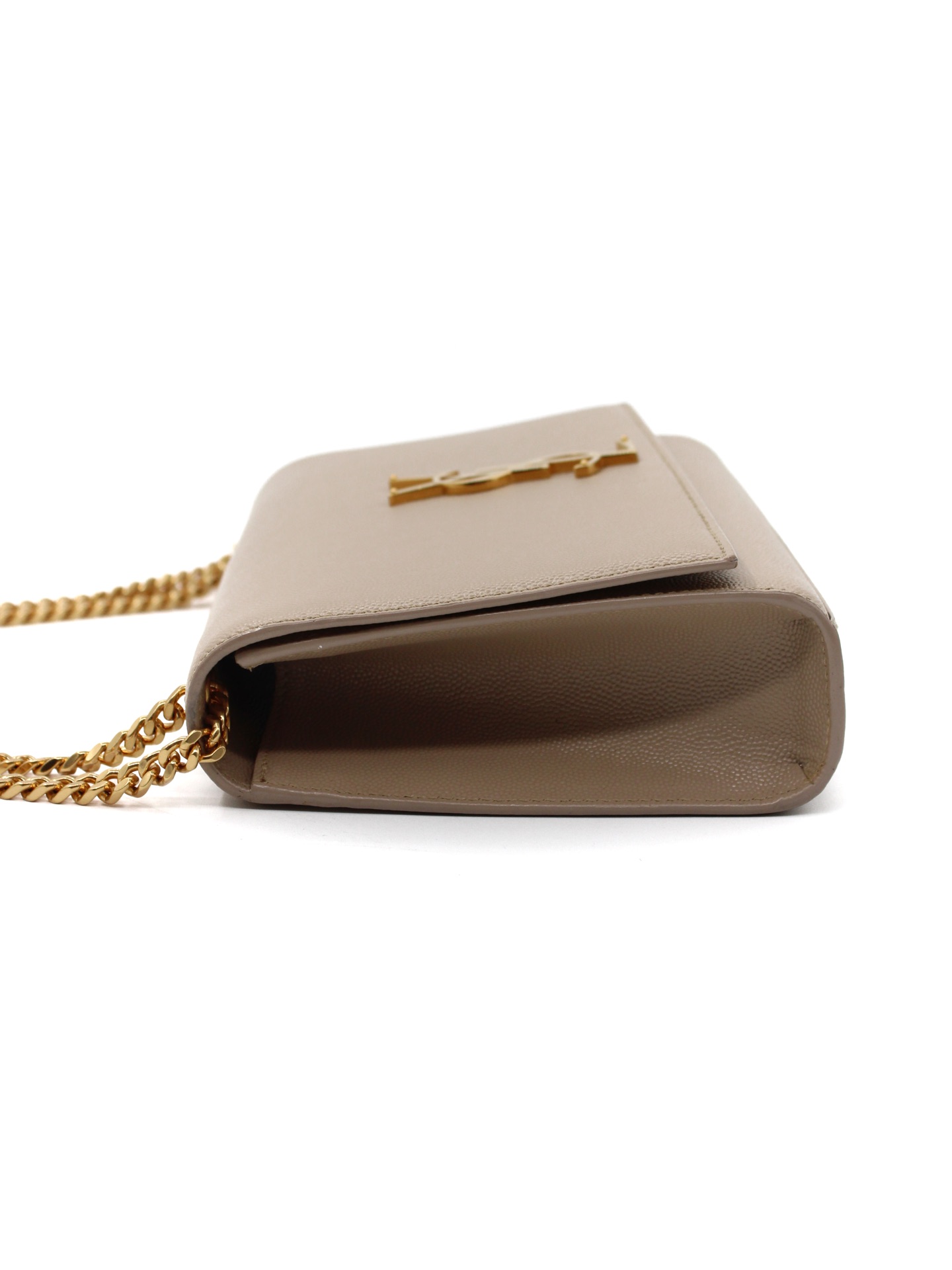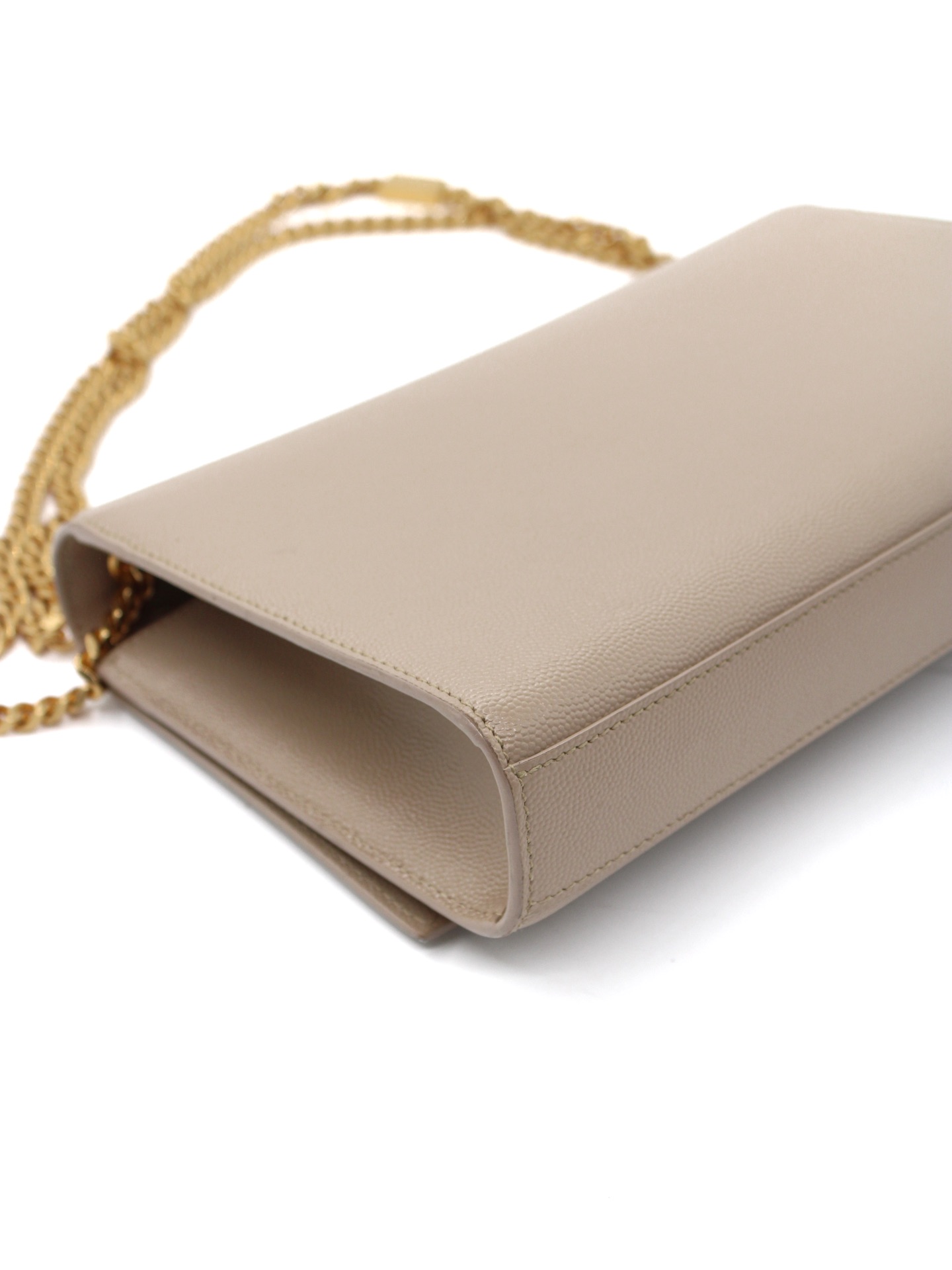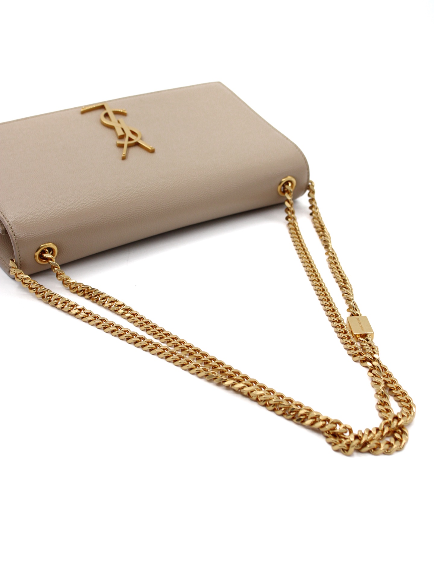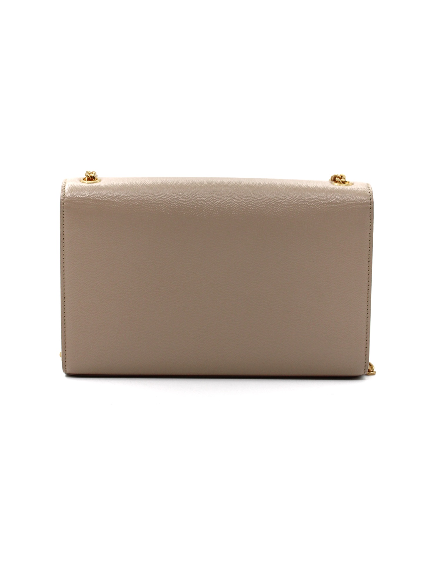 Borsa Saint Laurent Kate medium  in pelle beige con parti metalliche dorate. Da portare a spalla o a tracolla grazie alla sua comoda catena scorrevole, questa borsa è perfetta abbinata ad outfit serali. Articolo in condizioni eccellenti corredato di dust bag e cartellini.