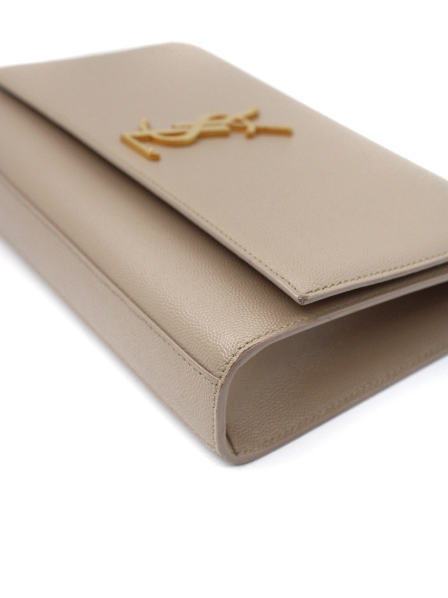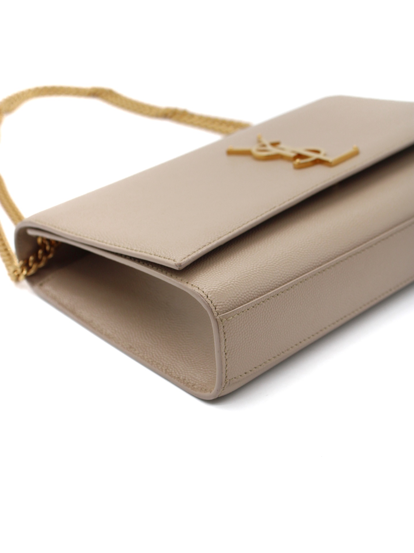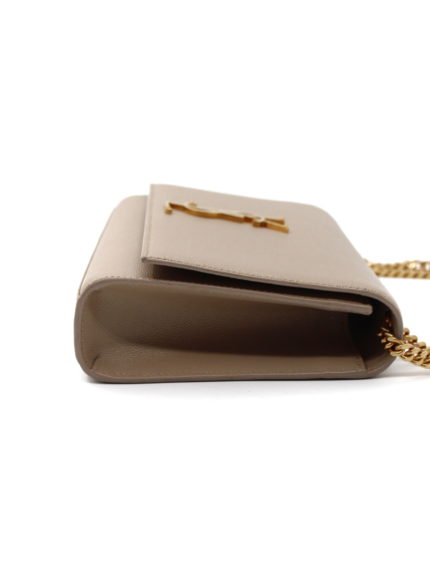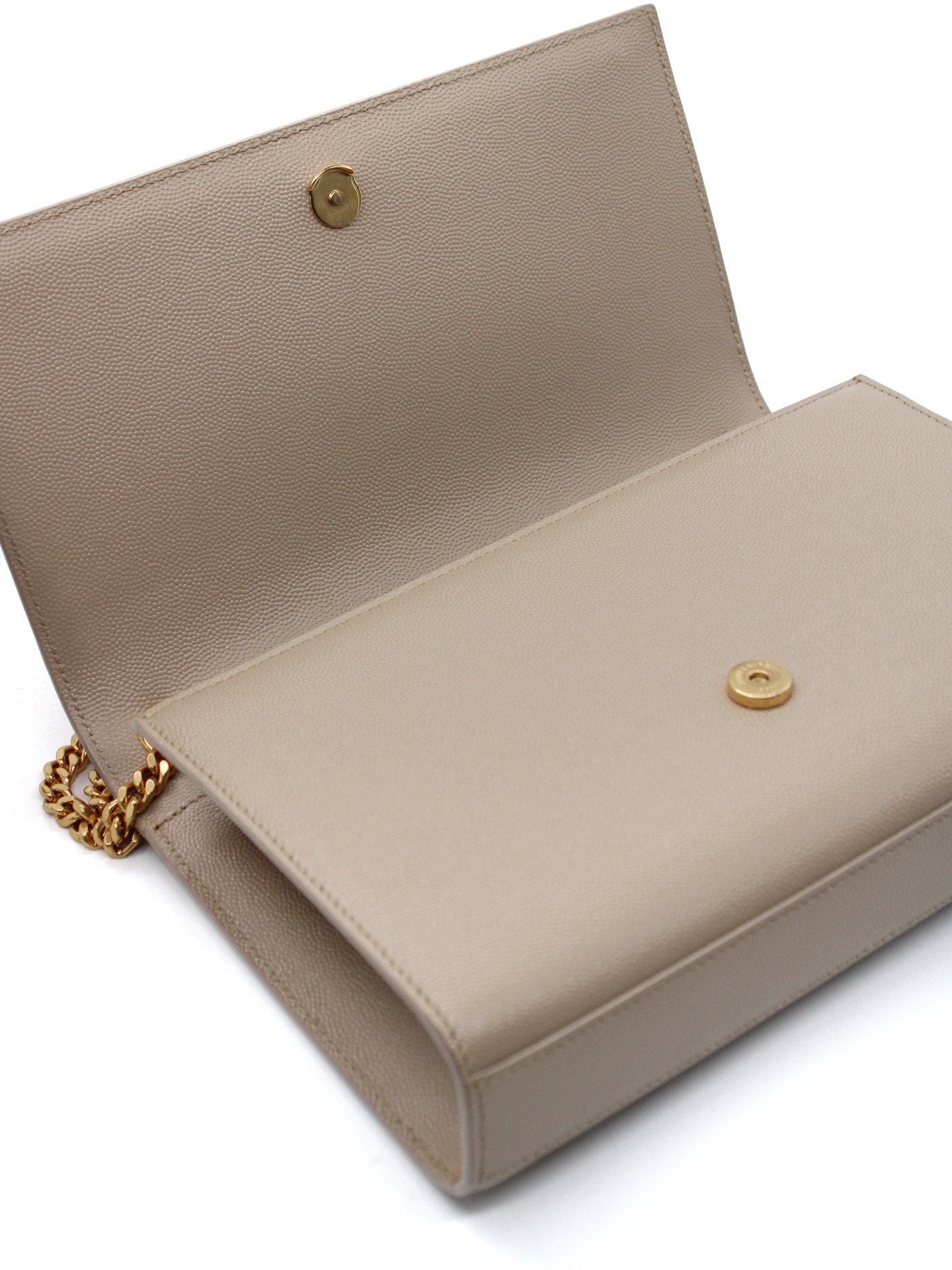 Borsa Saint Laurent Kate medium  in pelle beige con parti metalliche dorate. Da portare a spalla o a tracolla grazie alla sua comoda catena scorrevole, questa borsa è perfetta abbinata ad outfit serali. Articolo in condizioni eccellenti corredato di dust bag e cartellini.
