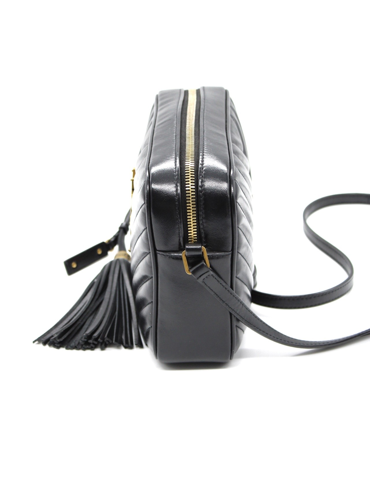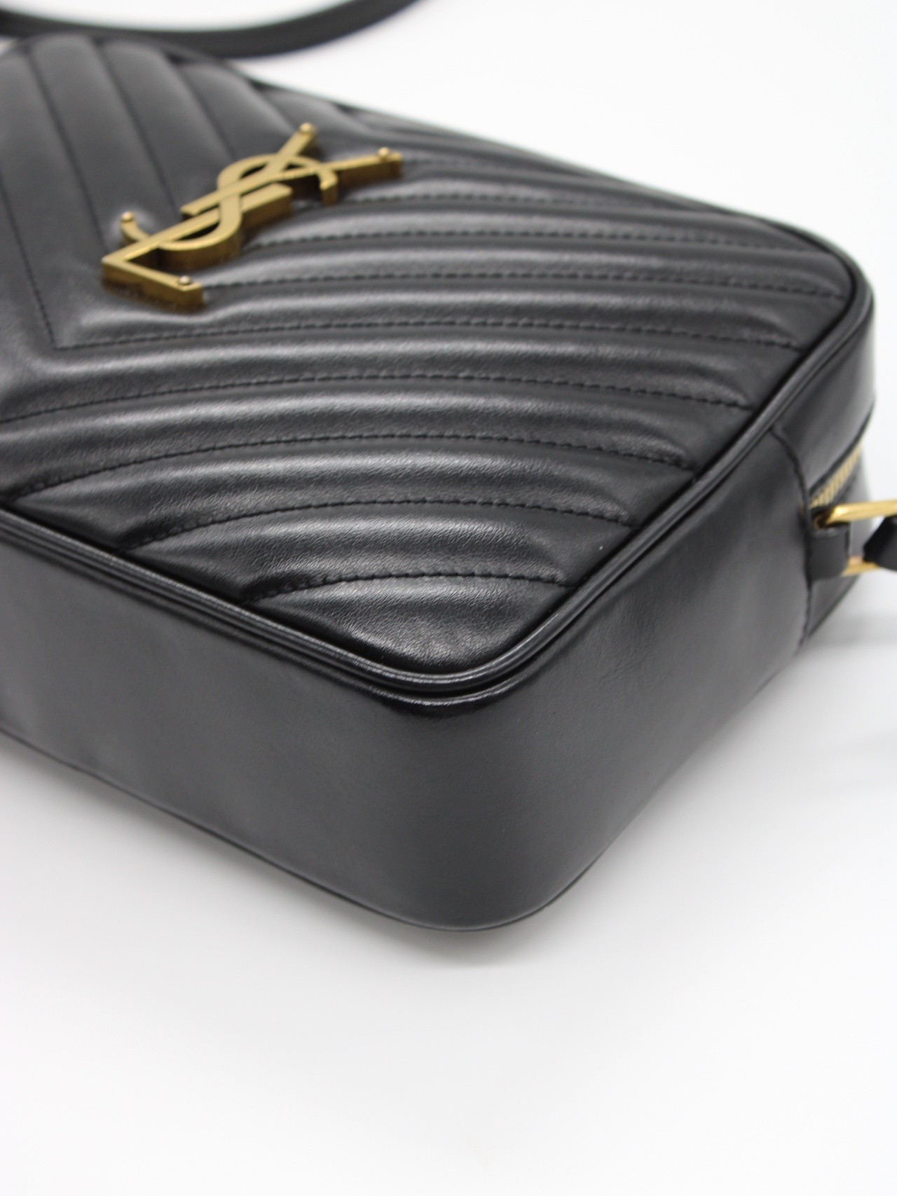 Borsa Saint Laurent Lou Camera bag in pelle nera e parti metalliche dorate. Da portare a spalla oppure ad incrocio grazie alla sua tracolla regolabile. Questa borsa dona eleganza anche al più semplice degli outfit. Articolo in condizioni eccellenti corredato di dust bag e certificato di autenticità