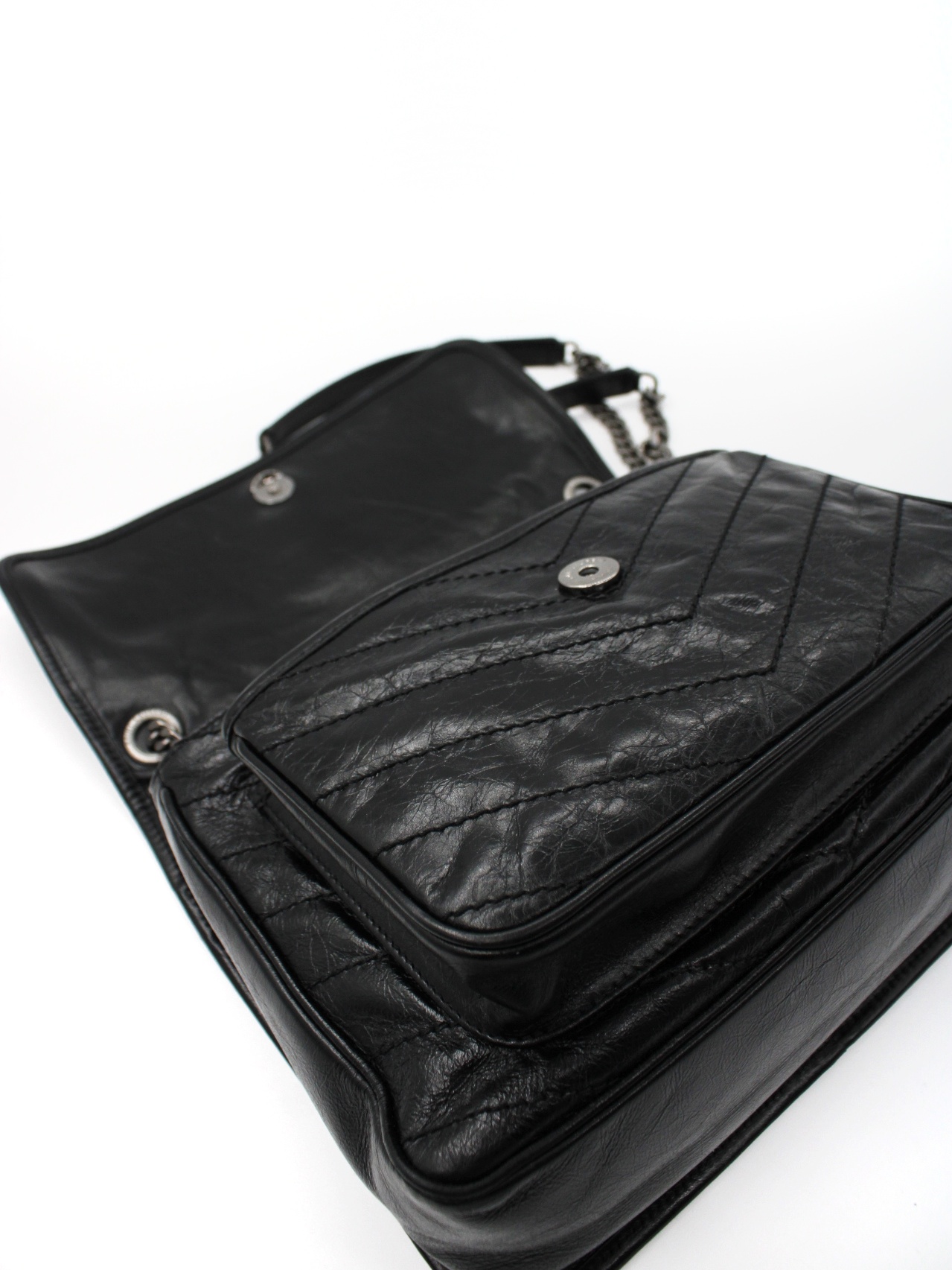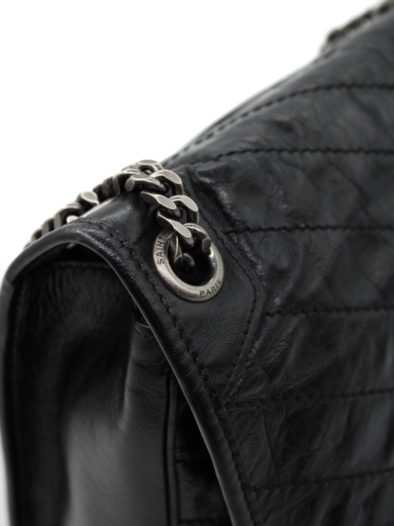 Borsa Saint Laurent Niki con parti metalliche argentate. Da portare a spalla questa borsa è perfetta per svariate occasioni con outfit ricercati. Articolo in ottime condizioni completo di dust bag e cartellino.