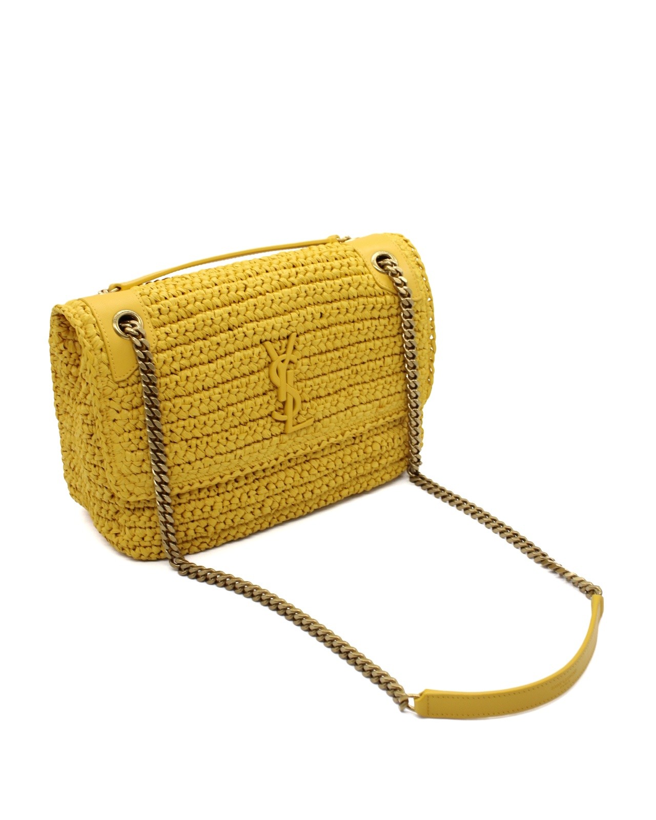 Borsa Saint Laurent Niki media in rafia e pelle e parti metalliche dorate. Da portare a spalla oppure ad incrocio grazie alla sua tracolla a catena scorrevole. Borsa capace di rendere speciale anche semplici look. Articolo pari al nuovo corredato di dust bag e cartellini