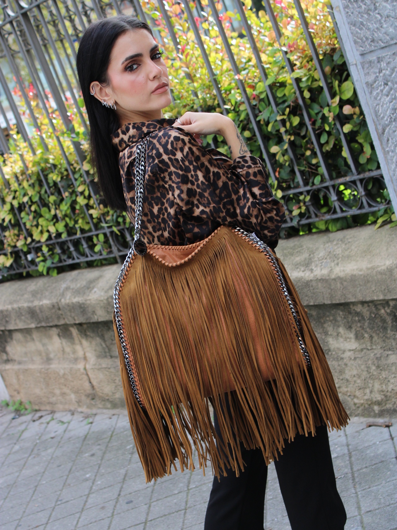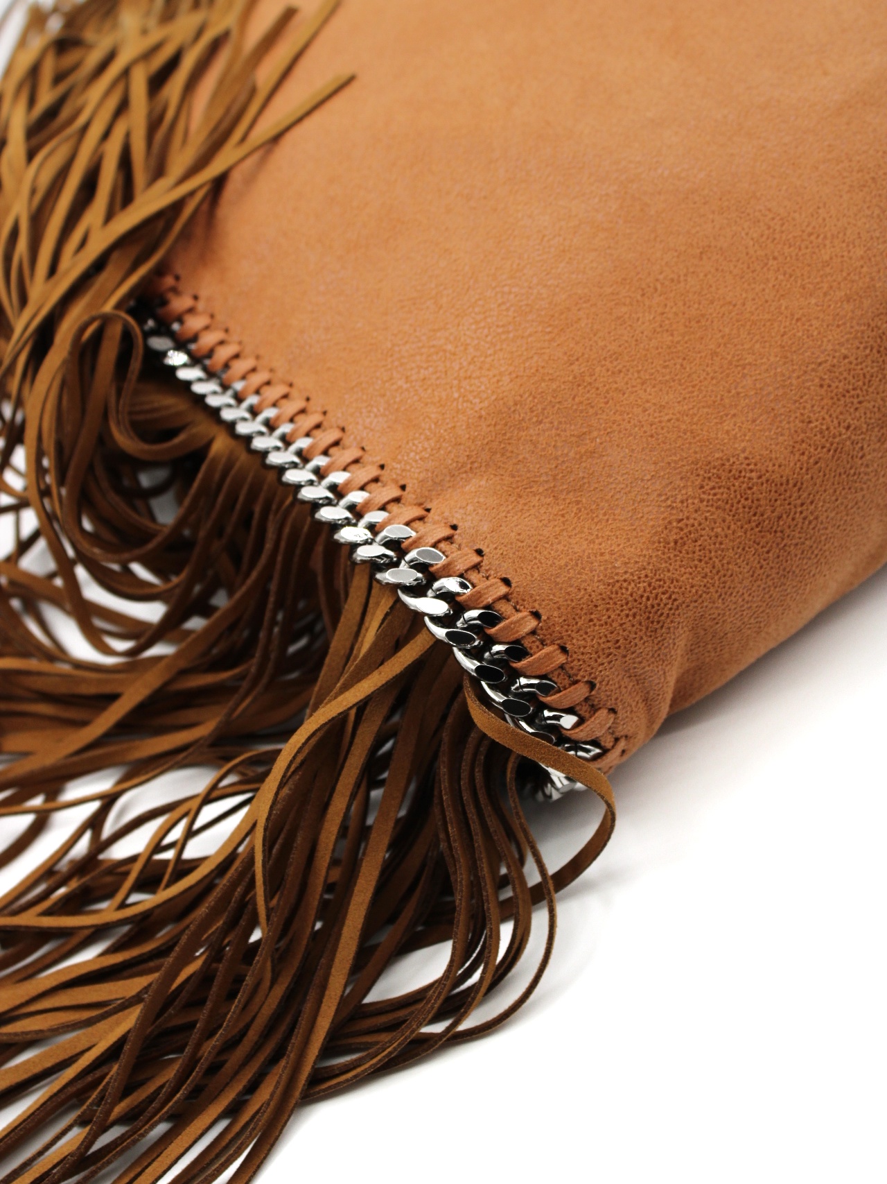 Borsa Stella McCartney con frange e parti metalliche argentate. Da portare a spalla questa borsa è perfetta per tutti i giorni con outfit giornalieri. Articolo in ottime condizioni corredata di dust très chic.