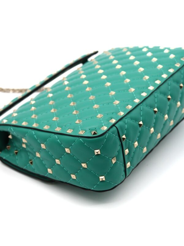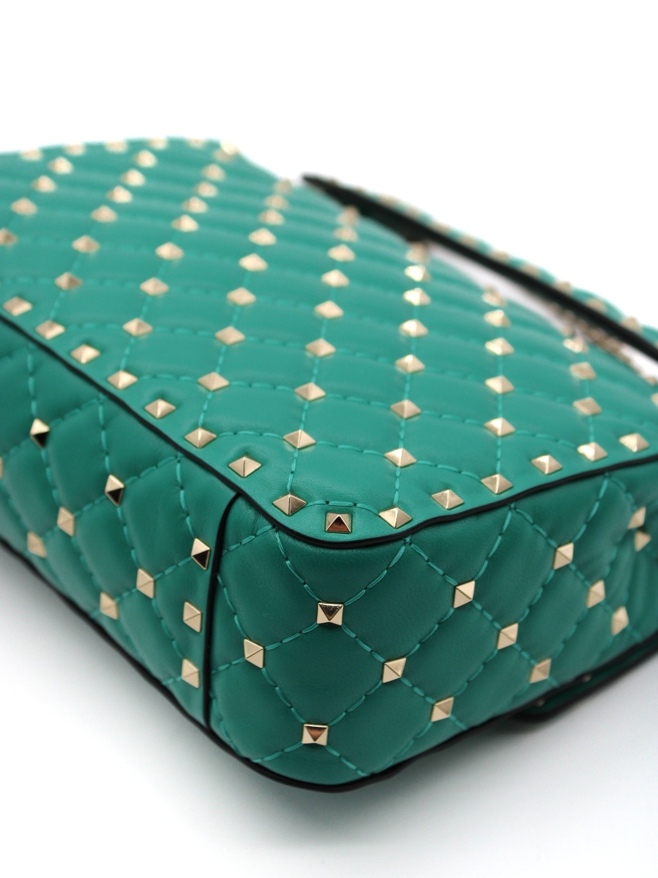 Borsa Valentino Spike Rockstud media in nappa e parti metalliche dorate. Da portare a spalla oppure ad incrocio questa borsa è capace di impreziosire anche il più semplice degli outfit. Articolo pari al nuovo con dust e cartellini.
