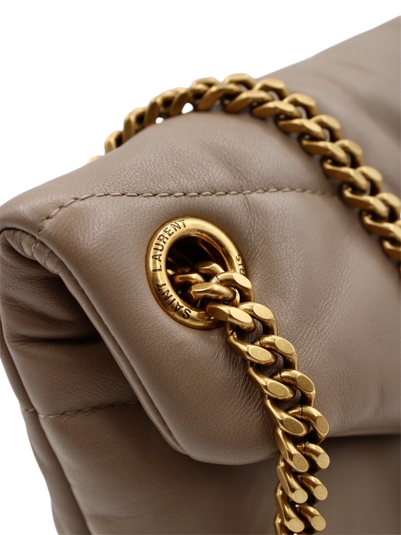 Borsa Yves Saint Laurent Puffer Small in Nappa con parti metalliche dorate. Da portare a spalla oppure ad incrocio questa borsa dona praticità ed eleganza al proprio outfit. Articolo in condizioni eccellenti corredato di dust bag e cartellini.