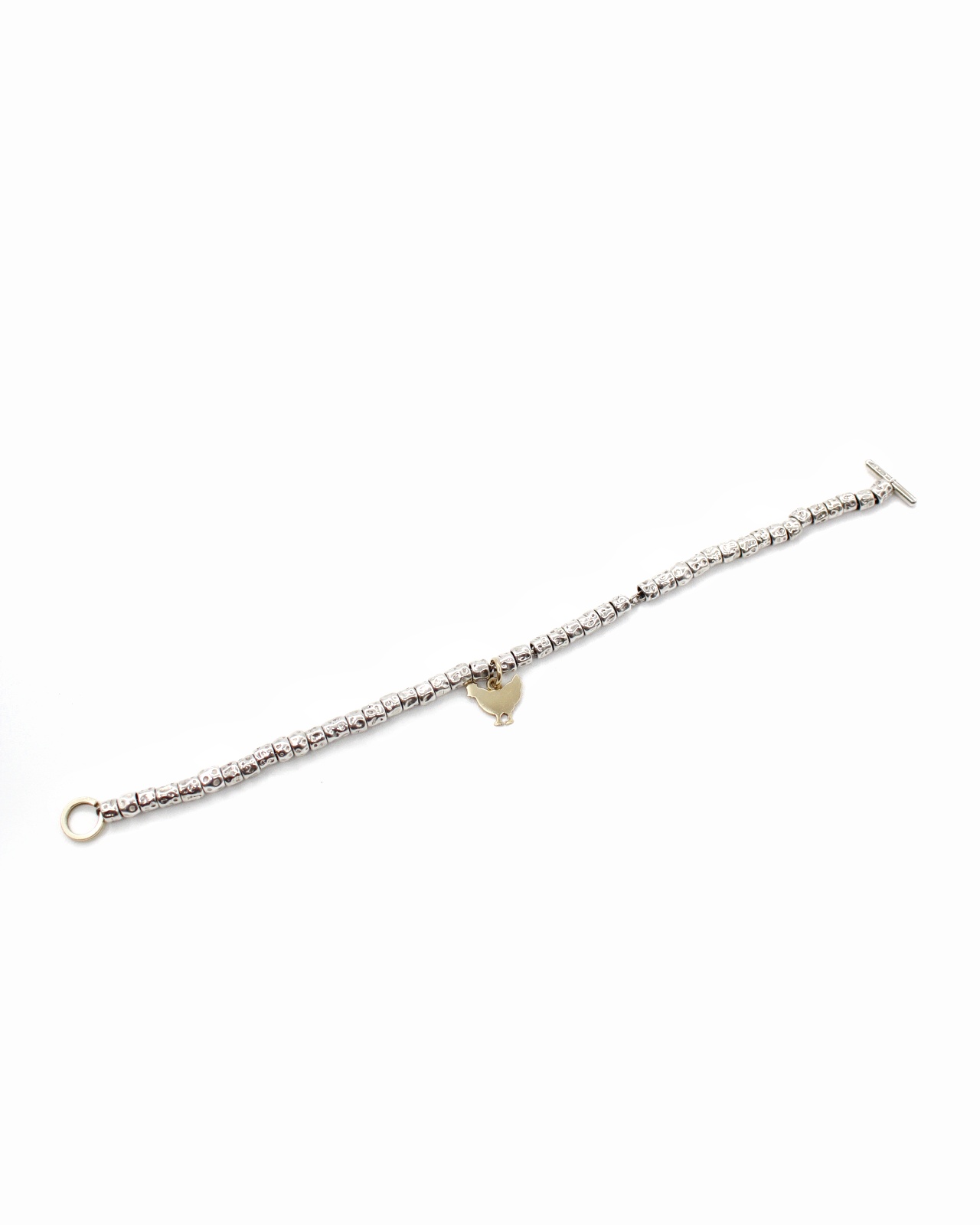 Bracciale DoDo Granelli in argento con charm gallo in oro giallo(1 gr). Lunghezza bracciale 18 cm. Articolo in ottime condizioni  completo di dust Très Chic.