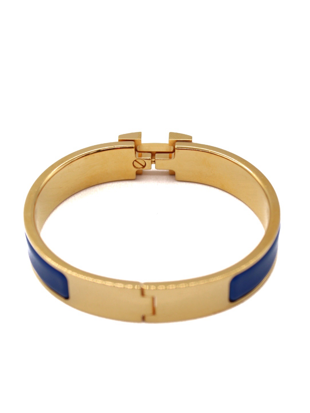 Bracciale Hermès Clic H in metallo e smalto blu. Articolo in condizioni eccellenti completo di scatola. Misura PM (circonferenza 16cm).